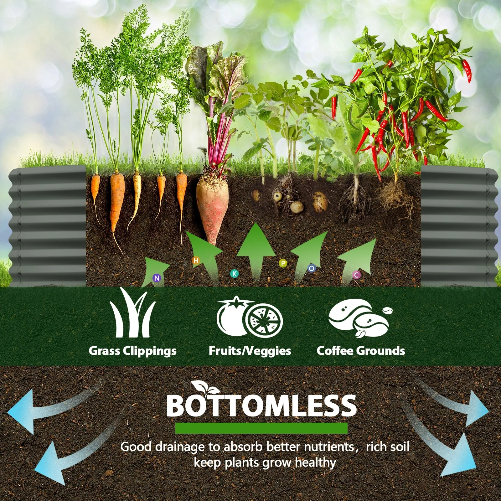 Galvanized Raised Planter Boxes Outdoor, for Vegetables, Fruits, Flower