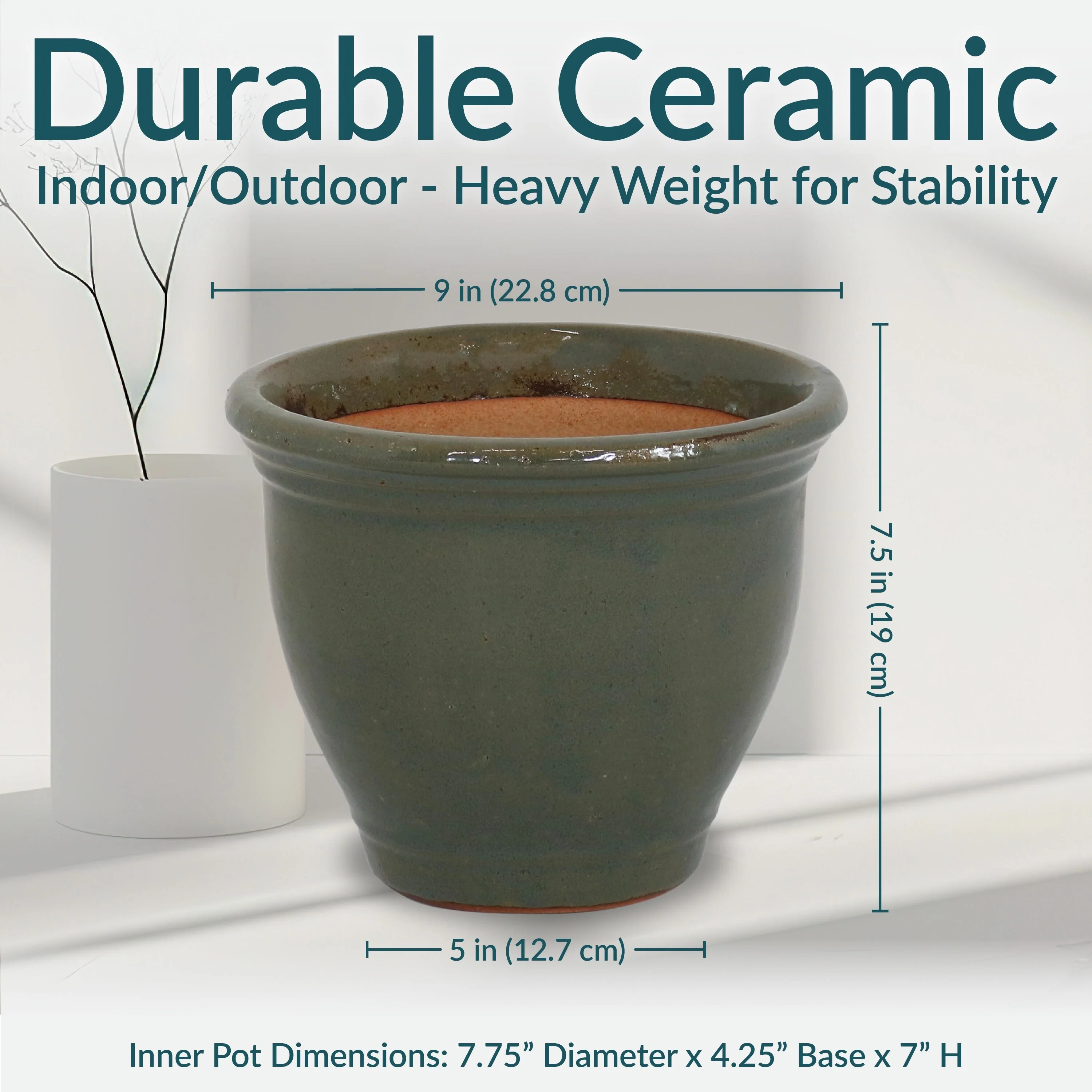 Sunnydaze Studio Glazed Ceramic Planter - Set of 2 - 9-Inch - Gray