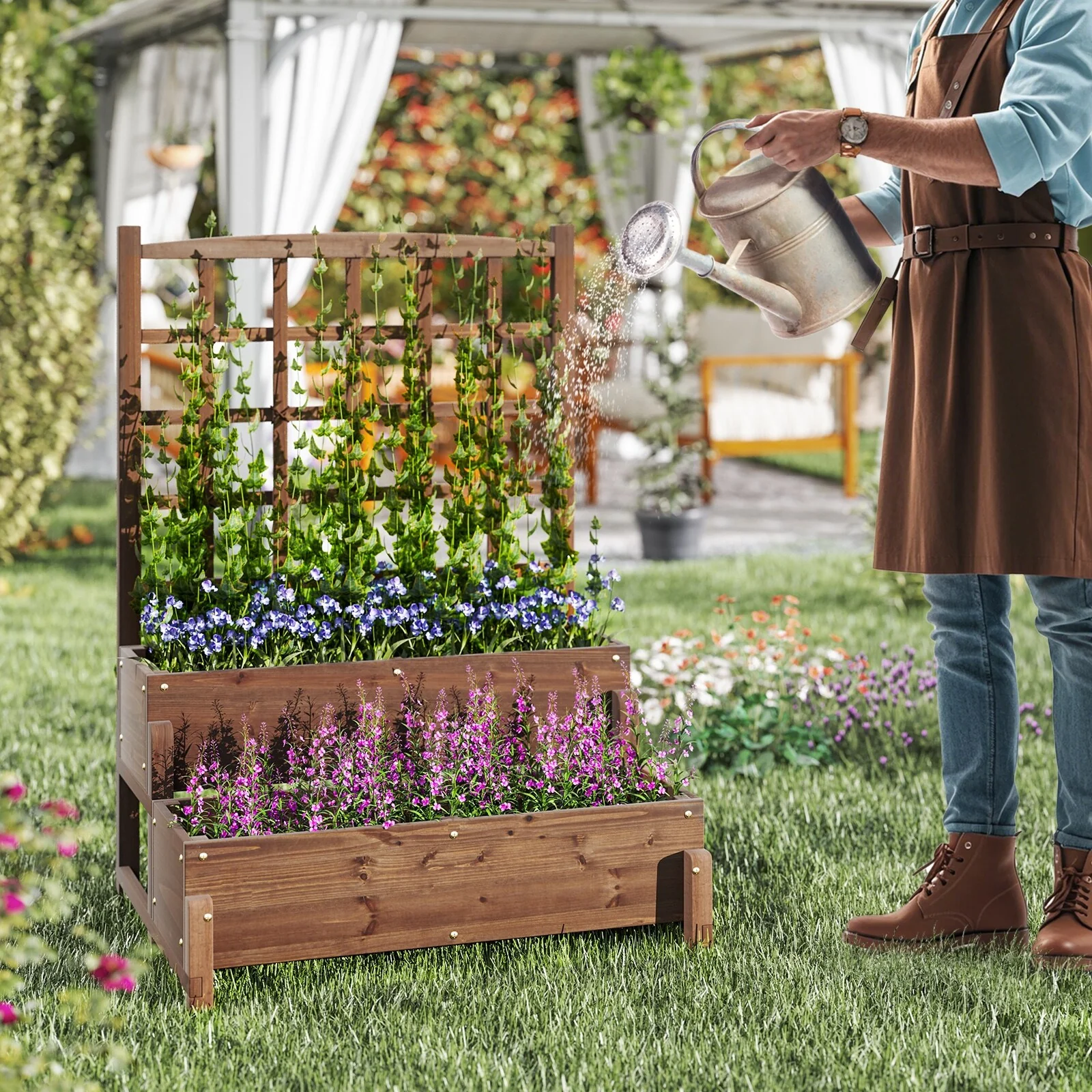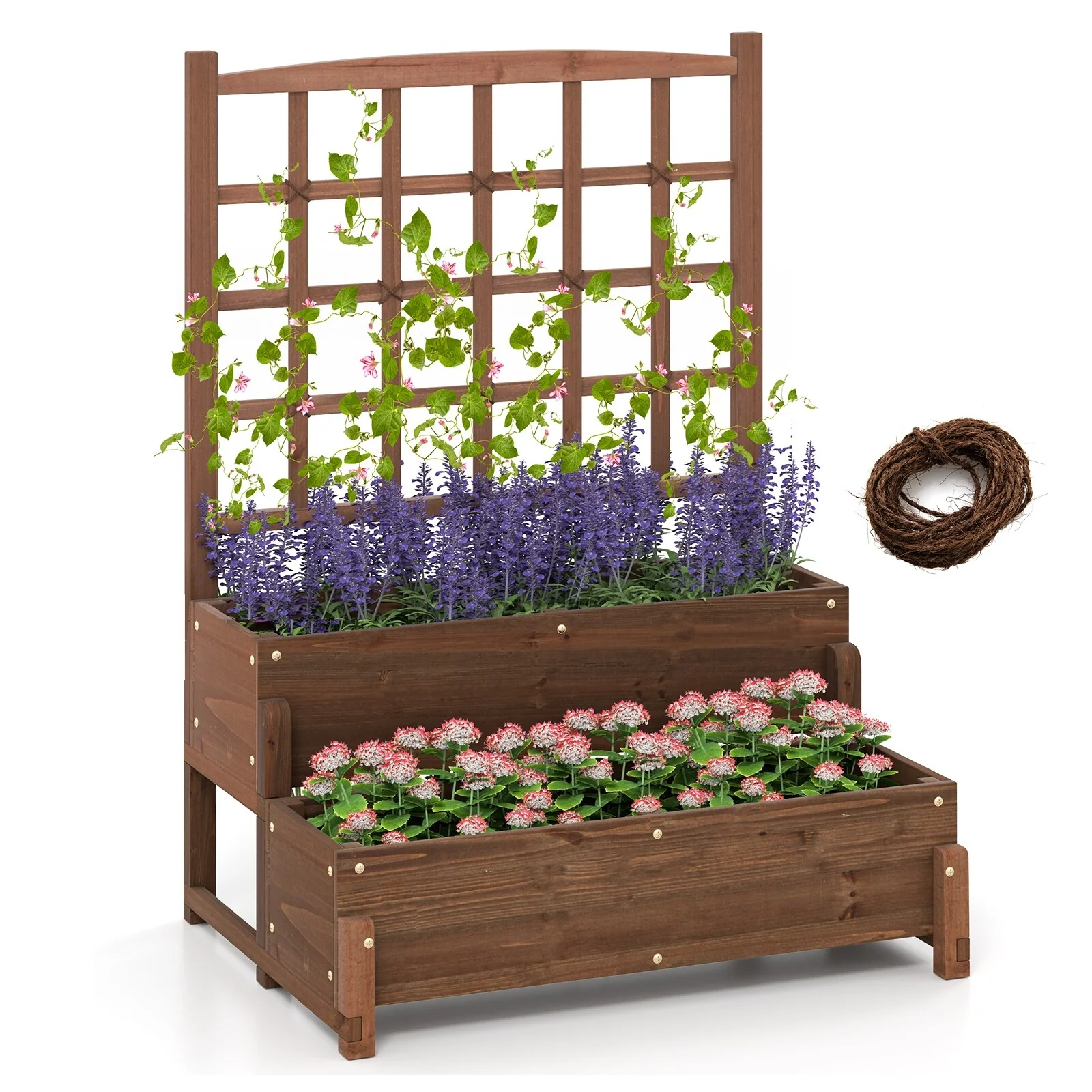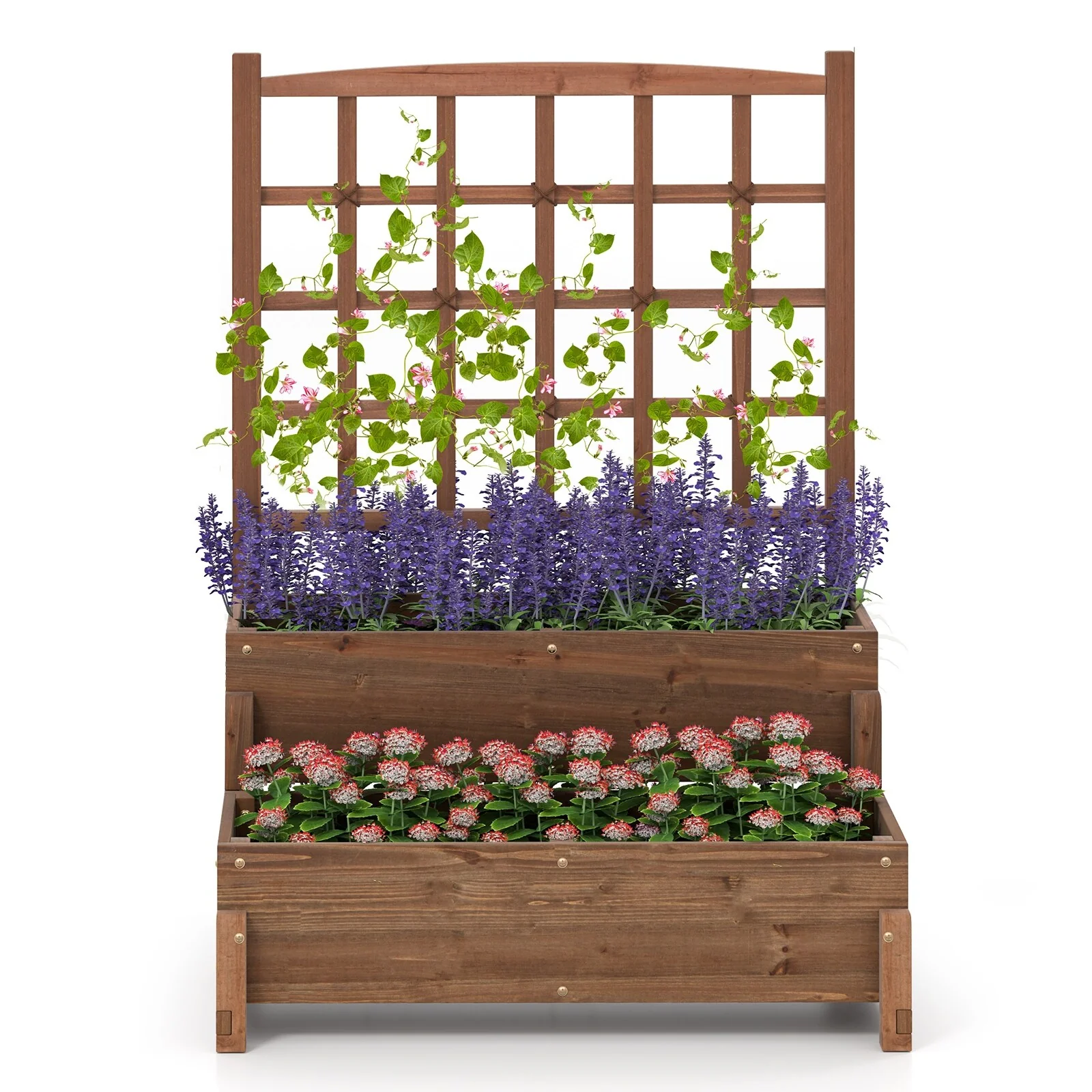 Gymax Raised Garden Bed w/ Trellis w/ Drainage Holes Legs Twisting