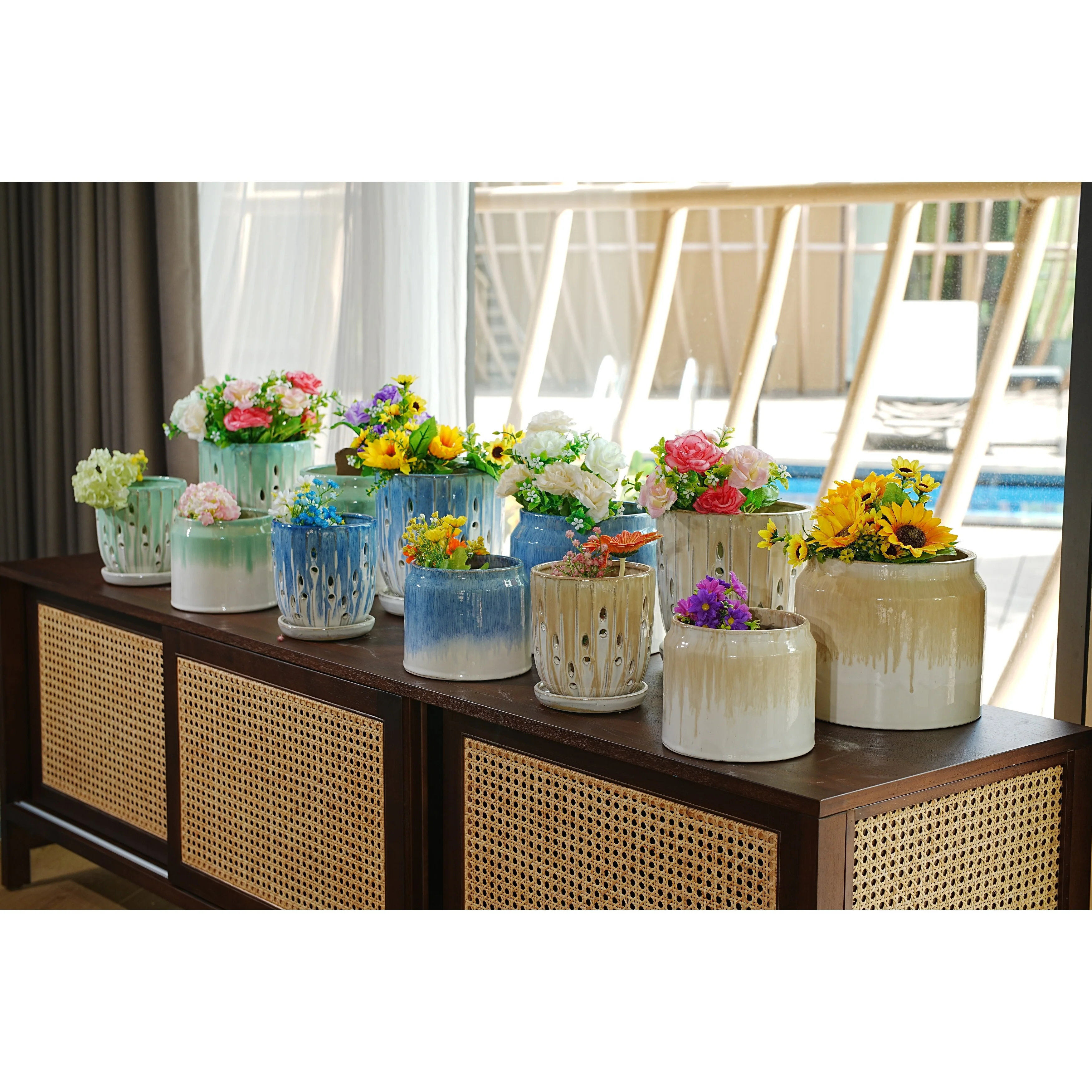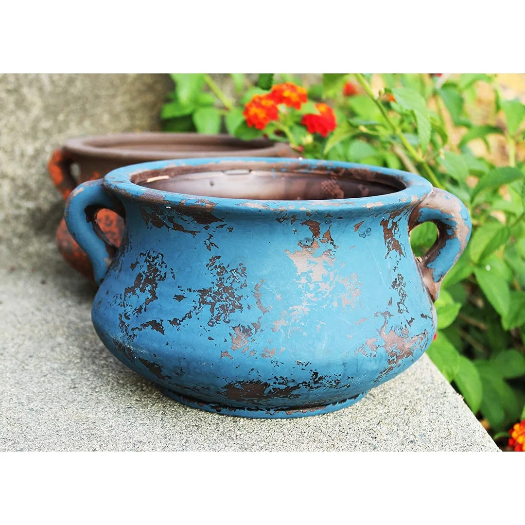 Egyptian Era Terracotta Planter in Blue,Green, Red, Purple in 2 sizes