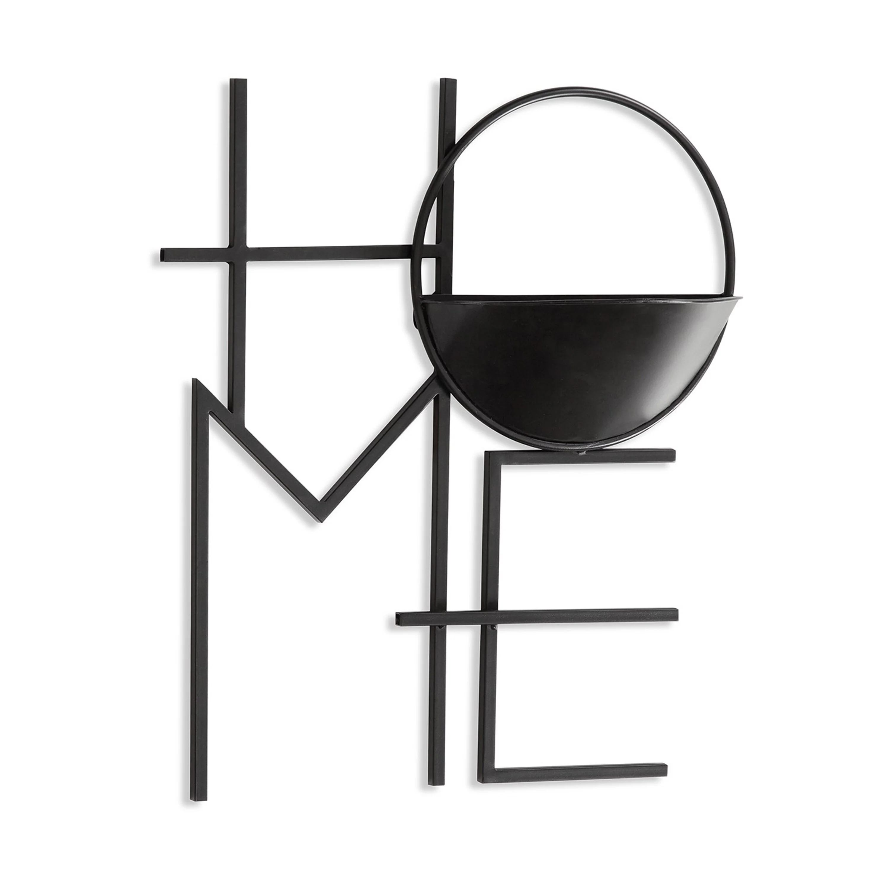 Decorative Wall Planter, Black Metal, 20 Inch, HOME Sculpted Frame