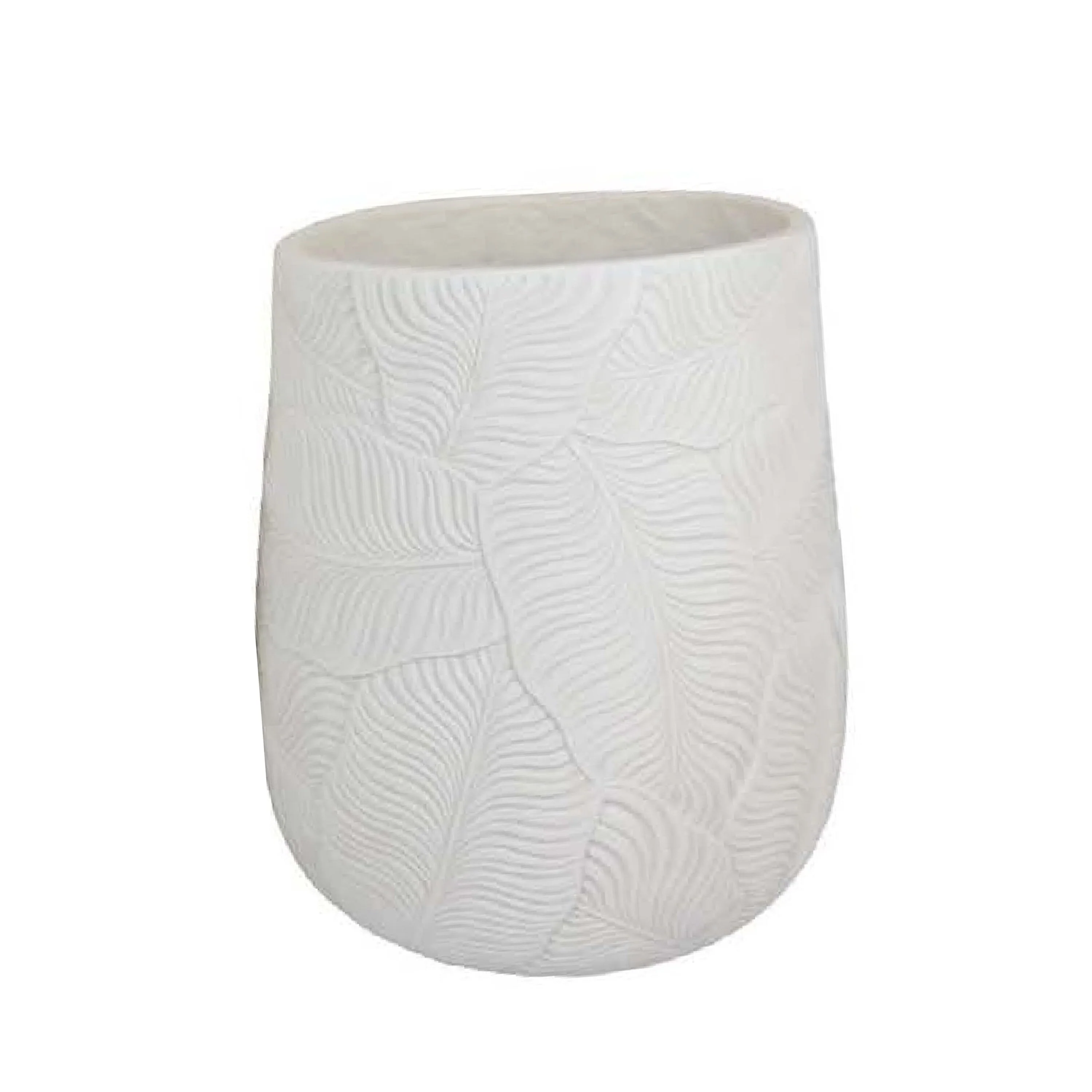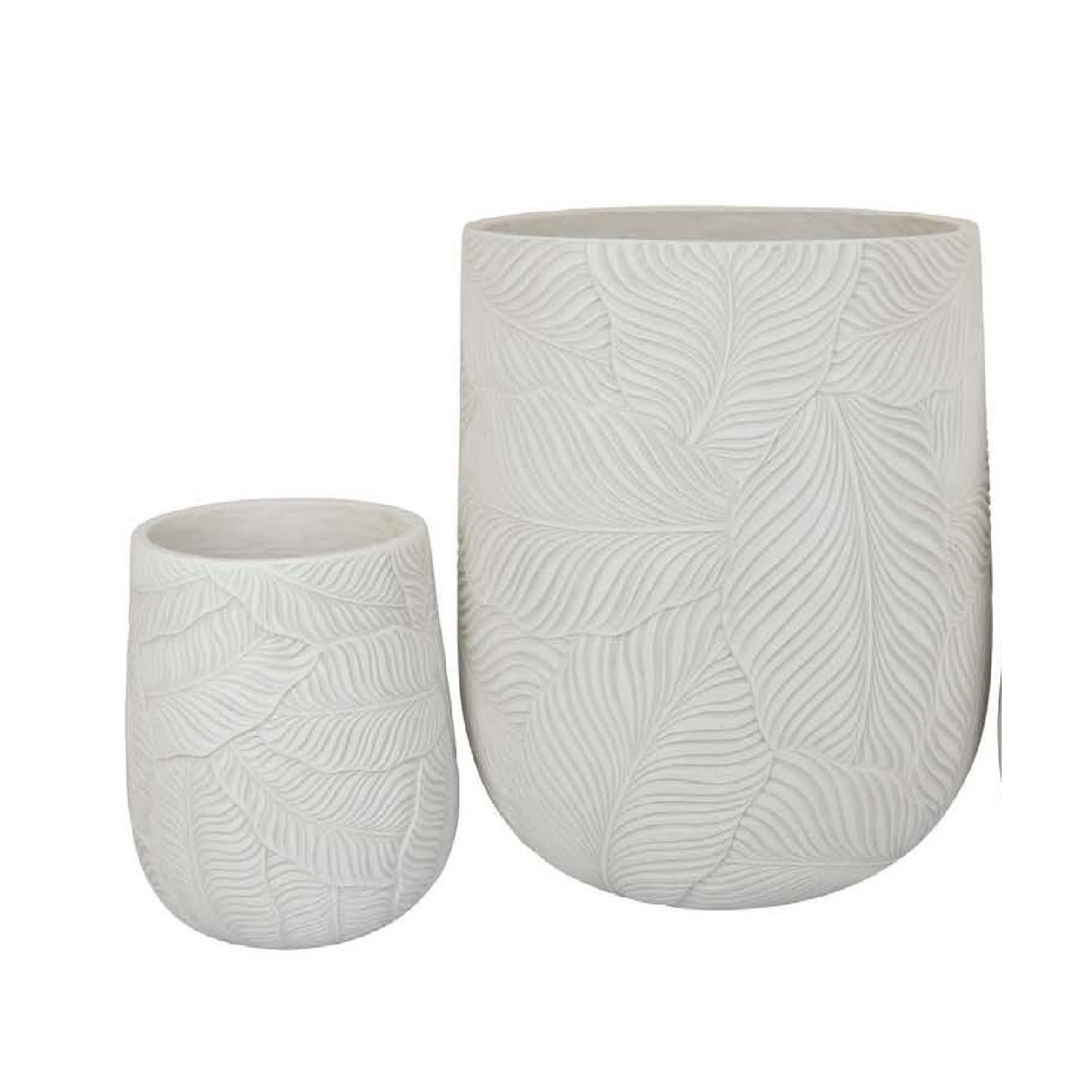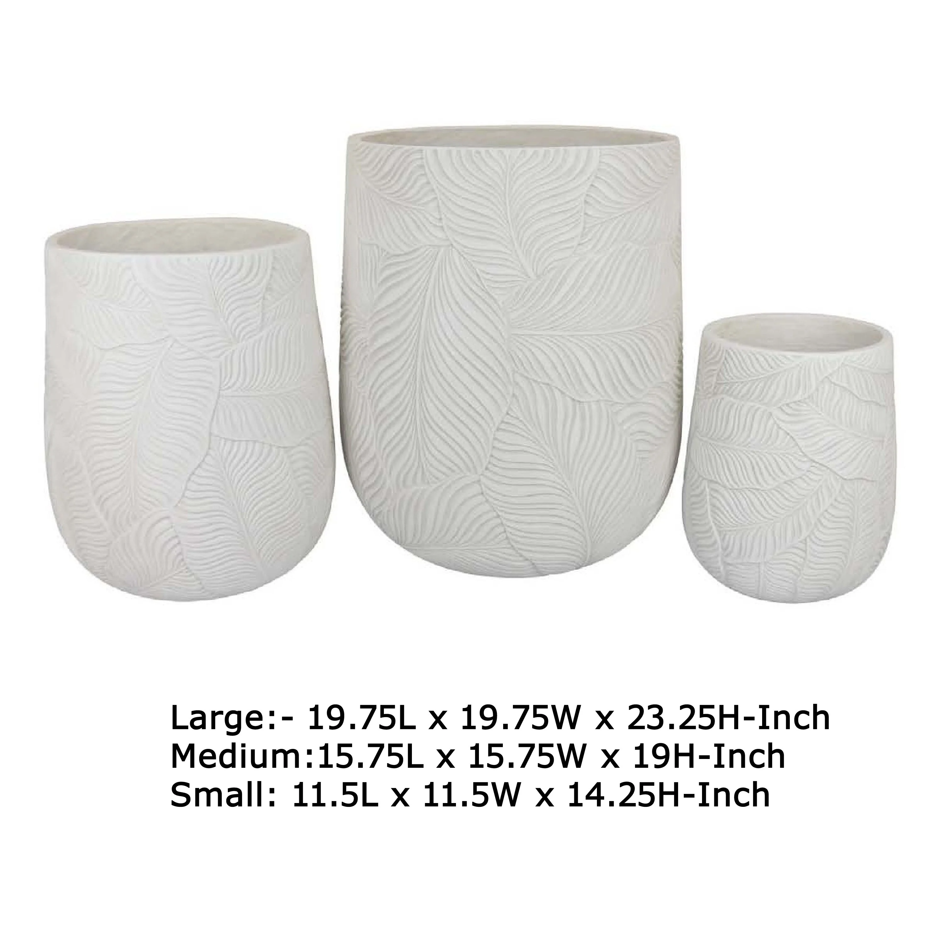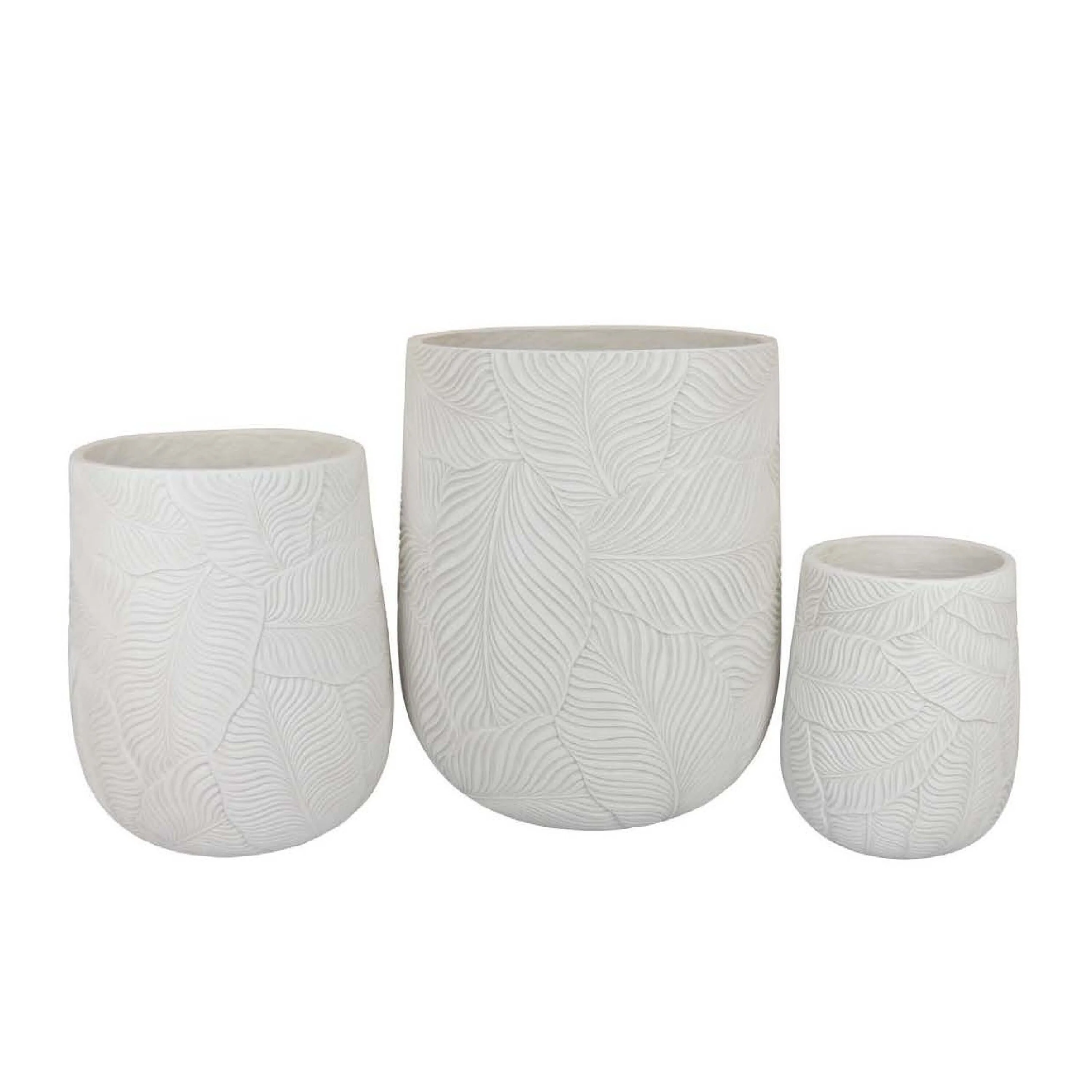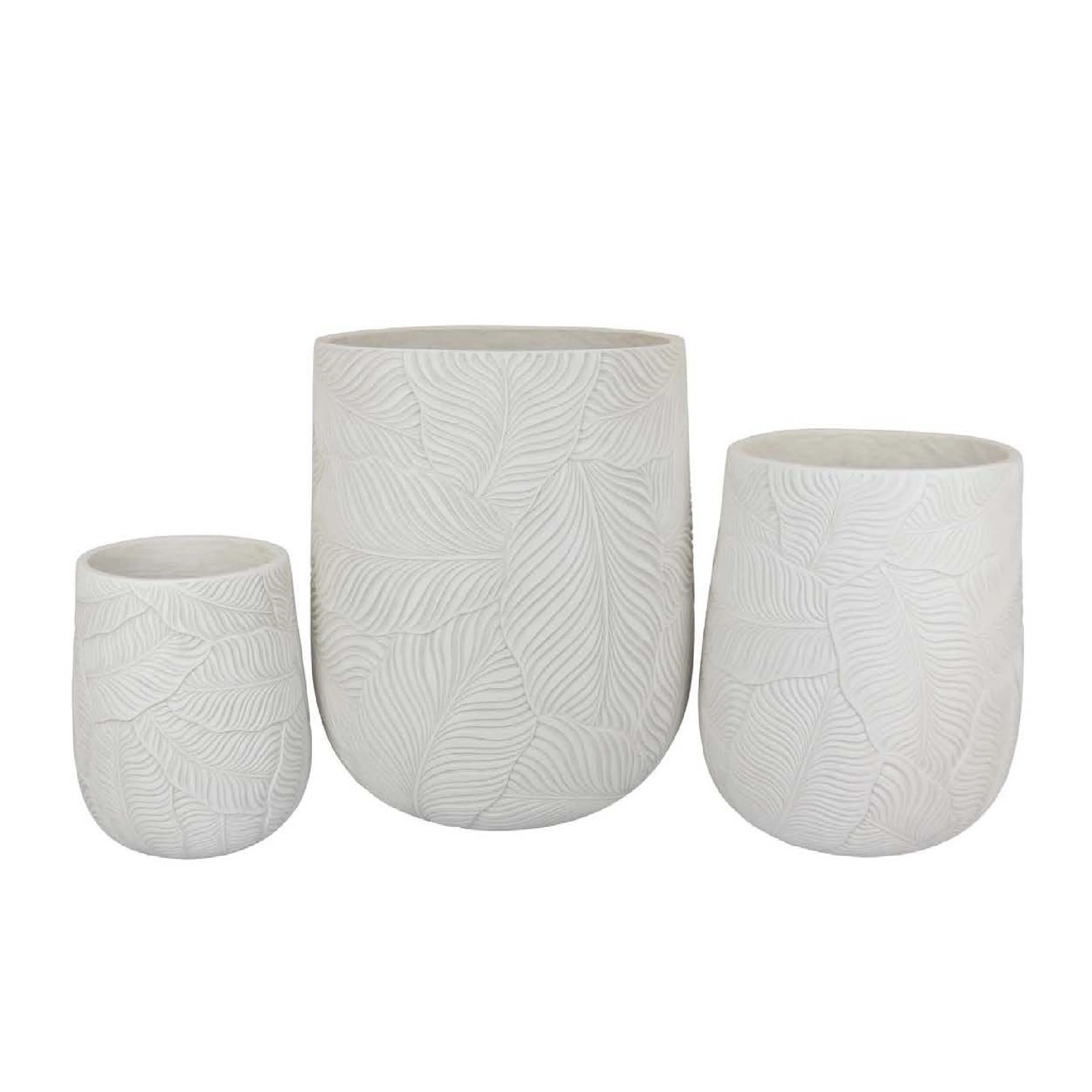 Sally Round Planter Set of 3, Intricate Leaf White Resin 23 19 14 Inch