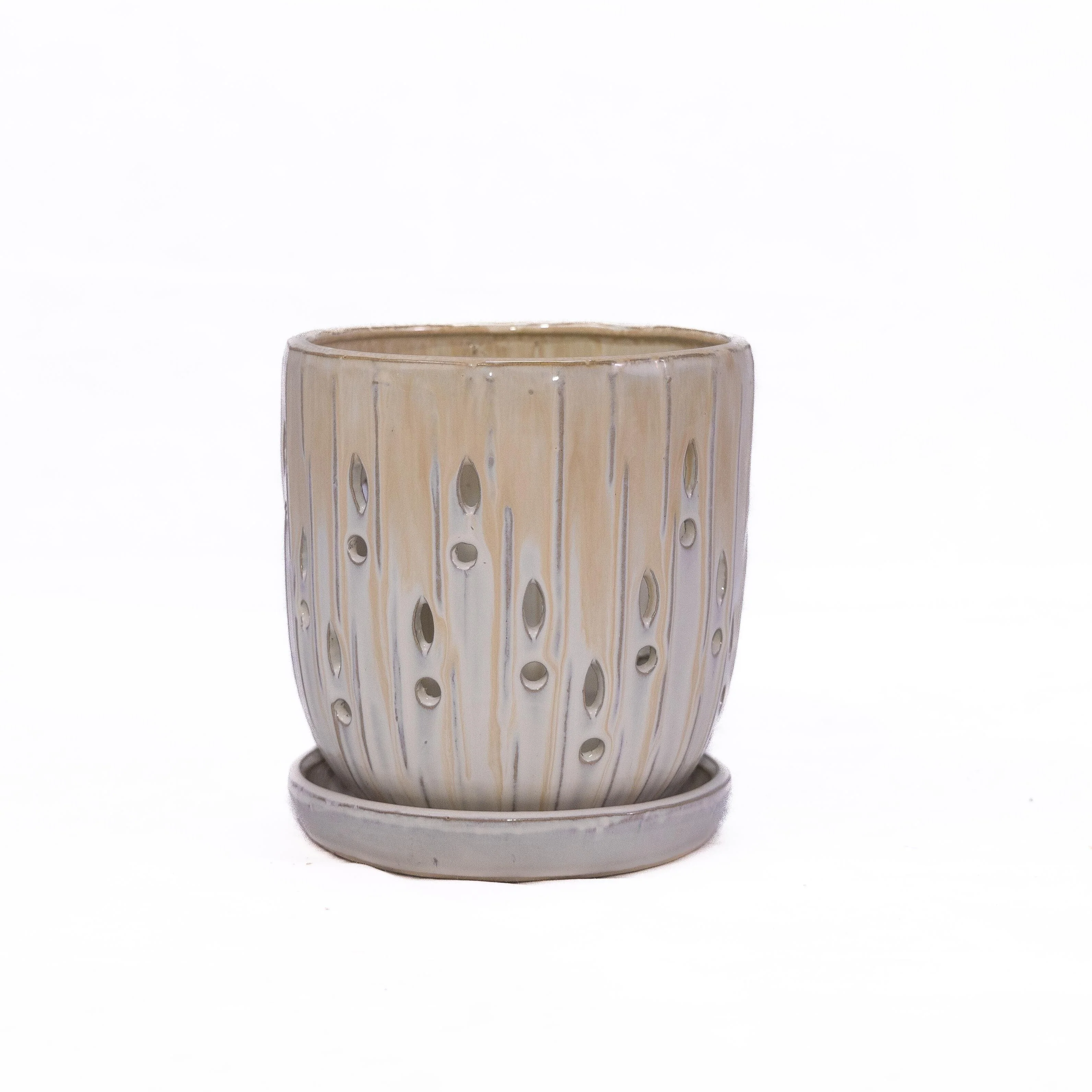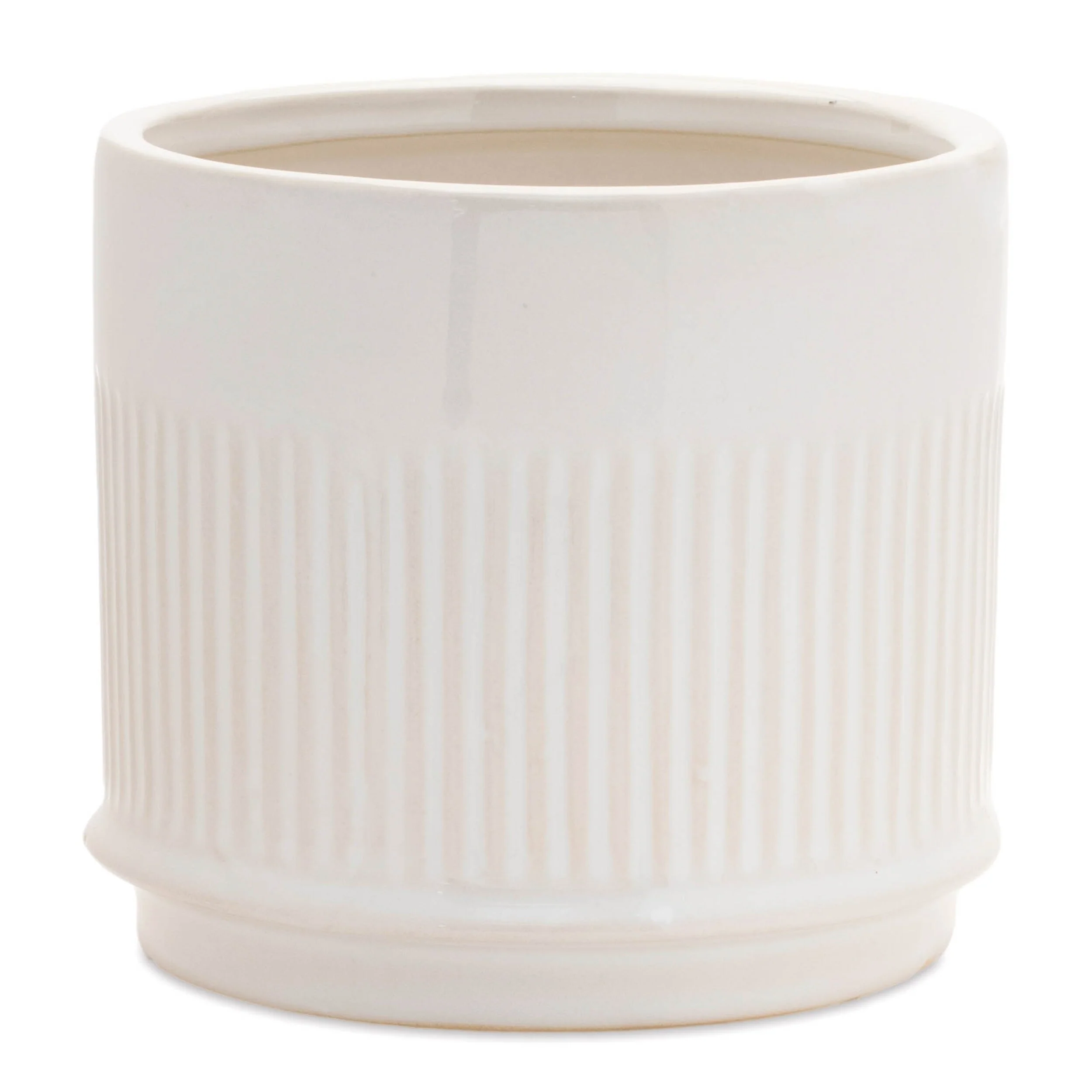 Set of 2 White Ribbed Ceramic Container Indoor Decorative Flowerpots for Shelf Tabletop or Entryway - 5.5��L x 5.5��W x 5��H