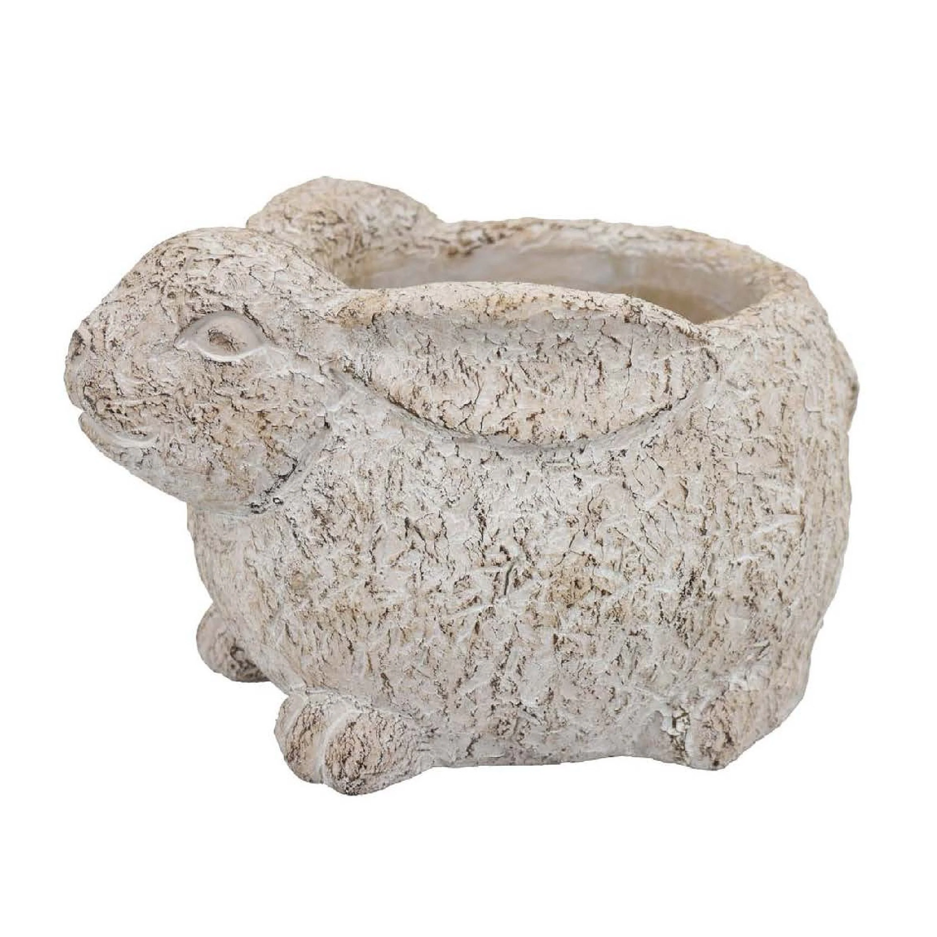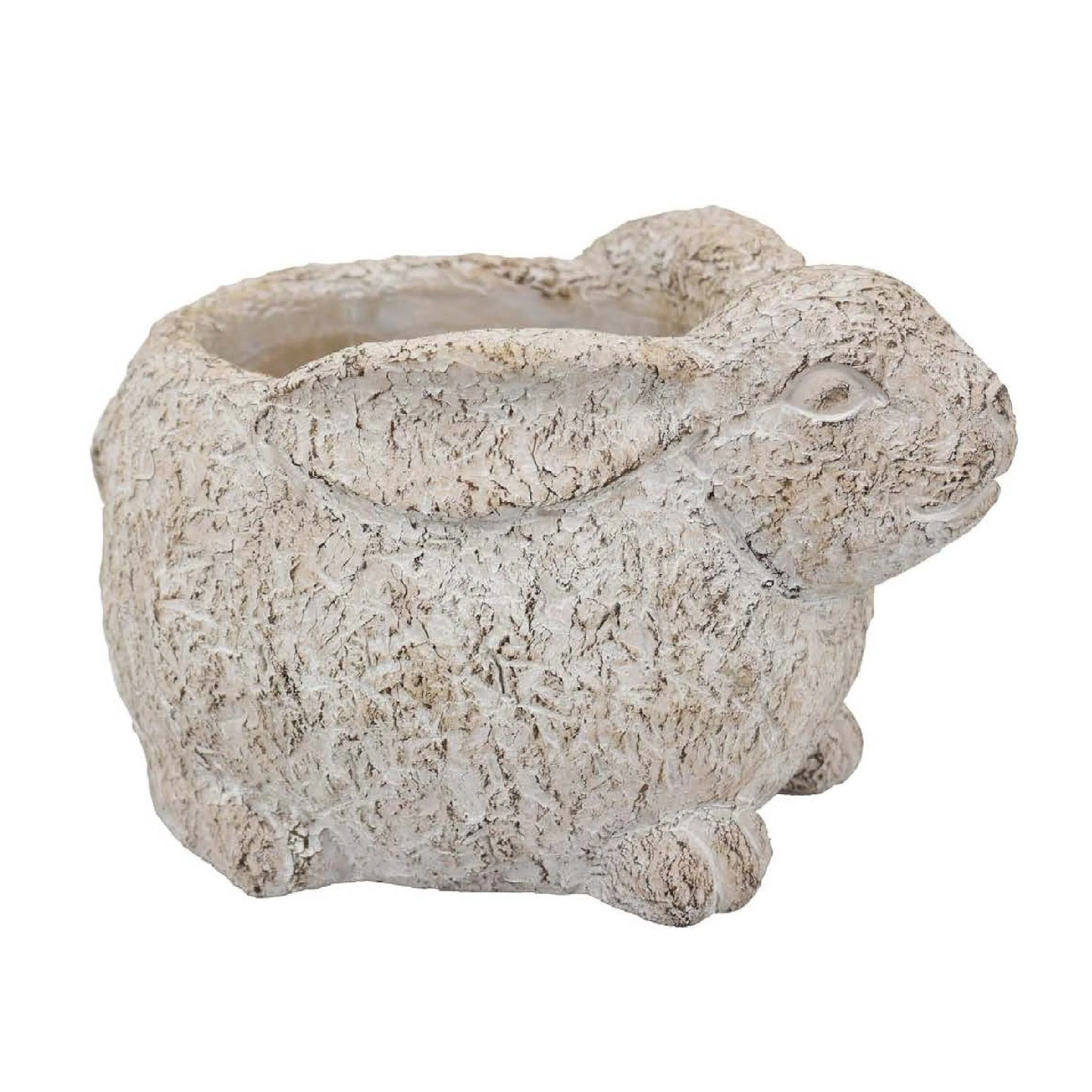 Hailey Decorative Rabbit Planter, Rustic White Terracotta 13 Inch