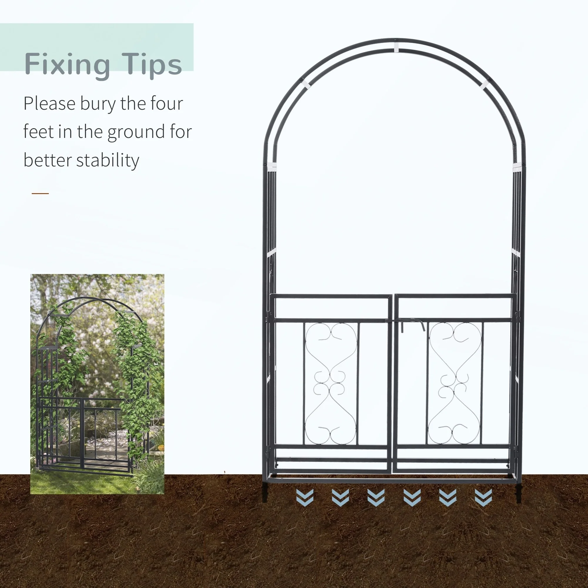 Outsunny 81in Metal Garden Arbor with Double Doors