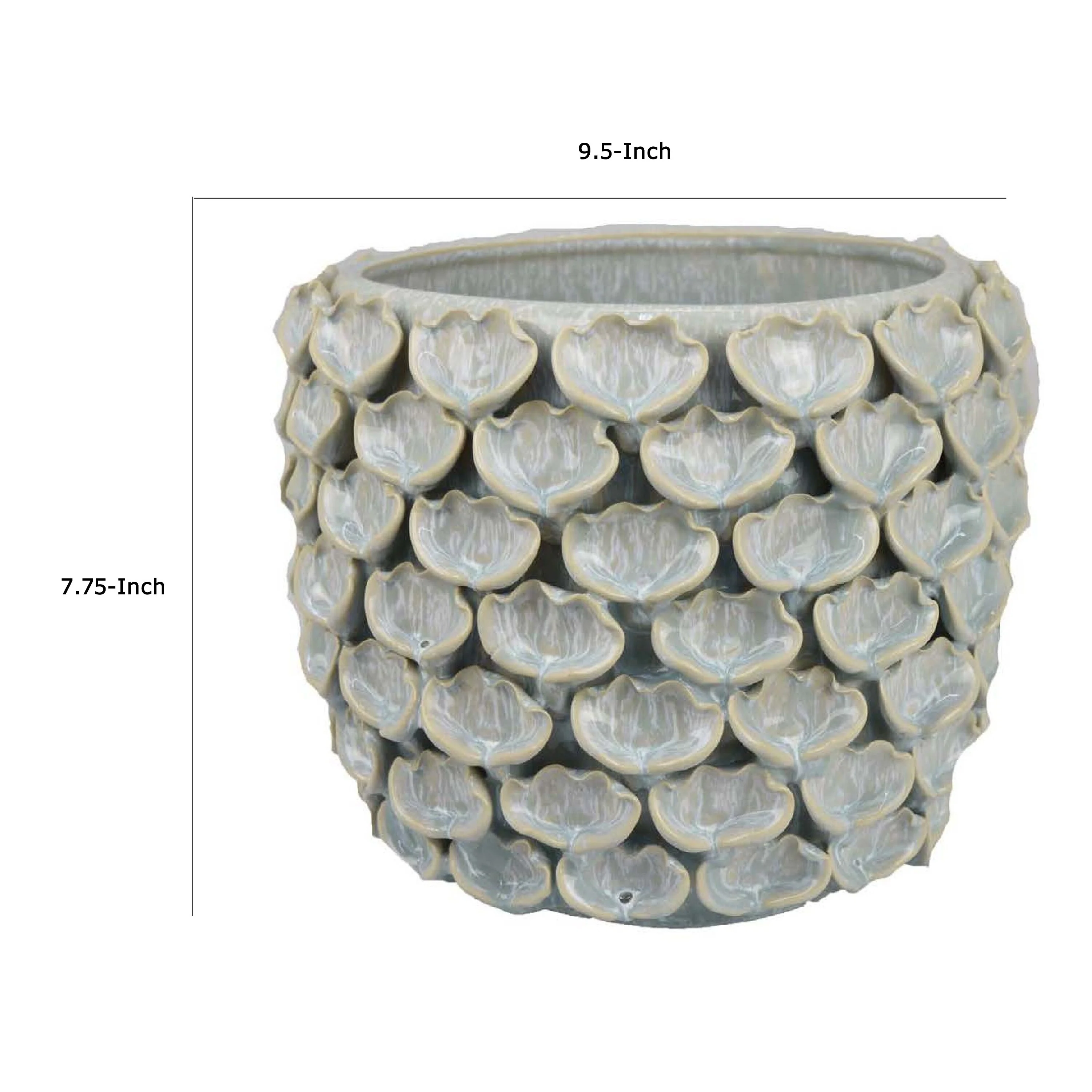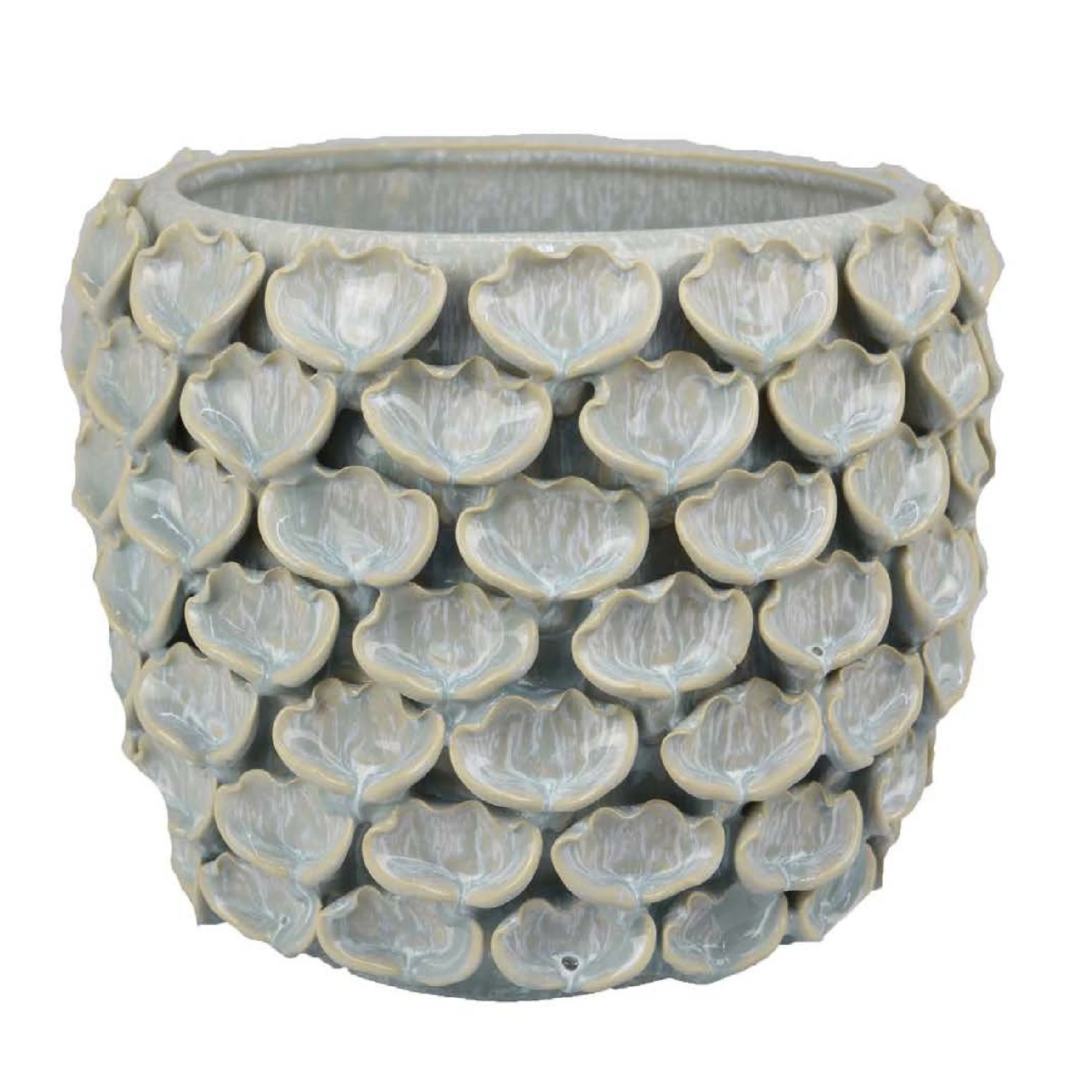 Aster Accent Planter w Raised Petal Pattern Blue Green Ceramic 10 Inch