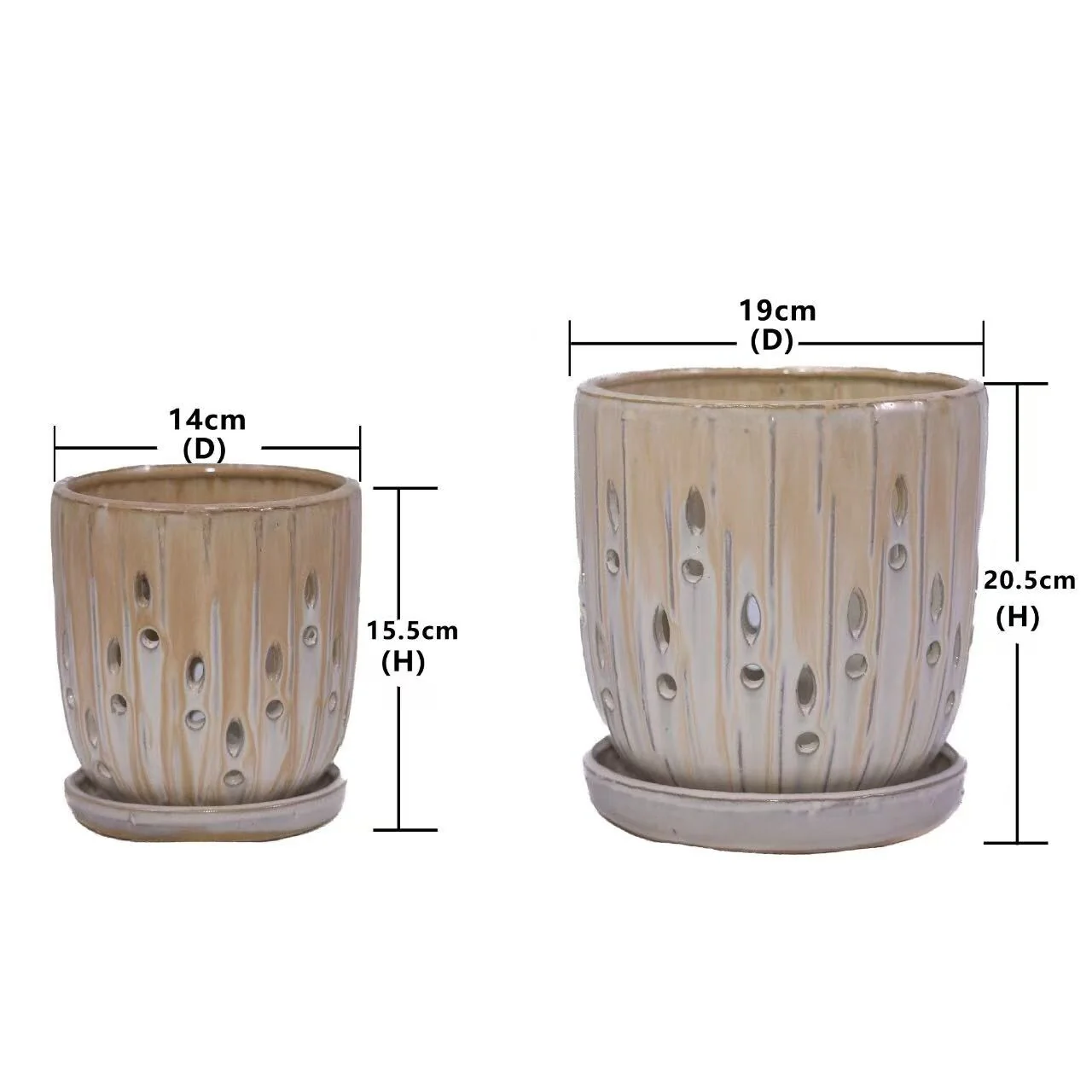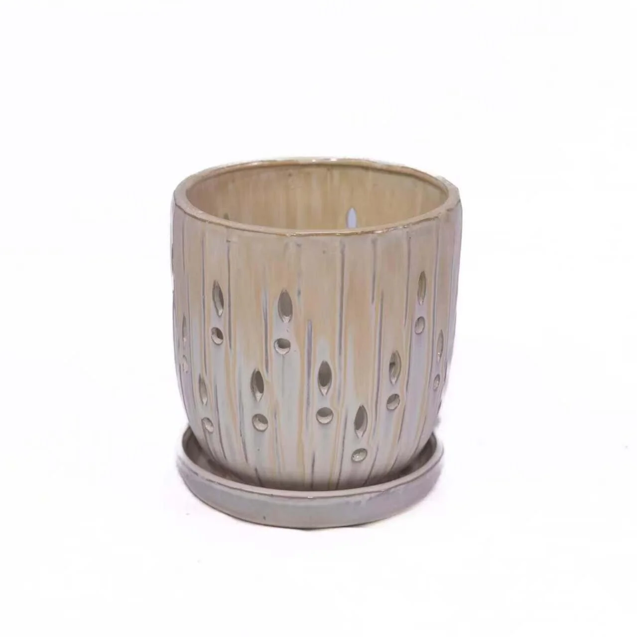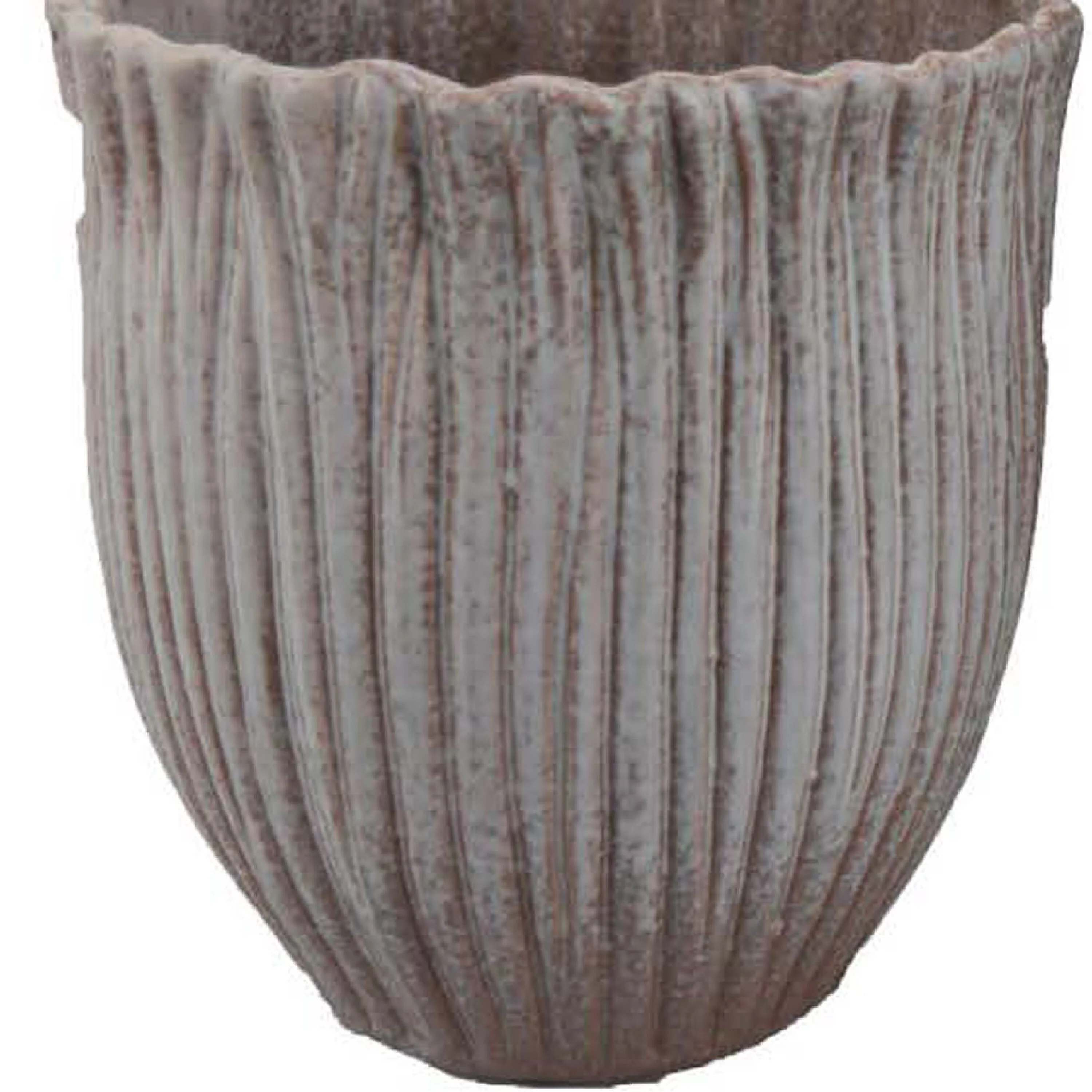Decorative Planter Set of 2, Ribbed Texture Gray Ceramic Body
