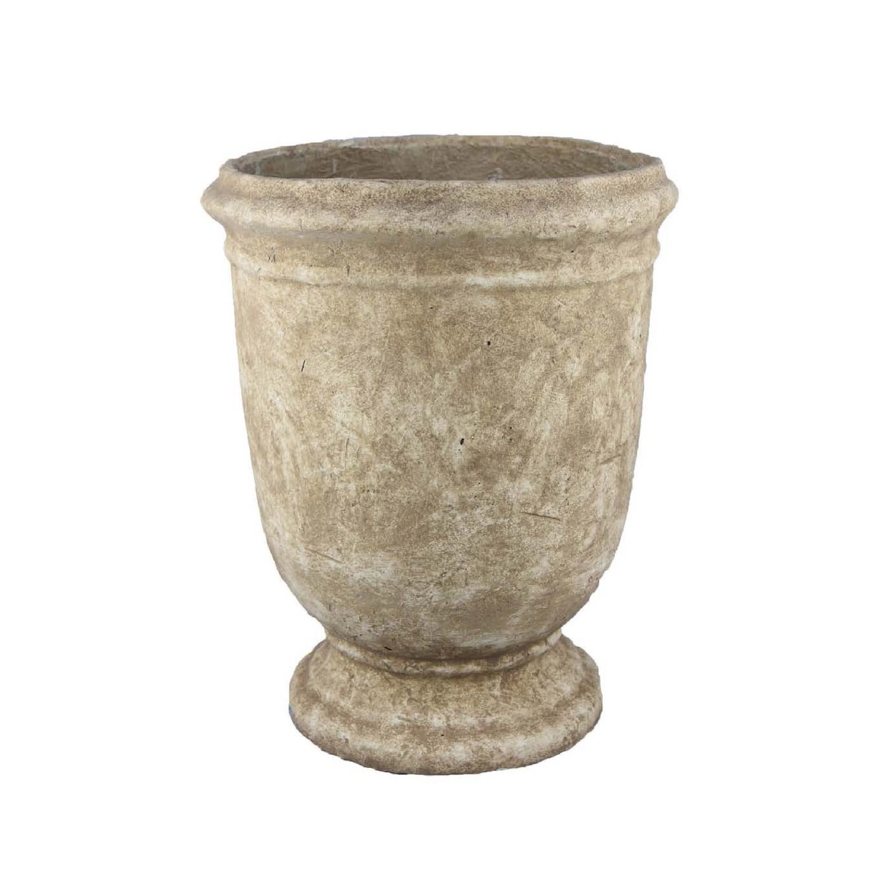 Decorative Planter Pot, Vintage Stone Textured Tan Terracotta 20 Inch