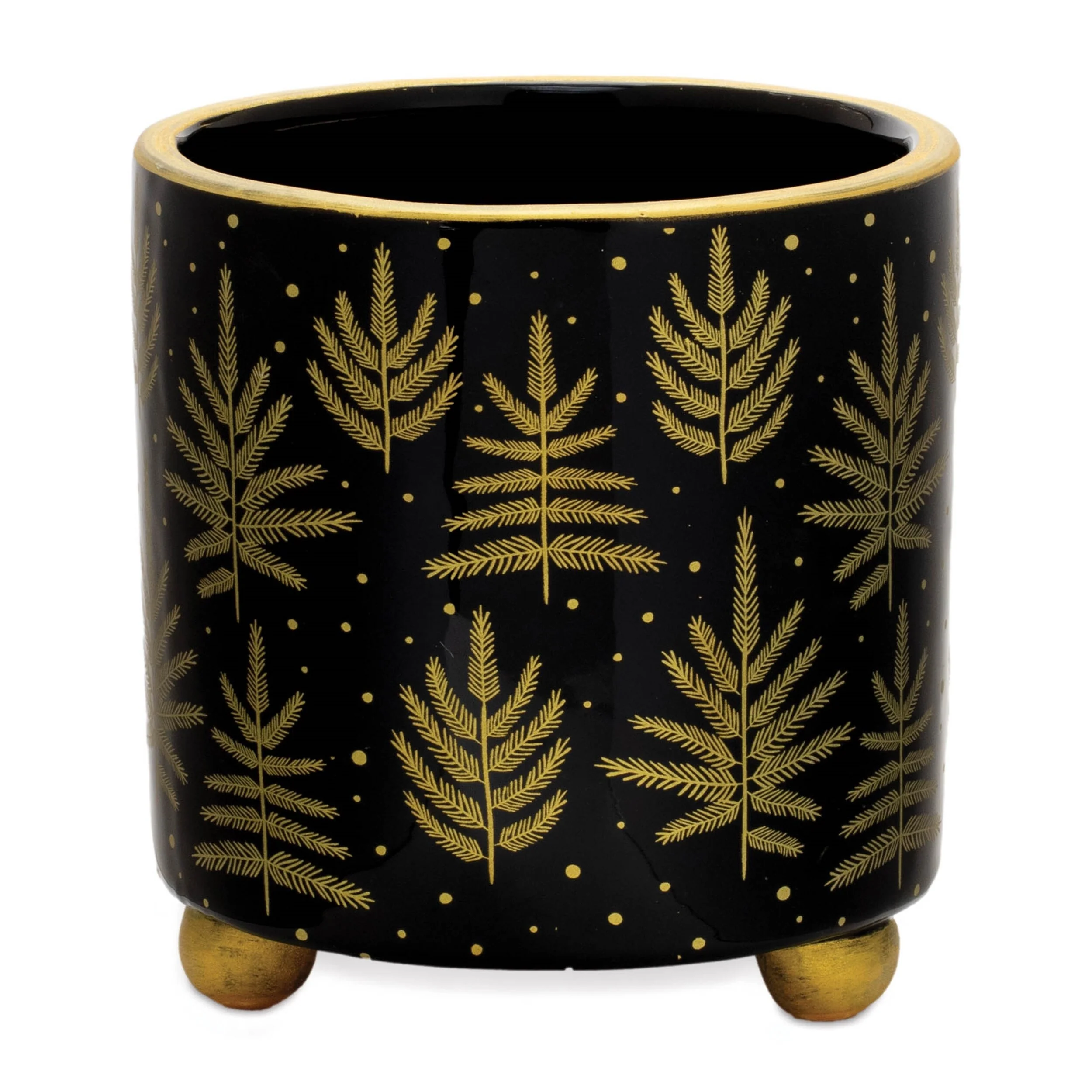 Set of 2 Christmas Green Footed Containers with Gold Pine Tree Accents Indoor Holiday Tabletop Decor - 5��L x 5��W x 5.5��H