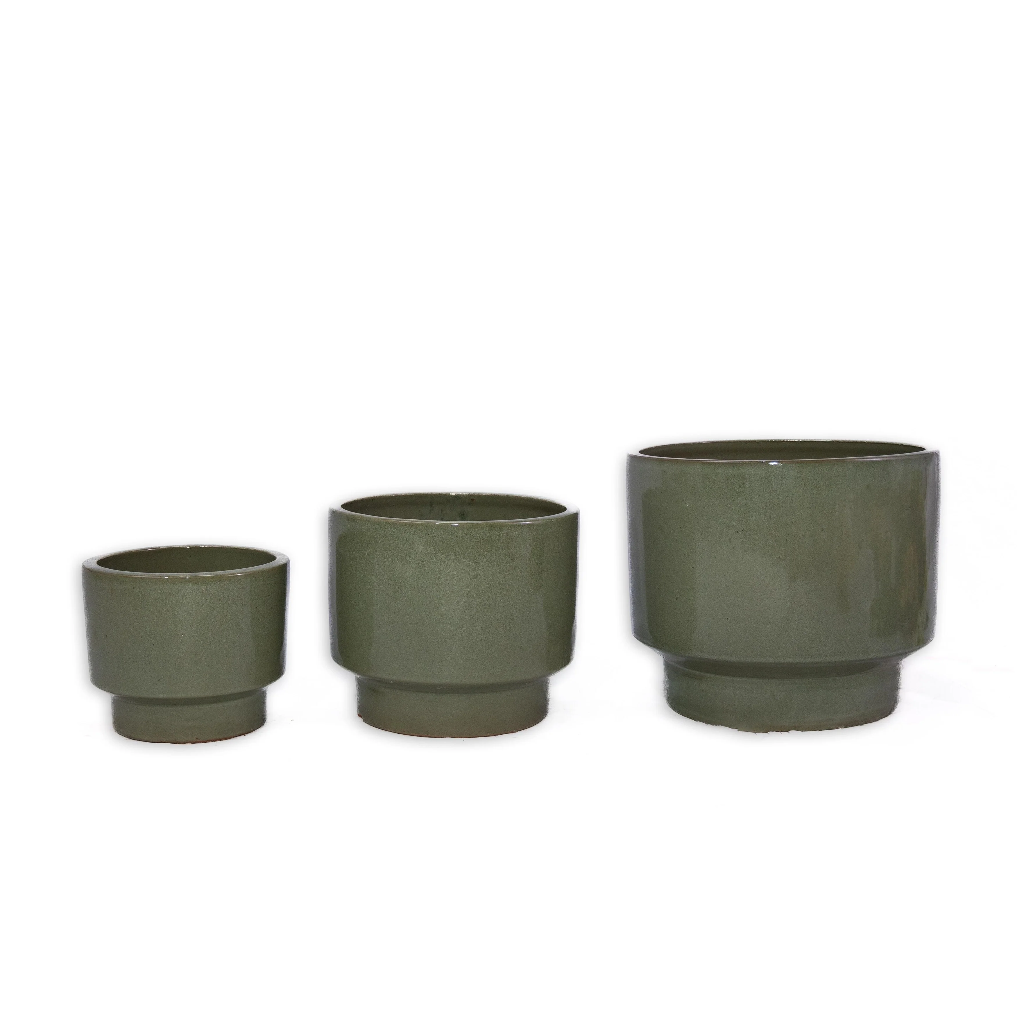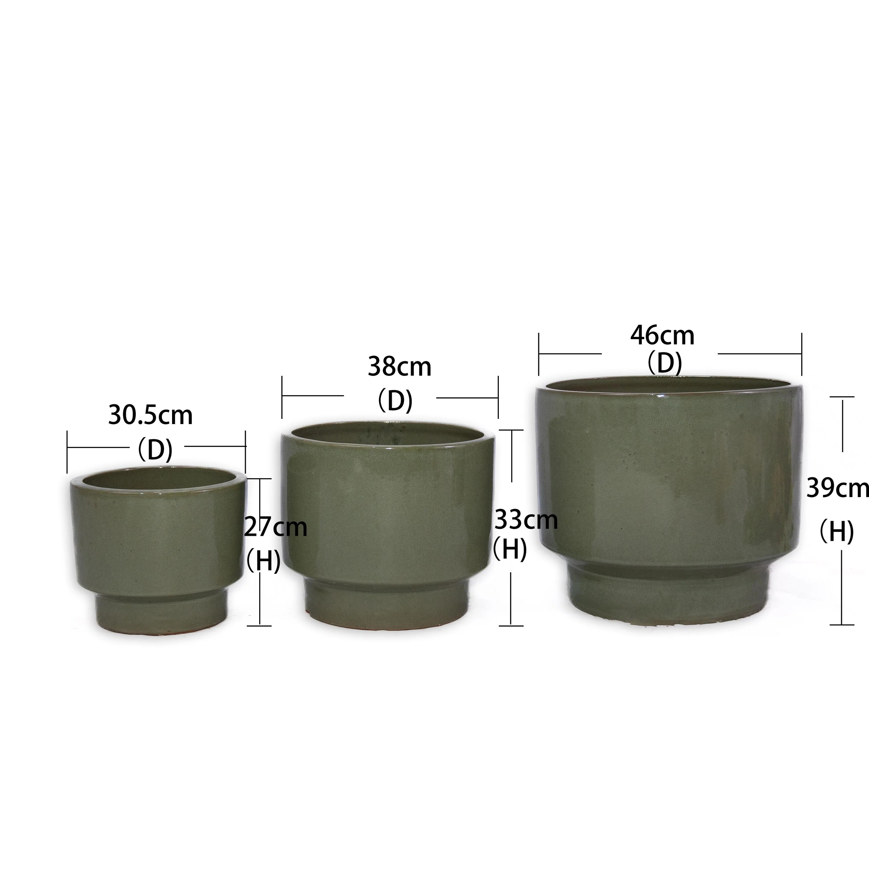 Set of 3 Antique Light Green Ceramic Planters 15 Inch Square Outdoor Garden Pots with Drainage Hole Weather Resistant