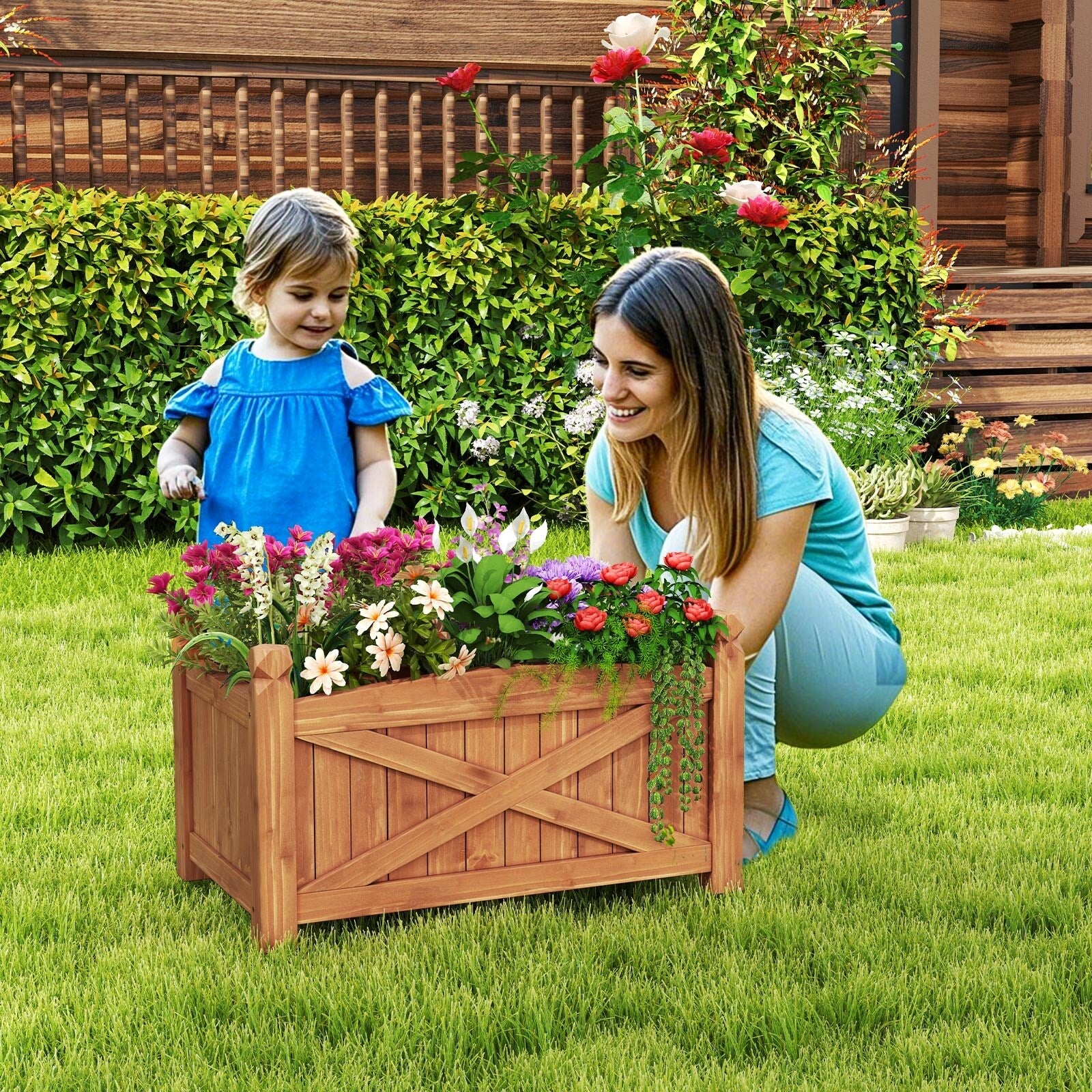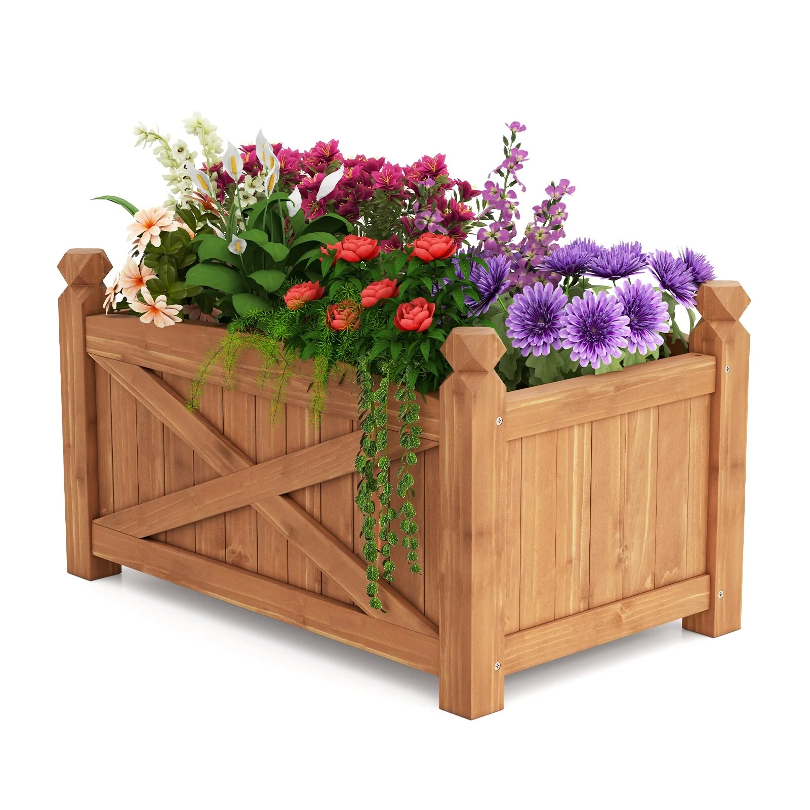 Gymax Wooden Raised Garden Bed Elevated Outdoor Planter Box w/