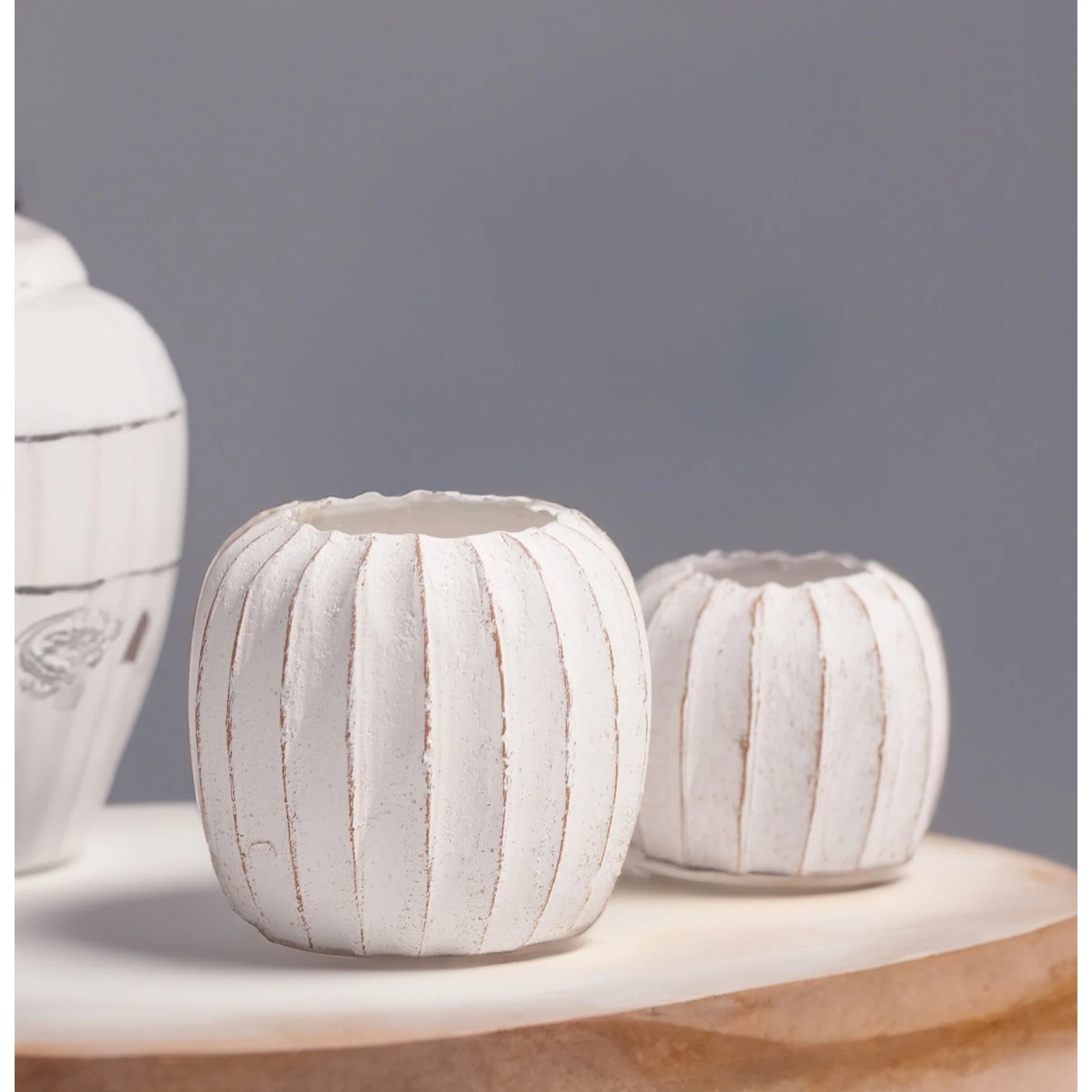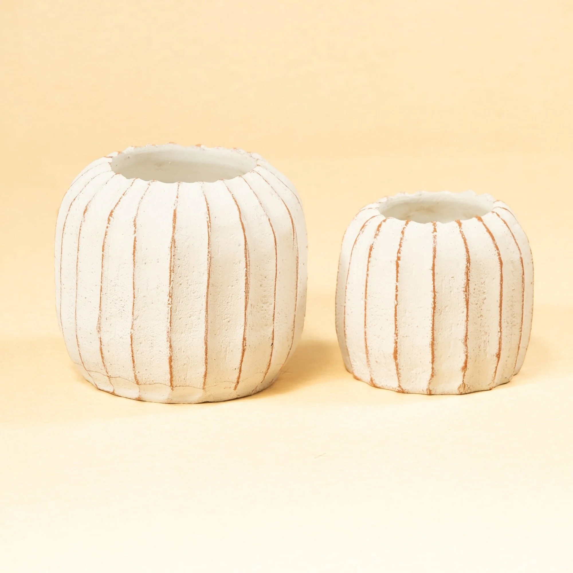 Modern Planter Bowl Set of 2, Ribbed Edges, Serene White Terracotta