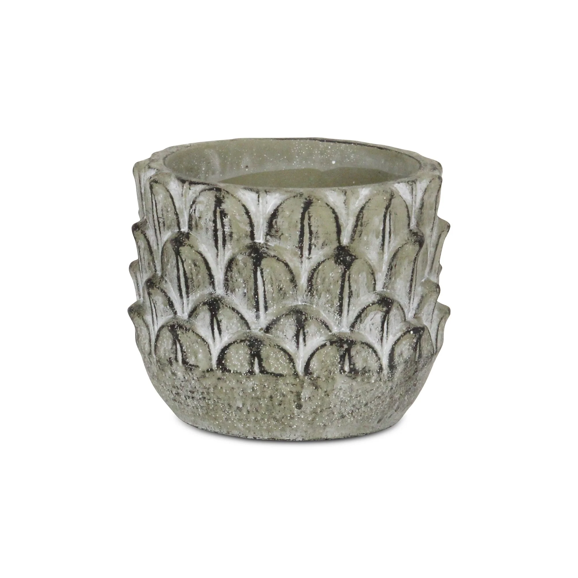 5.25" Gray Round Overlapping Feather Embossed Outdoor Planter Pot