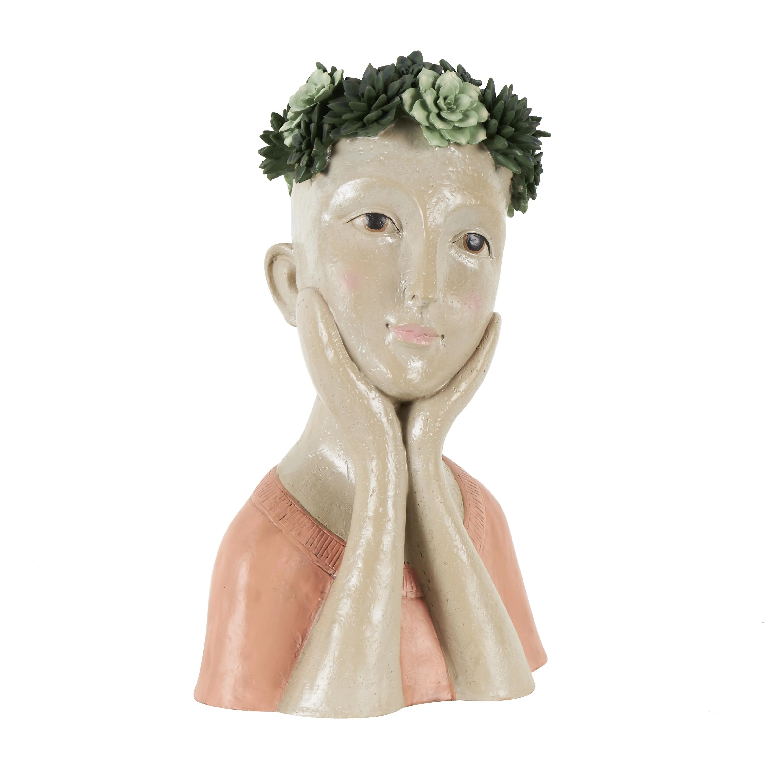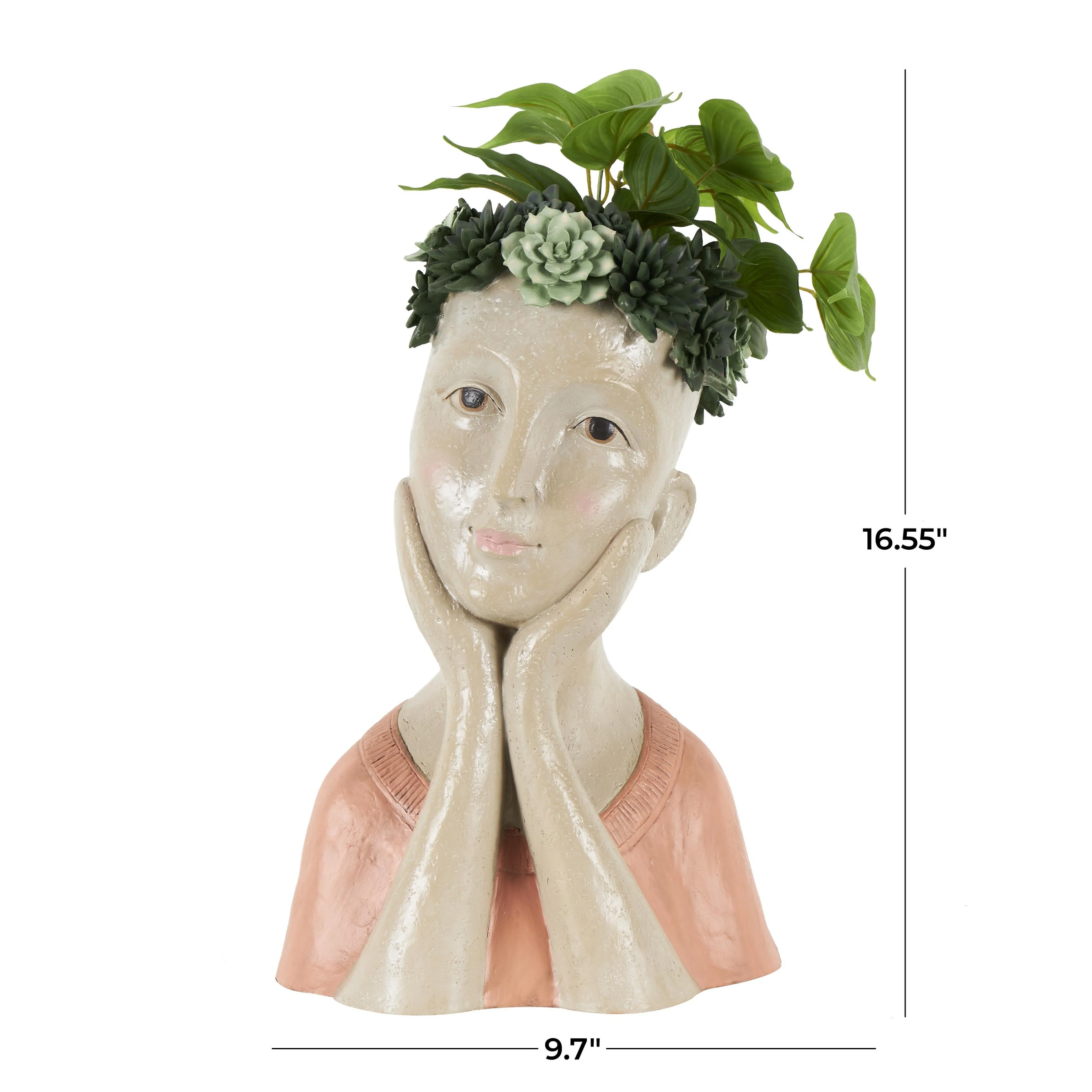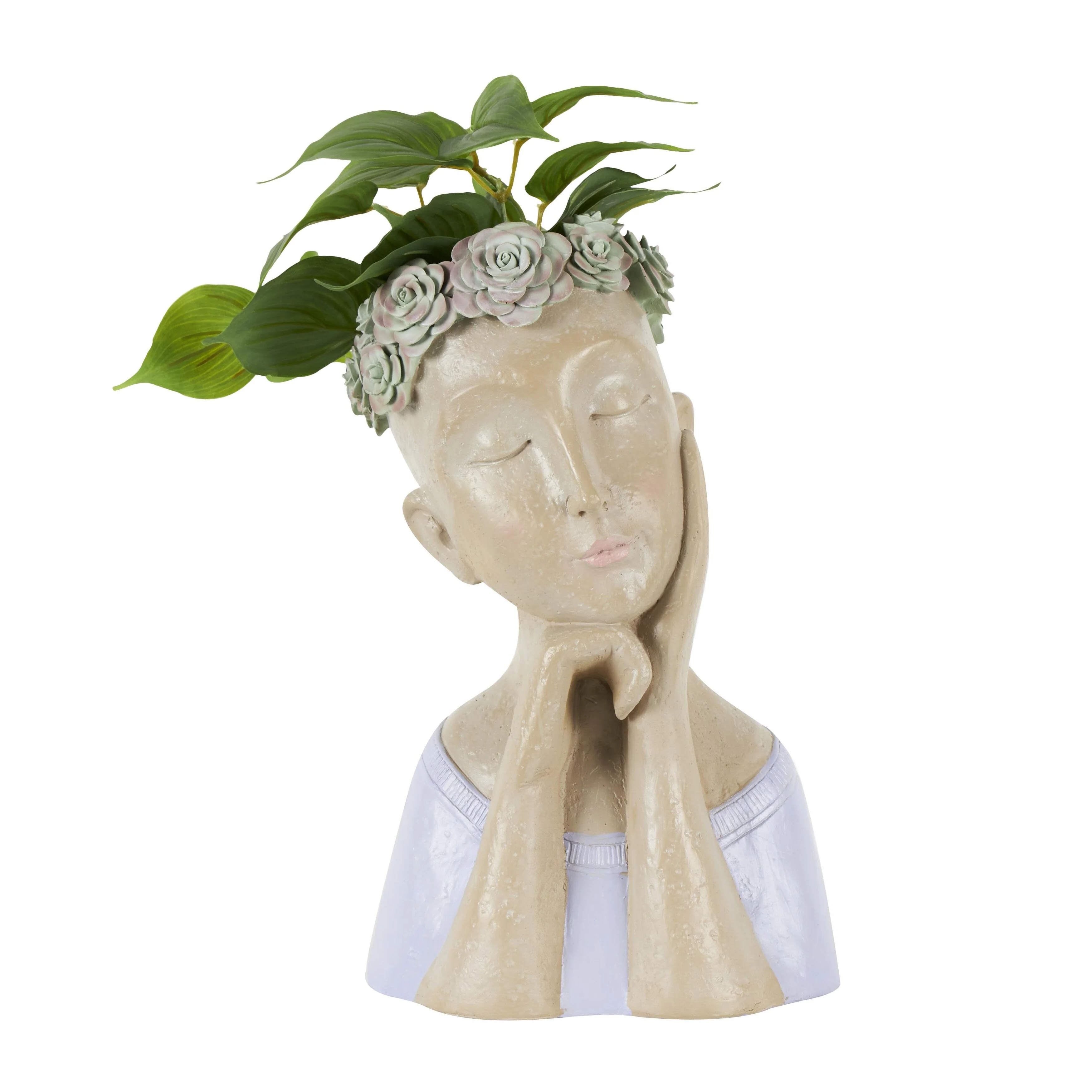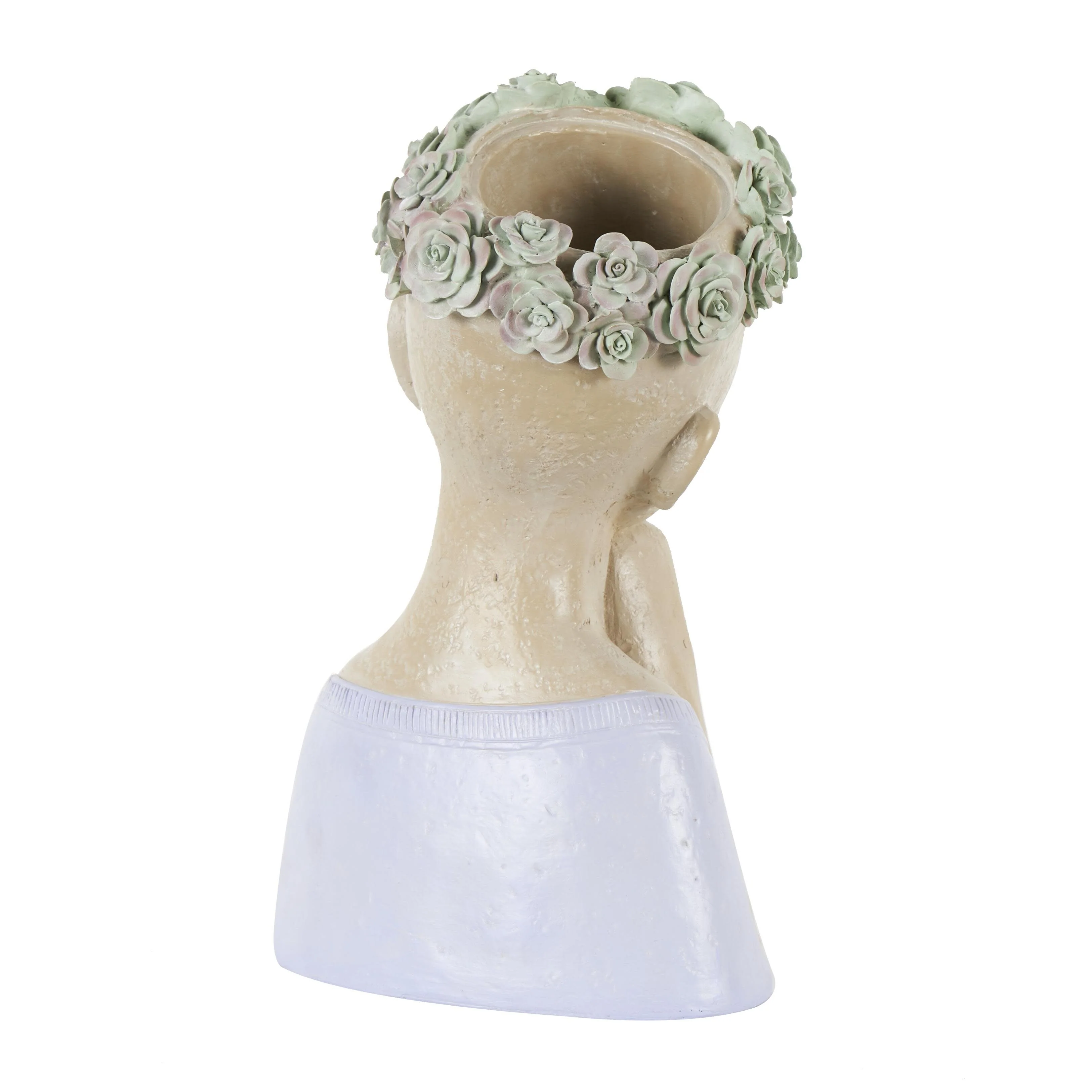 Resin Woman Bust Indoor Outdoor Planter with Succulent or Flower Crown and Orange or Blue Top - Beige - Roche River Decor
