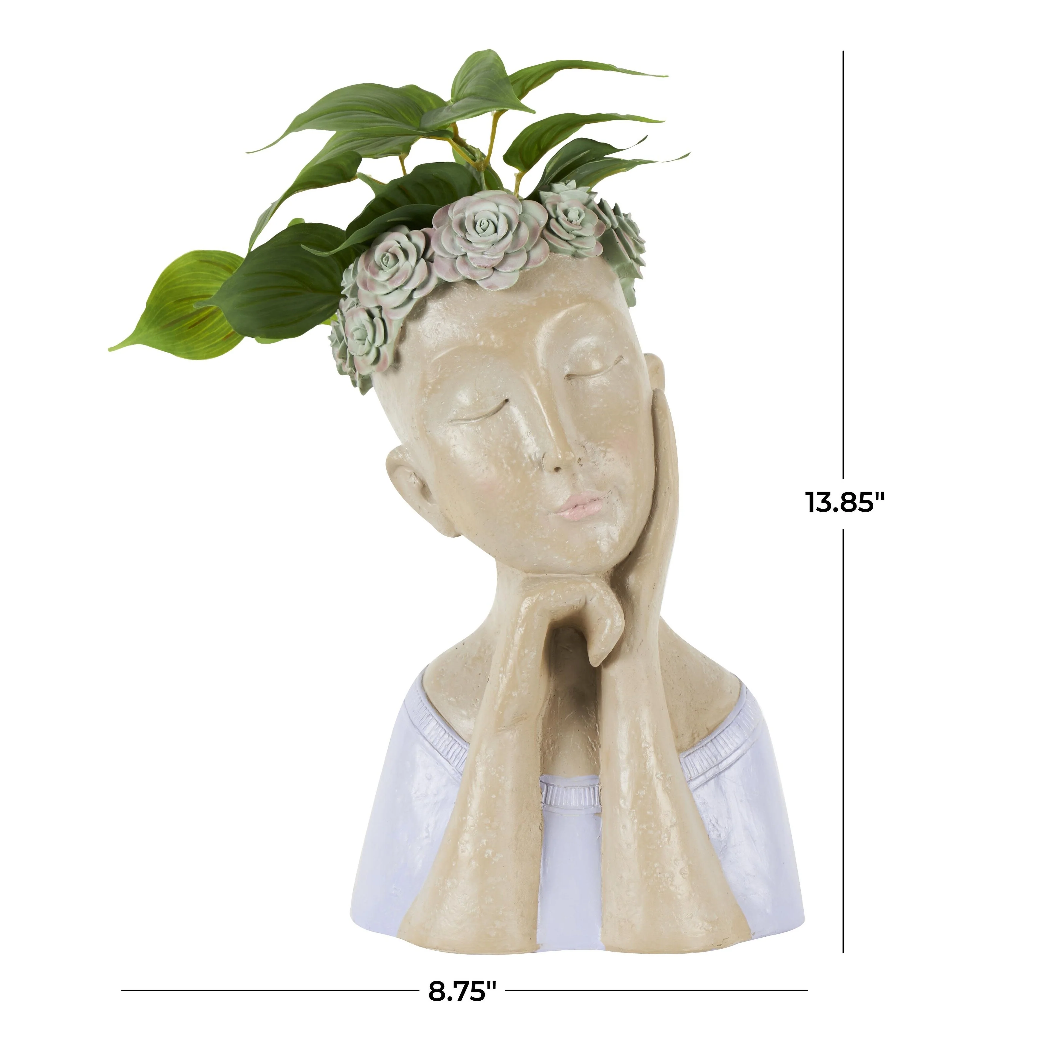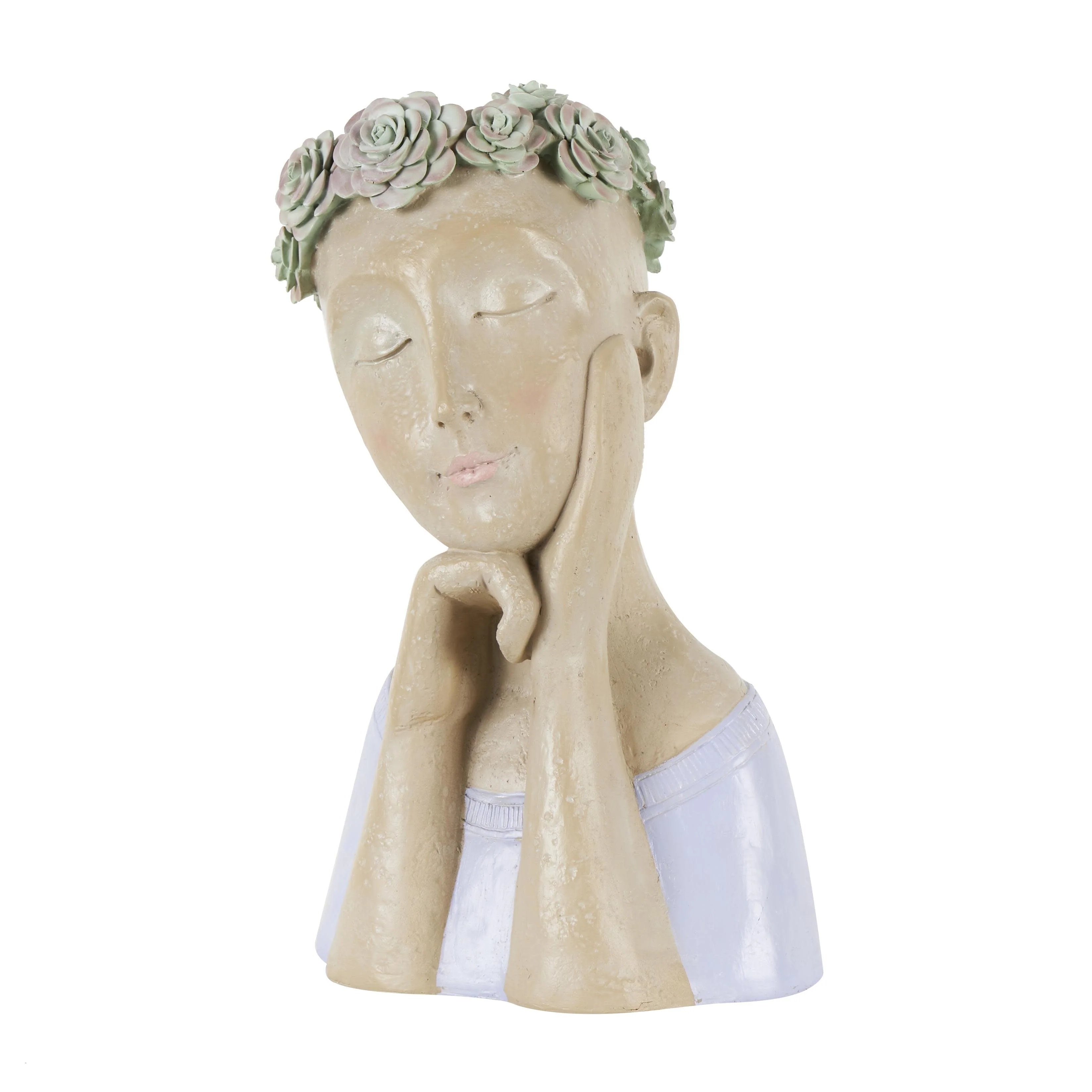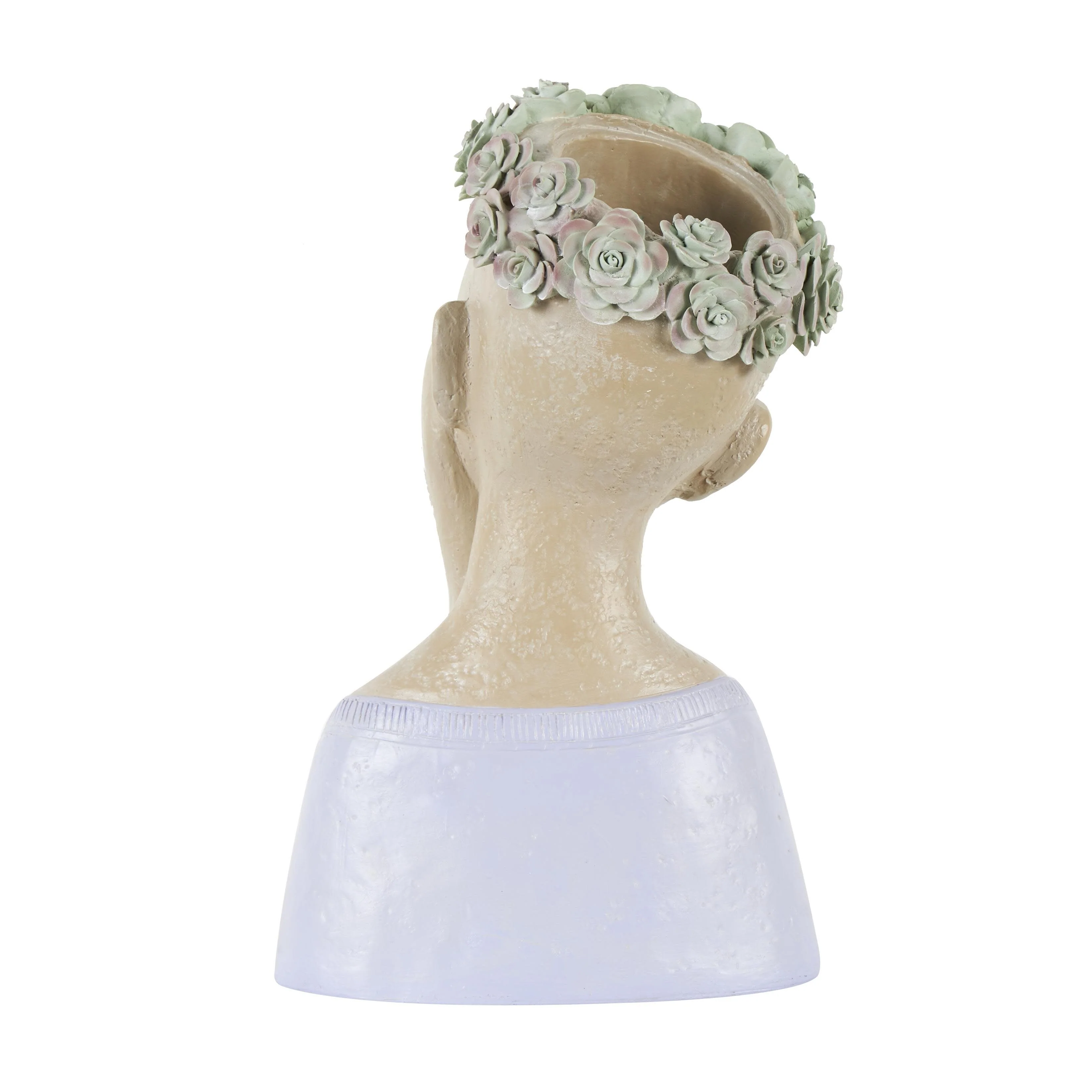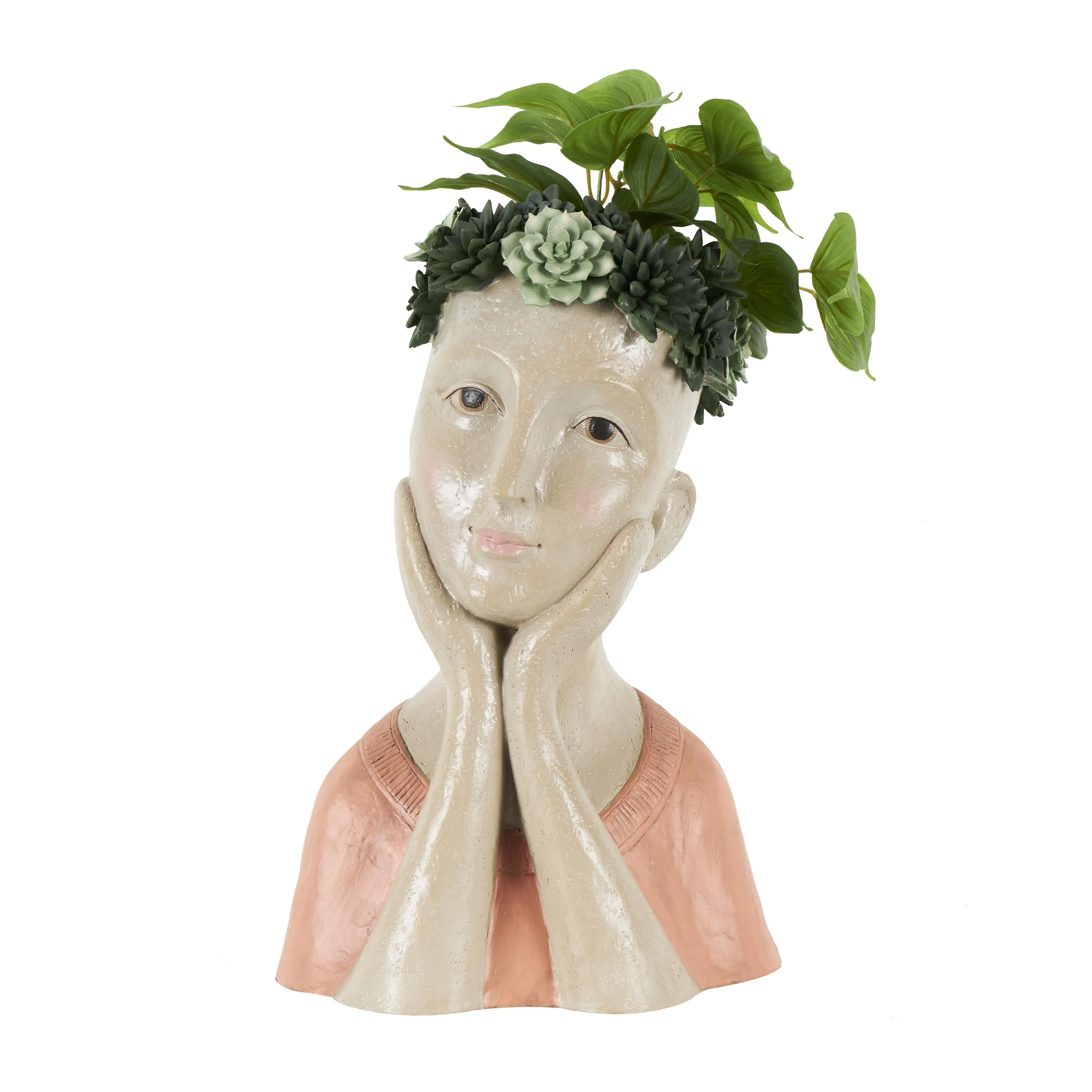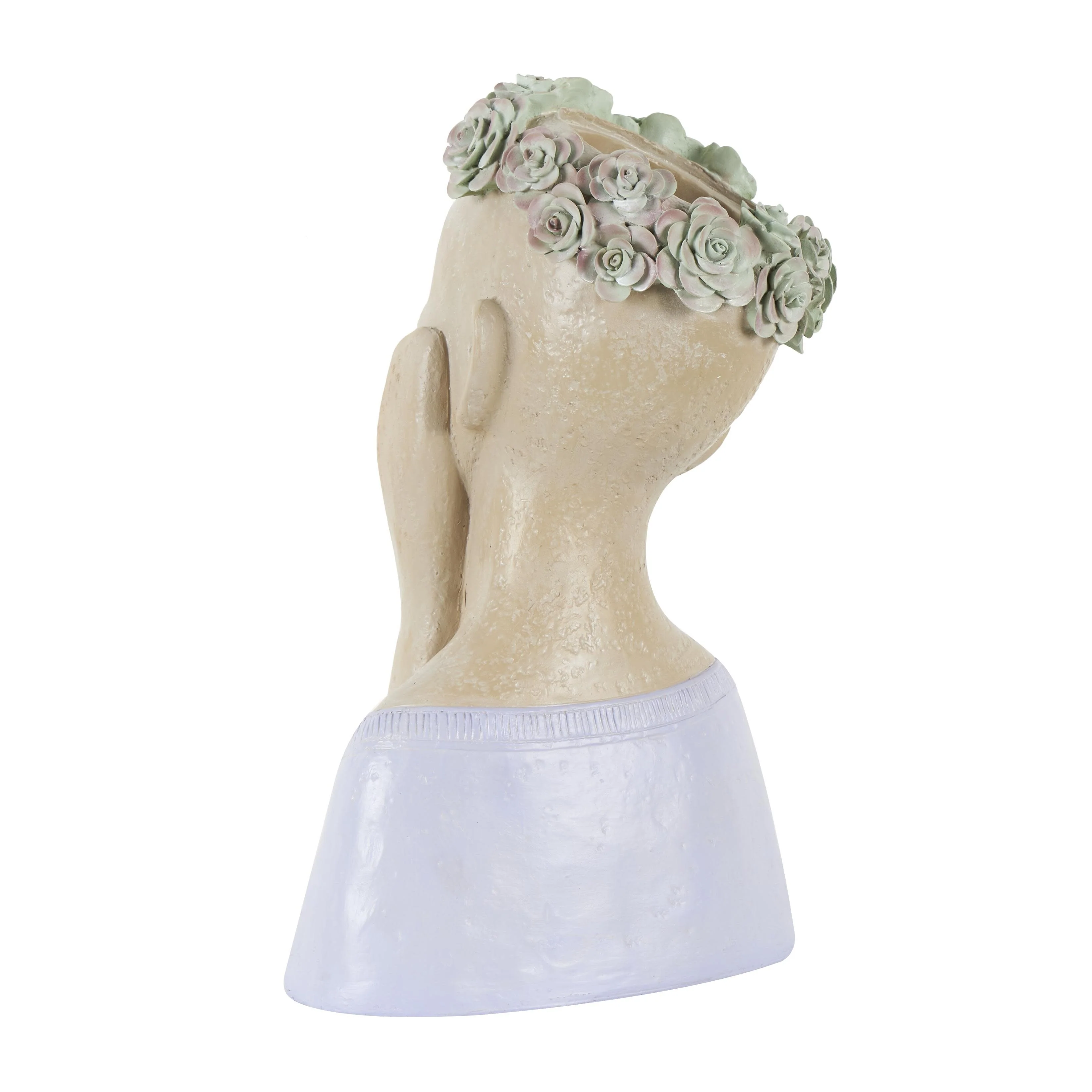 Resin Woman Bust Indoor Outdoor Planter with Succulent or Flower Crown and Orange or Blue Top - Beige - Roche River Decor