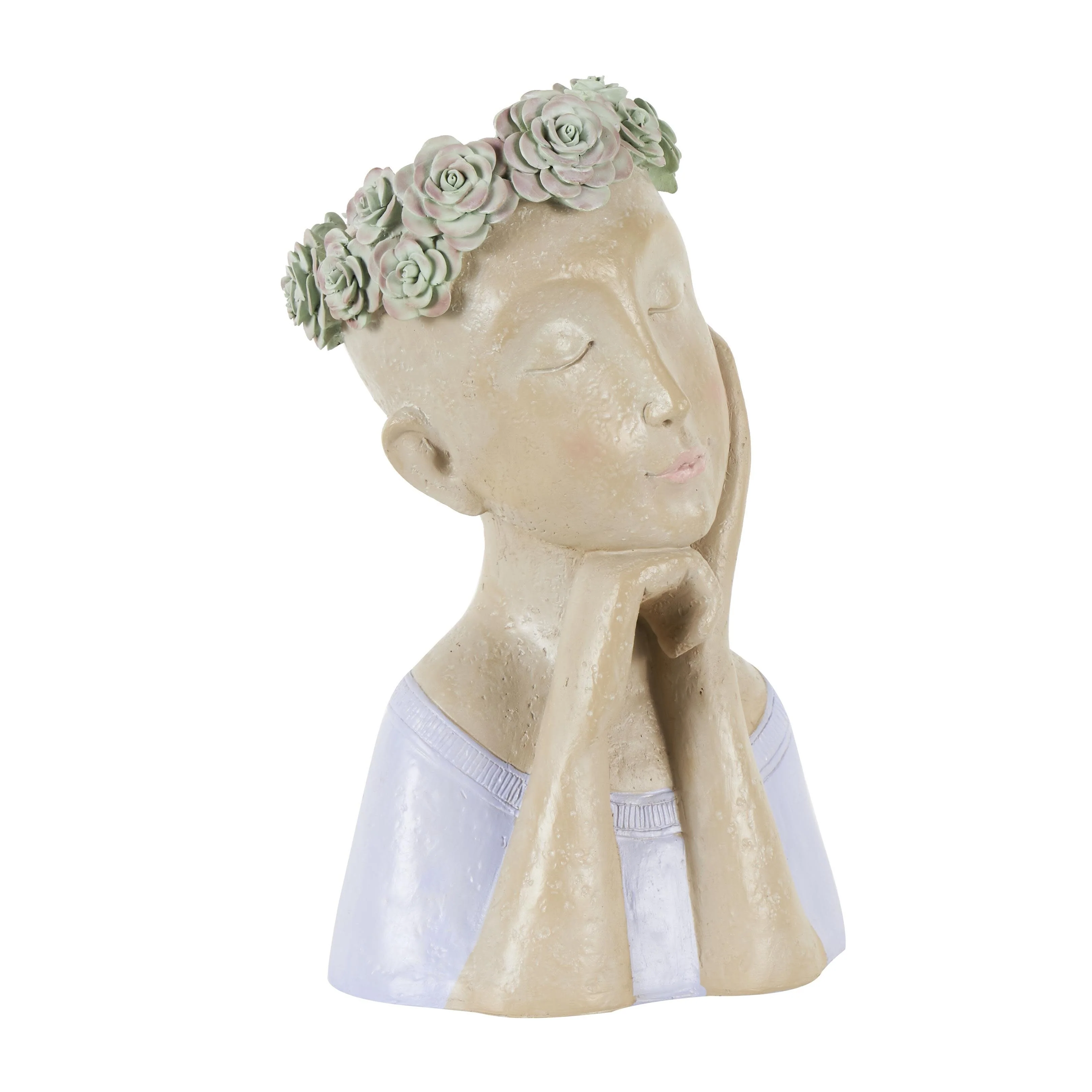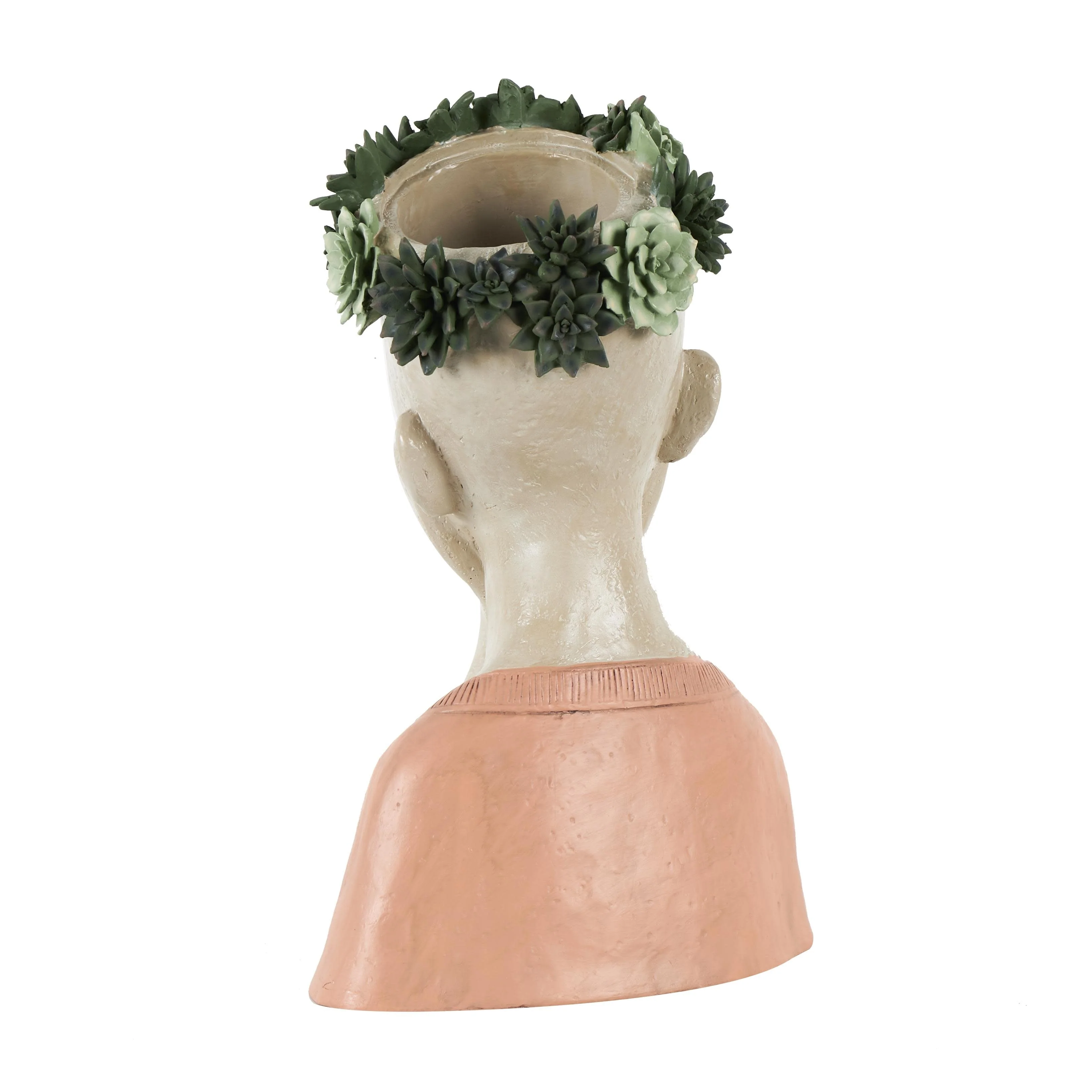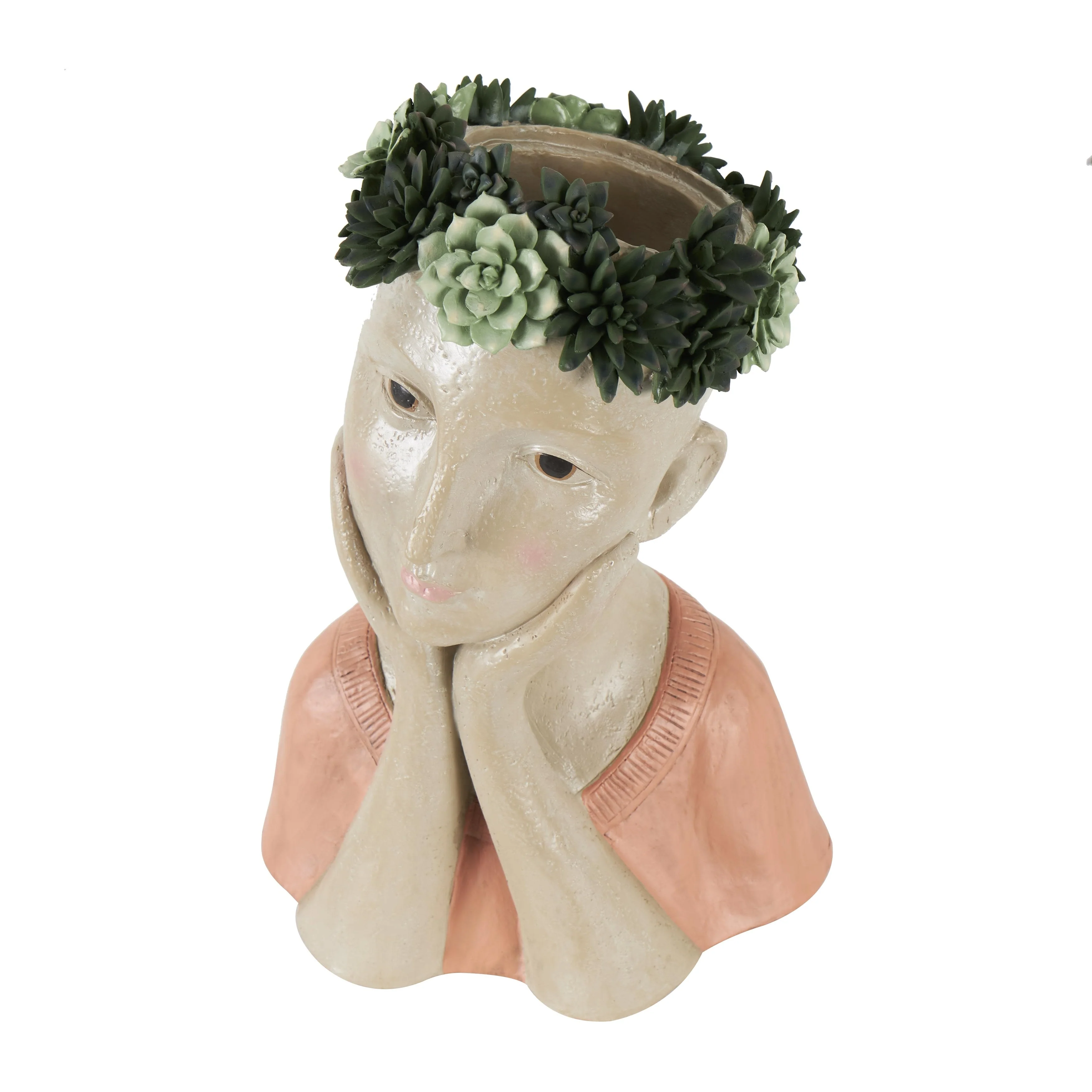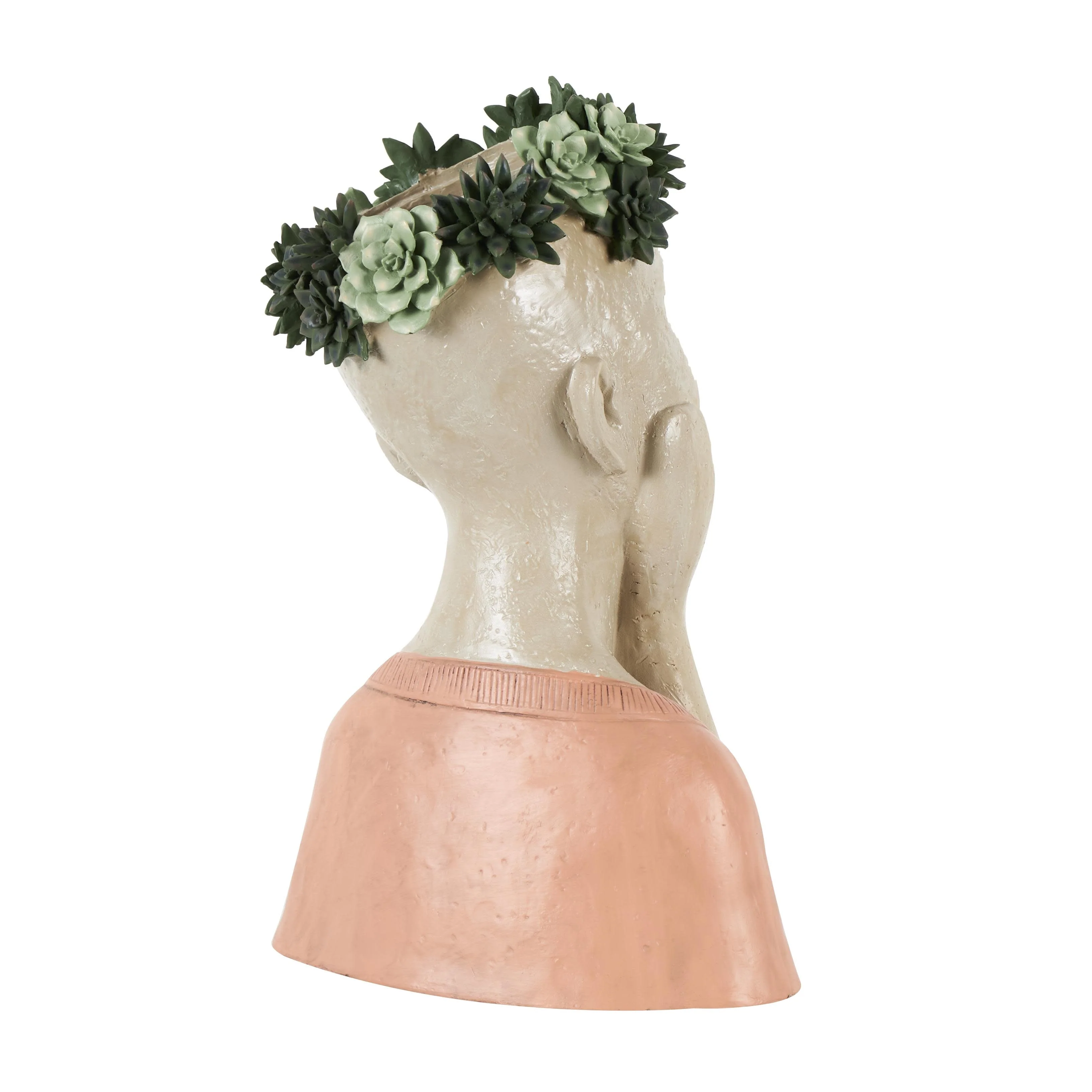 Resin Woman Bust Indoor Outdoor Planter with Succulent or Flower Crown and Orange or Blue Top - Beige - Roche River Decor