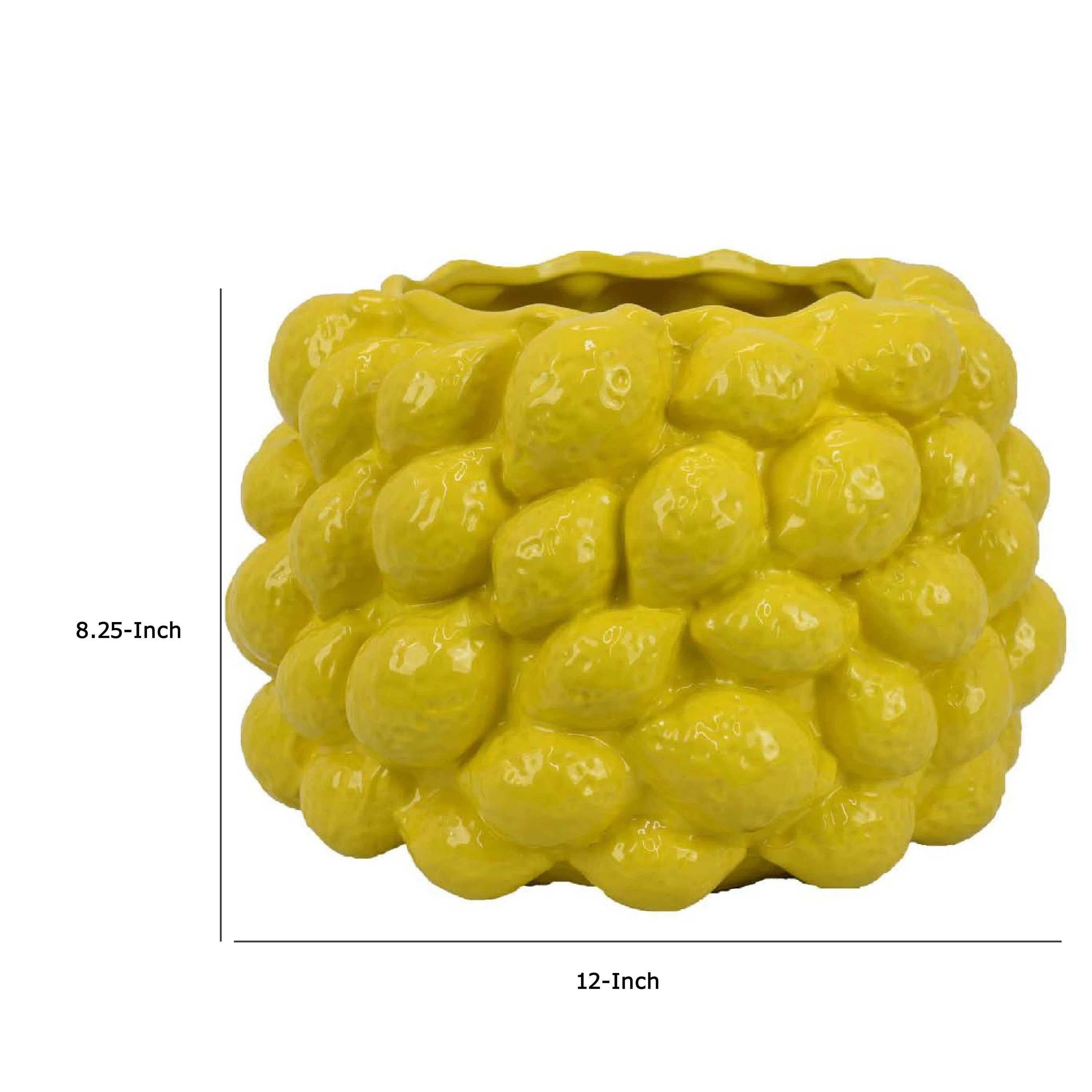 Alicia Accent Planter Vase, Sculpted Lemon Yellow Ceramic 12 Inch
