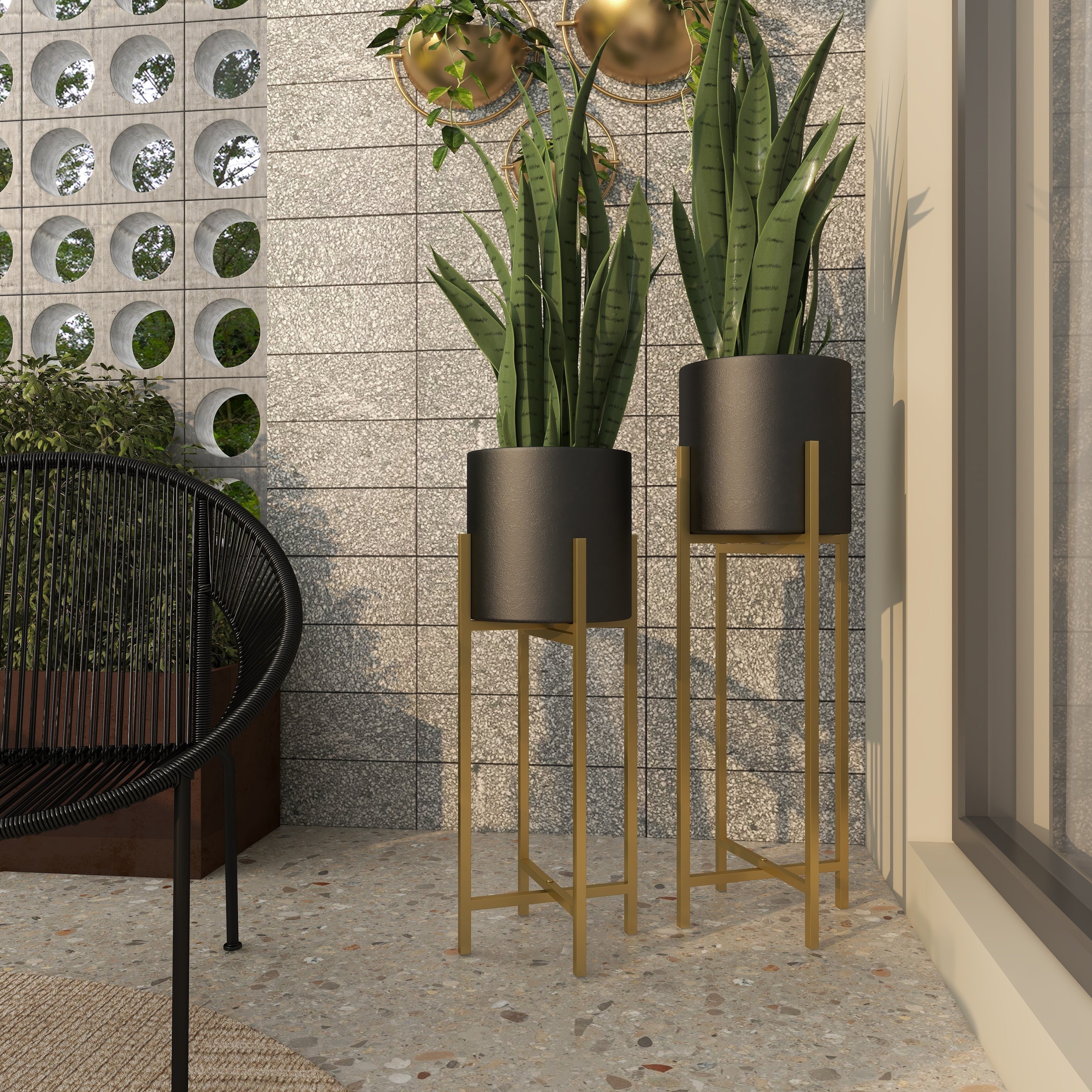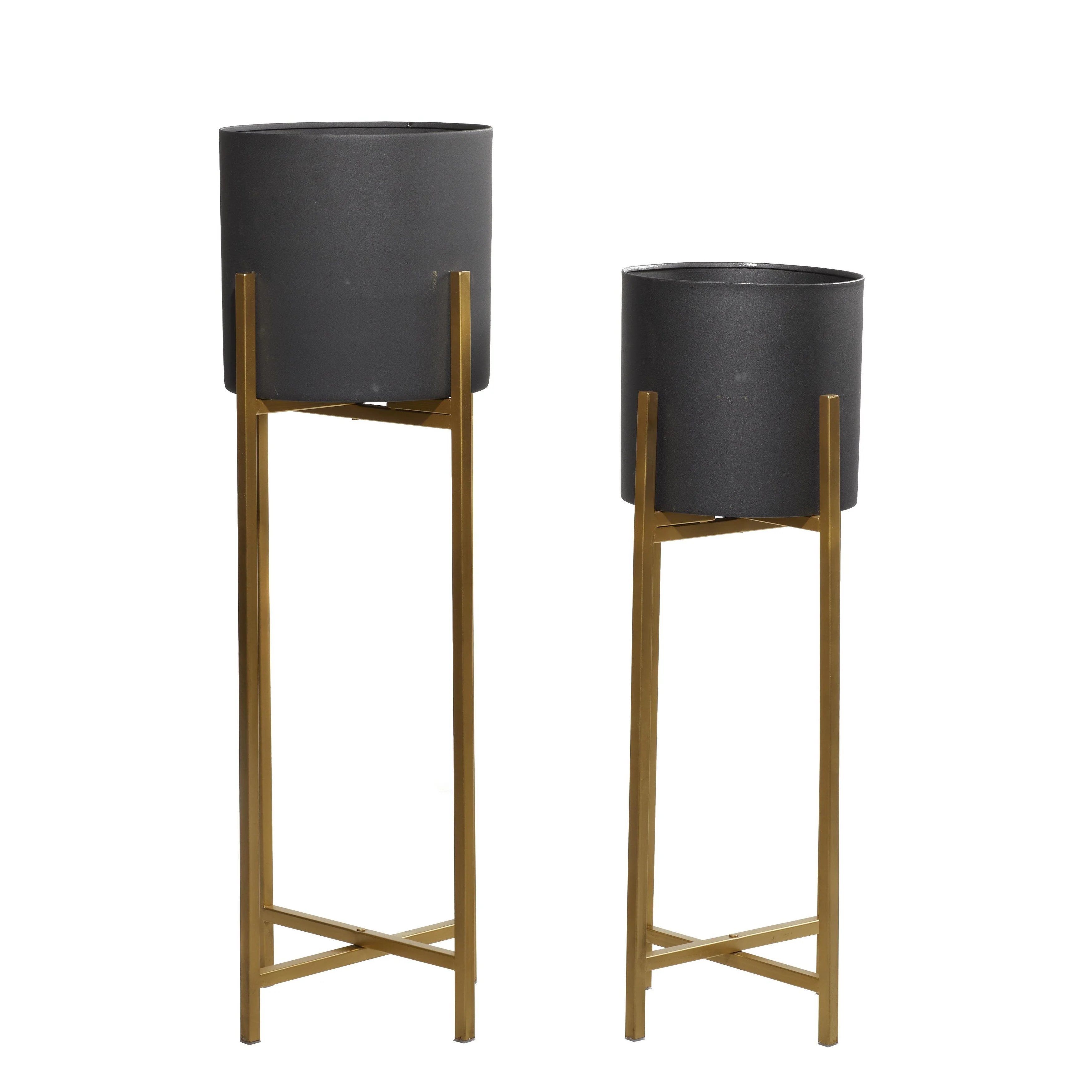Metal Indoor Outdoor Planter with Removable Stand - Set of 2 Gold or Black- Roche River Decor