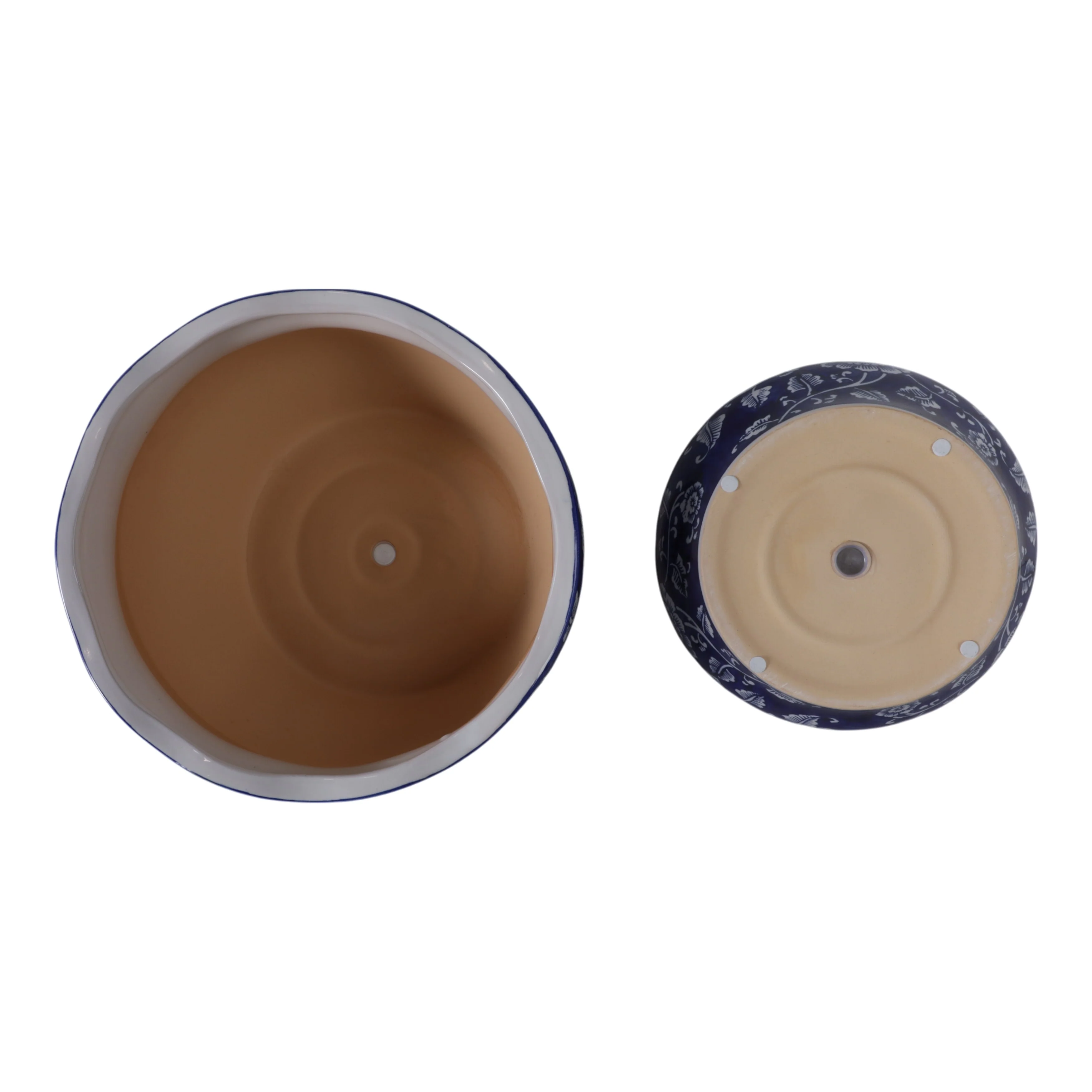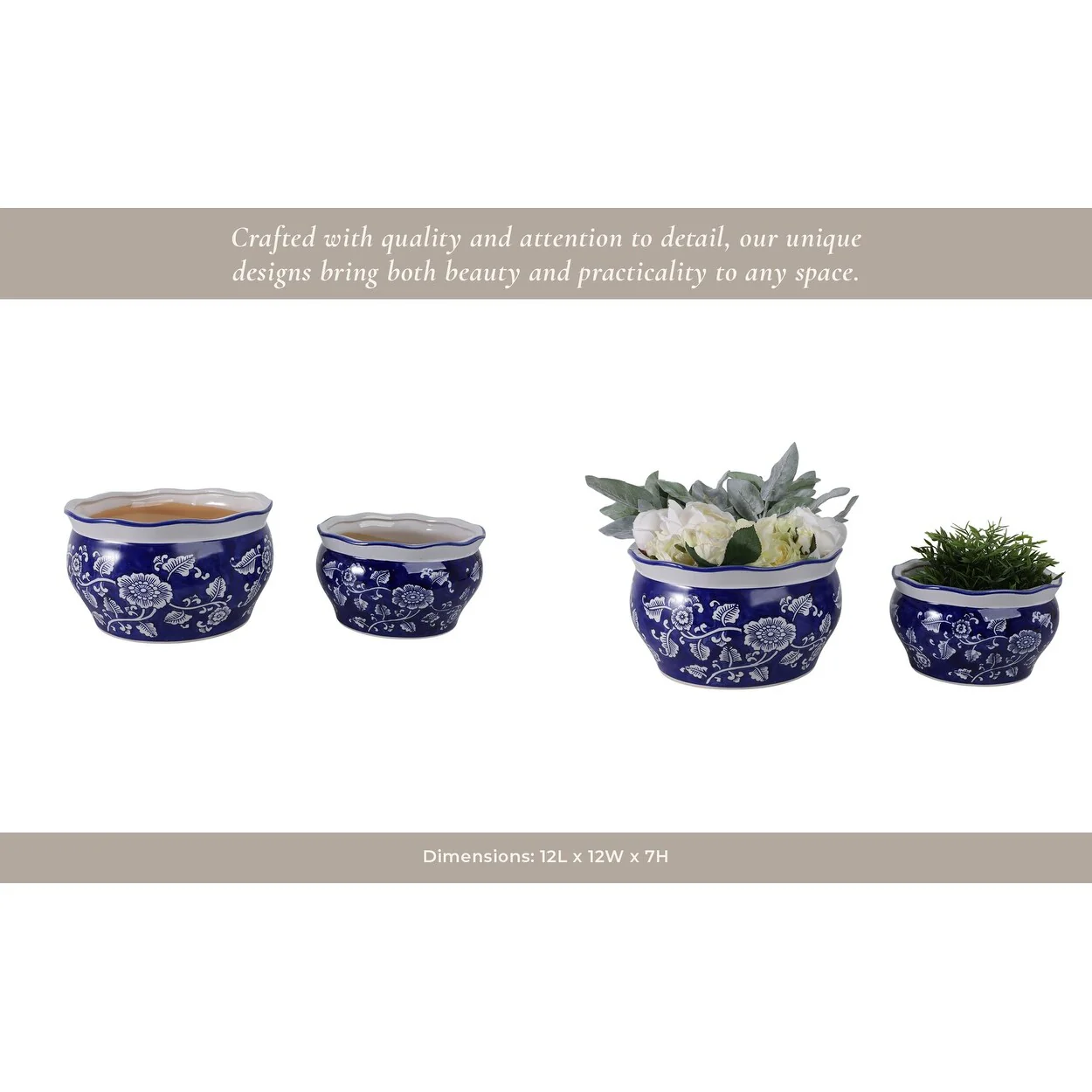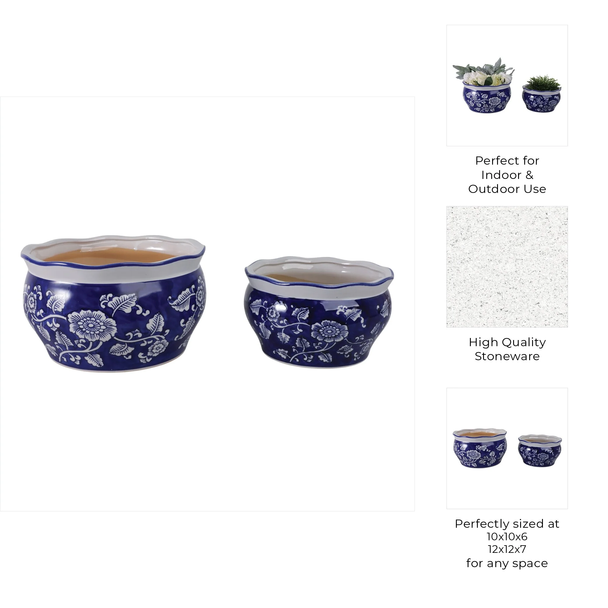 Stoneware Ceramic Chinoisere Planters with Scalloped Edges (Set of 2)