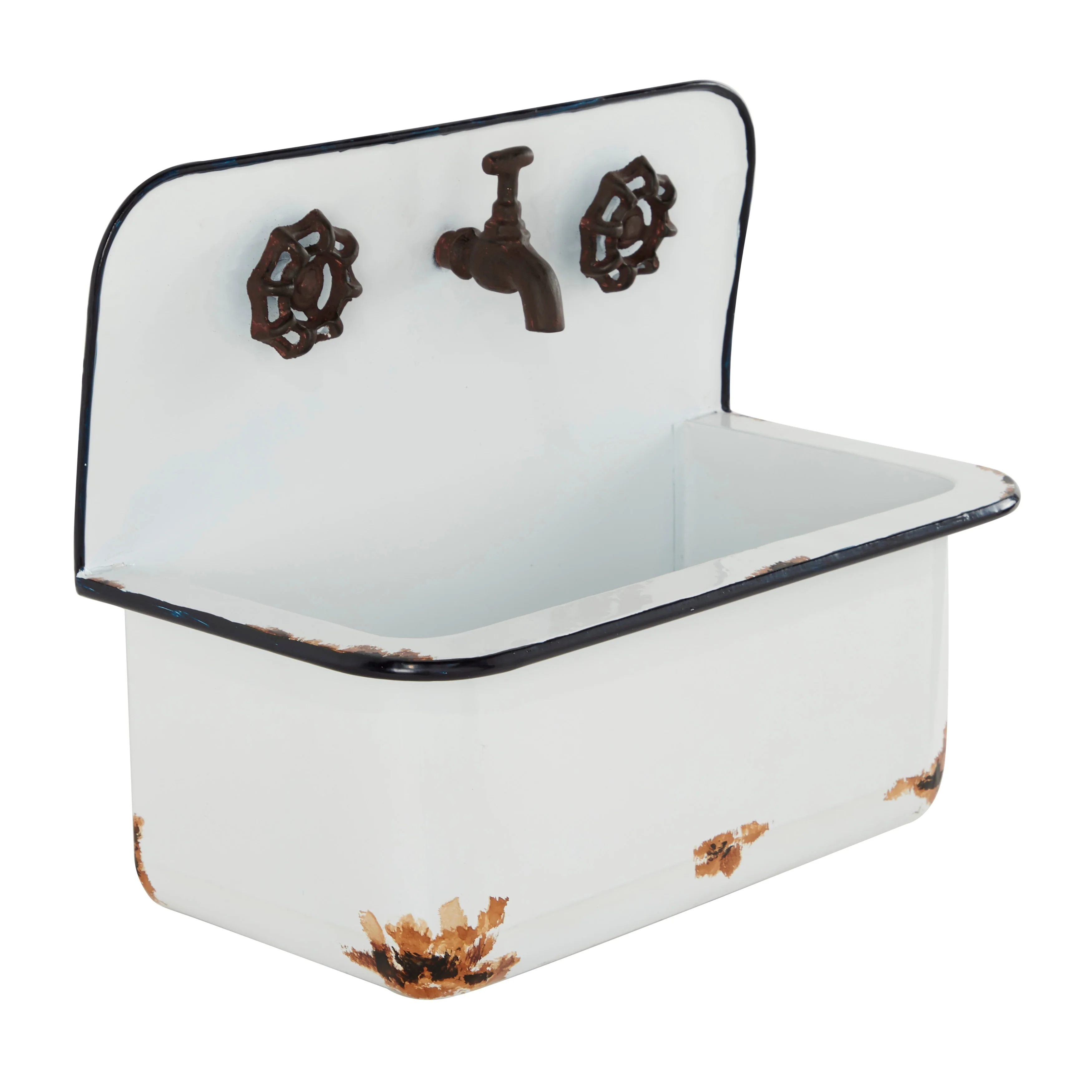 Metal Indoor Outdoor Sink Wall Planter with Bronze Hardware and Distressed Accents - Set of 2 White - Roche River Decor