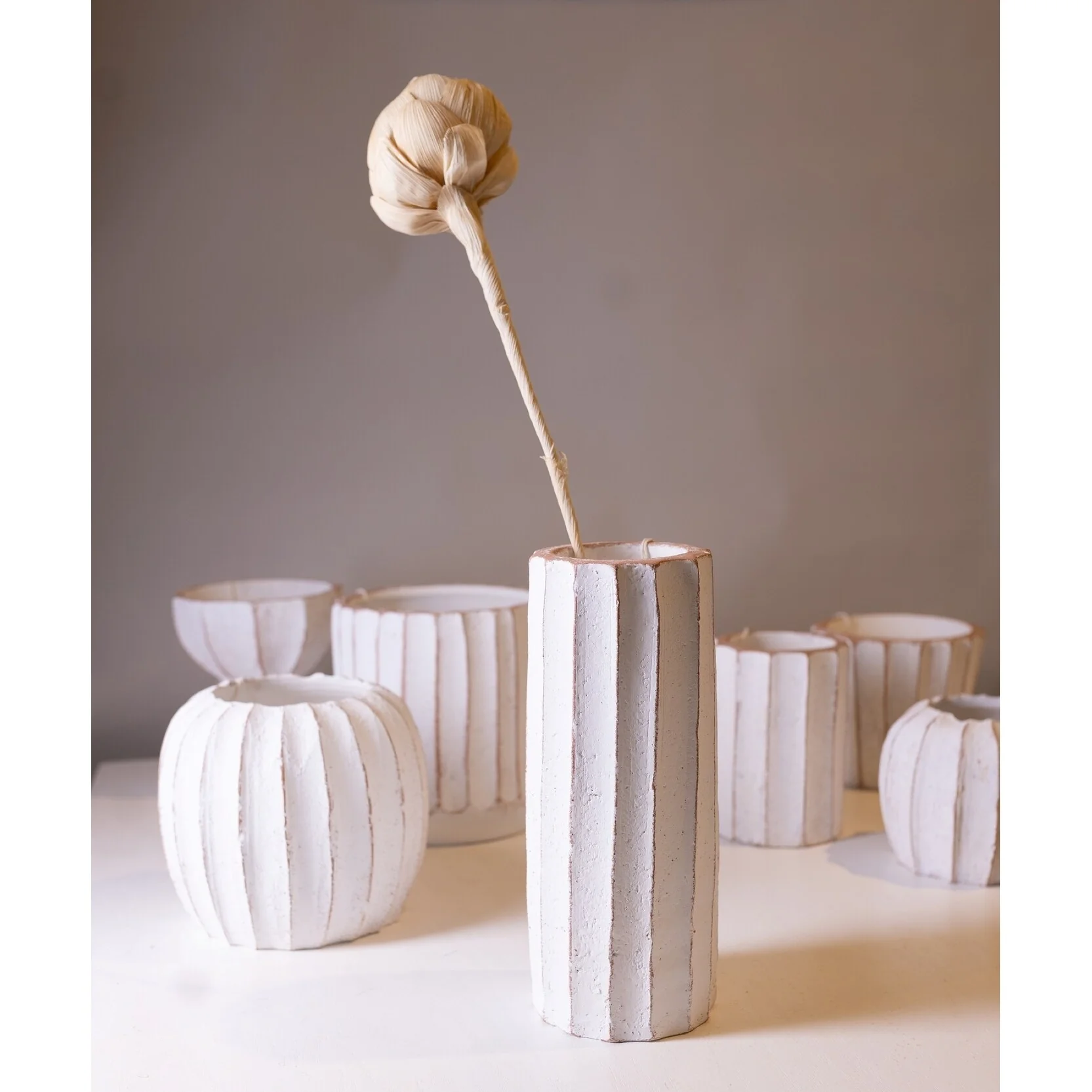 Rustic Fluted Pot Planter - 20" - White