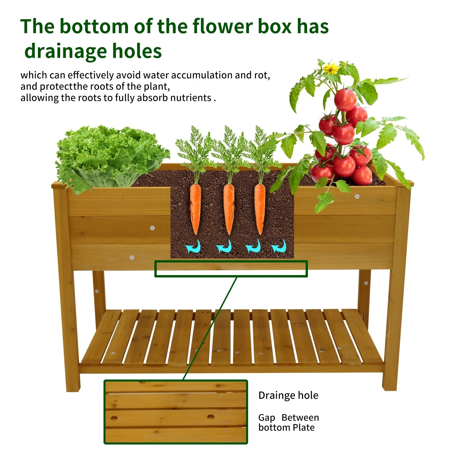 Outdoor Raised Garden Bed, Wood Planter Box, Elevated Planters Box