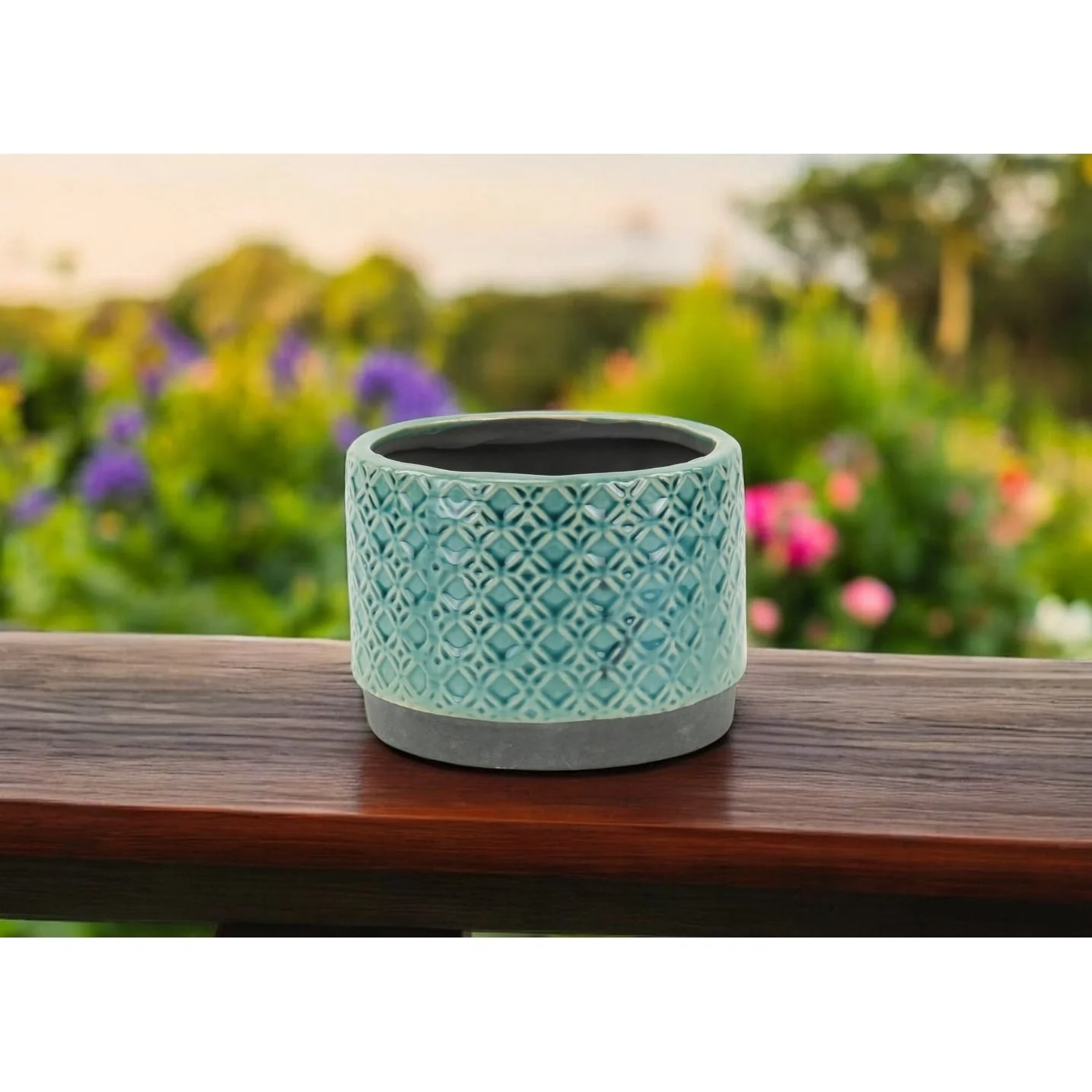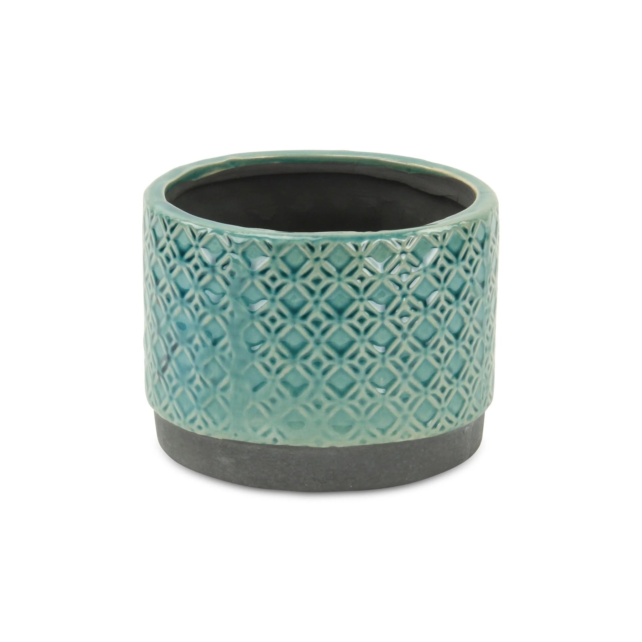 HomeRoots 7" Turquoise Geometric Ceramic Indoor Outdoor Round Pot Planter
