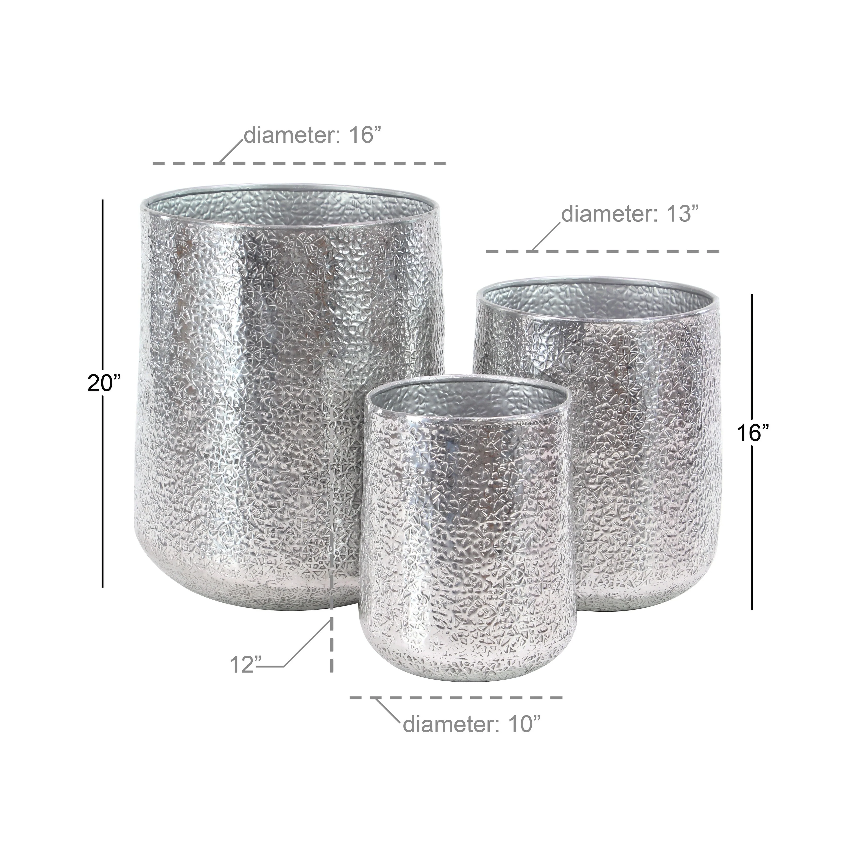 Aluminum Metal Indoor Outdoor Planter with Hammered Design - Set of 3 Silver or Gold - Roche River Decor