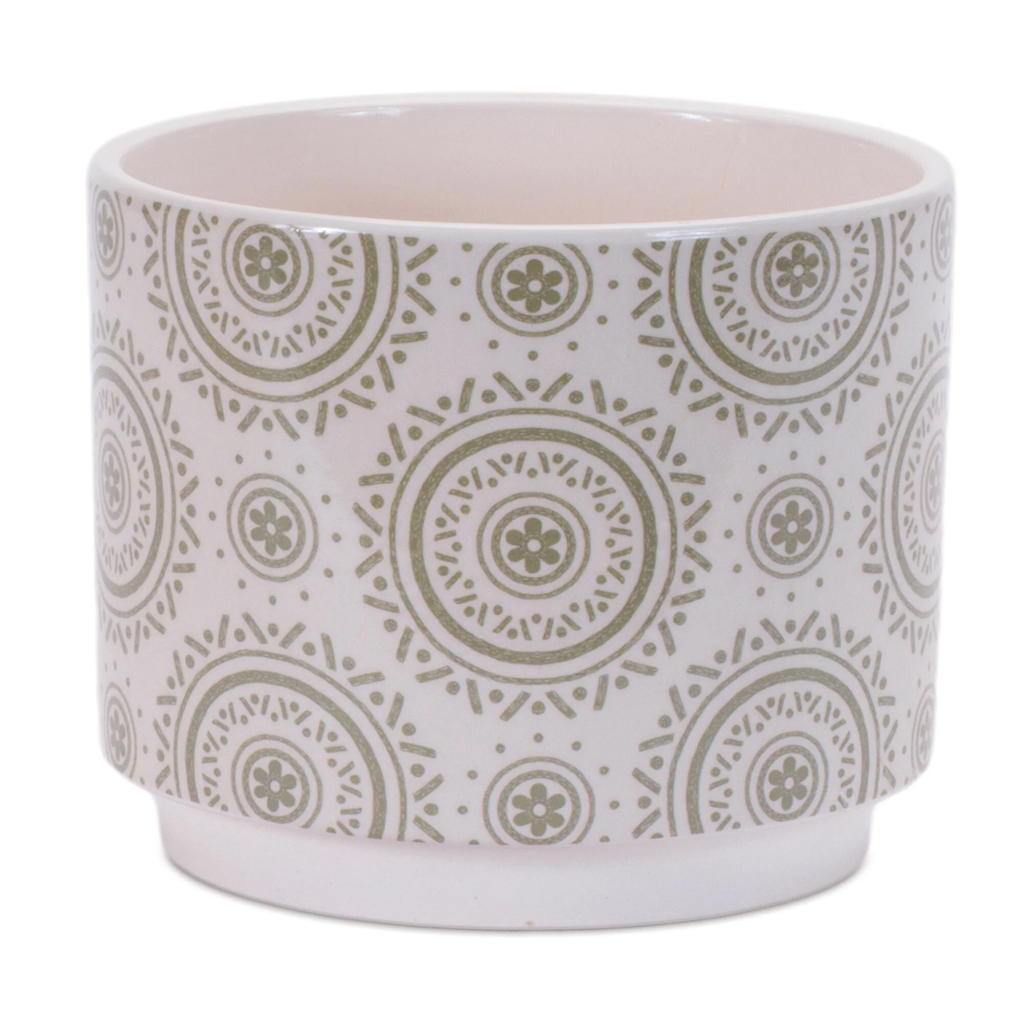 Floral and Mandala Dolomite Planters - 5" - White - Set of 3
