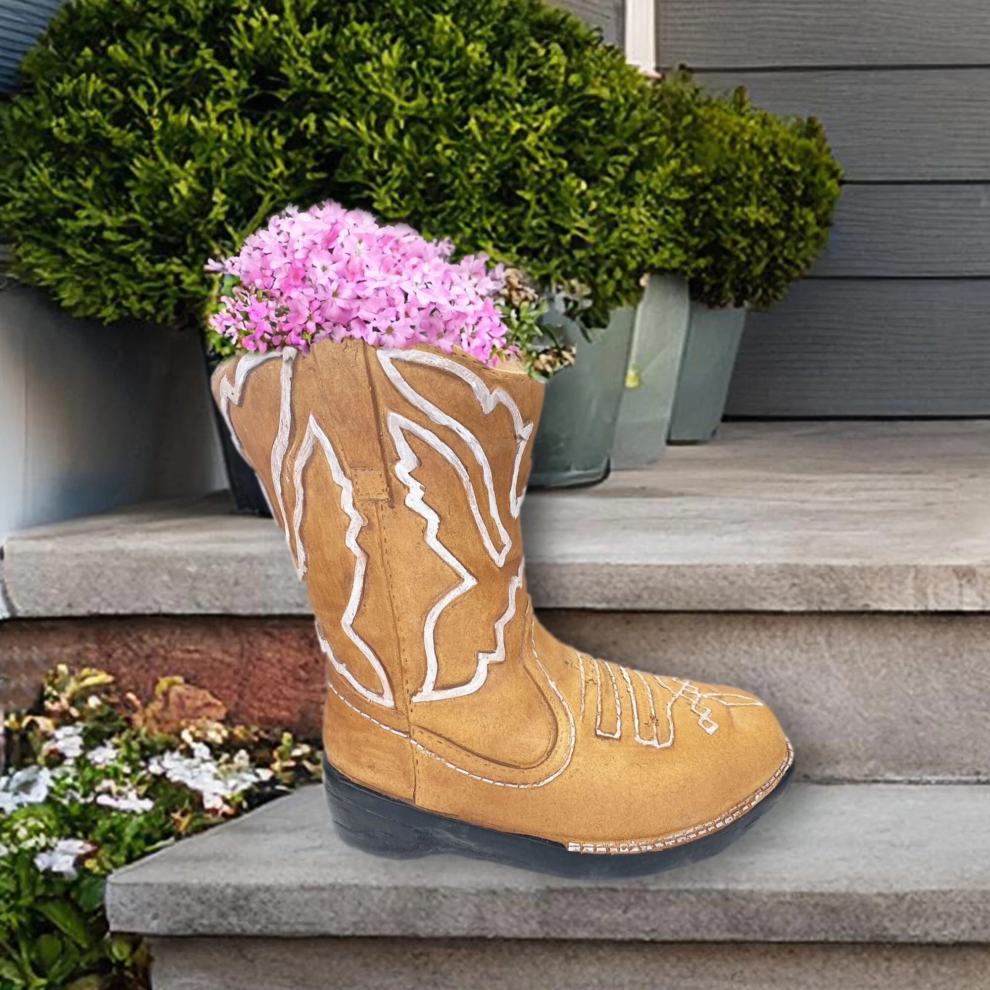 12" Cold Cast Brown Cowboy Boot Planter