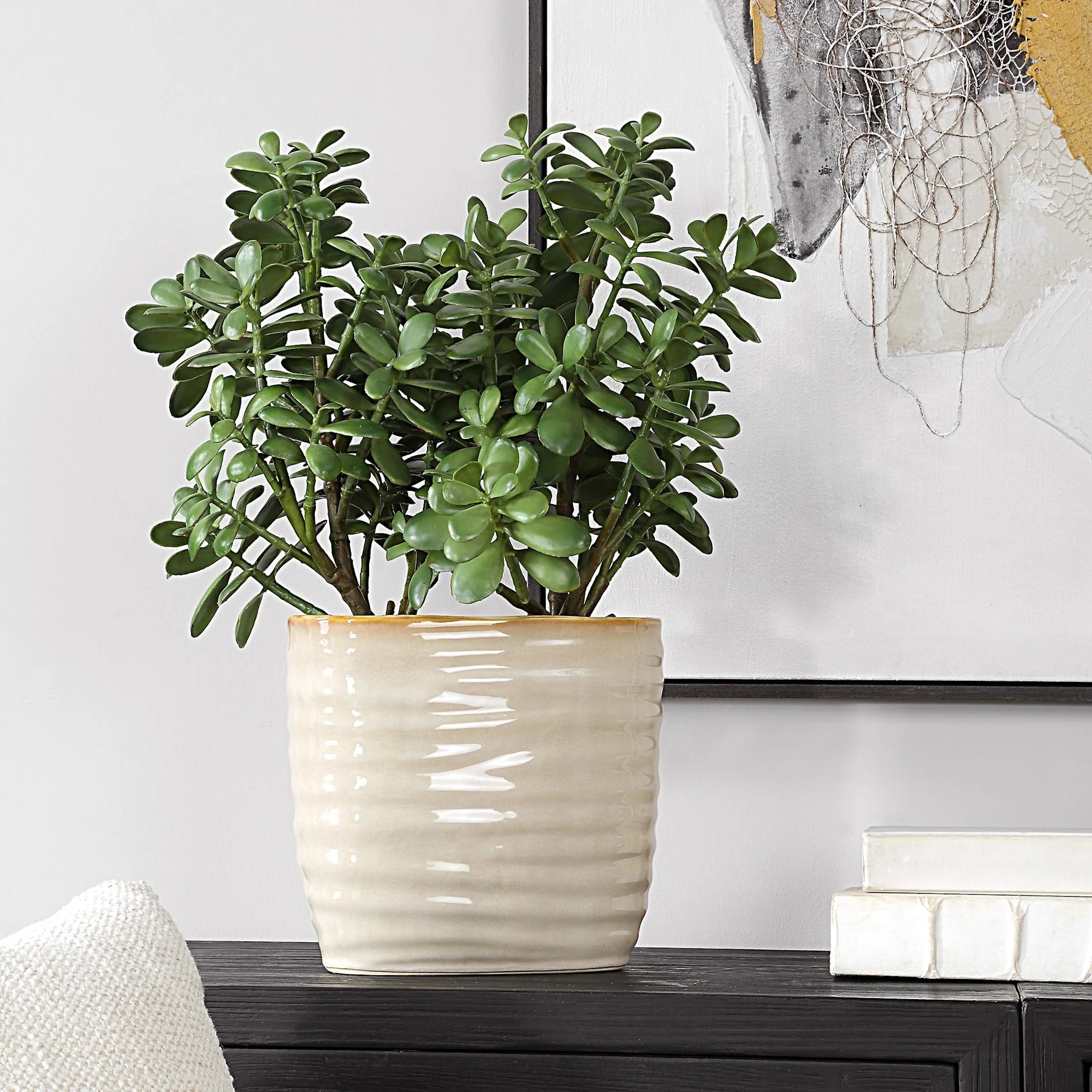 Uttermost 60226 Crassula Jade 23-1/2" Tall Ceramic Faux Flora Planter - Tan