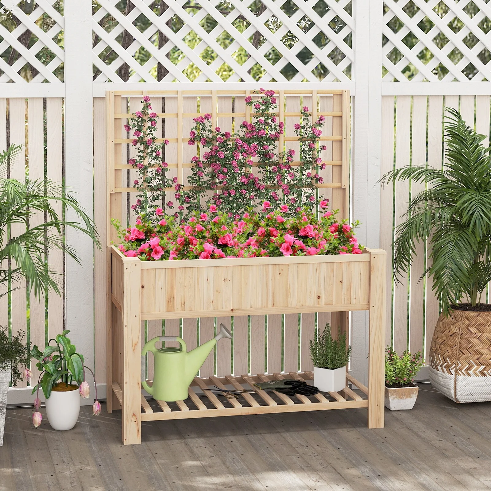 Gymax Raised Garden Bed w/ Trellis Wooden Elevated Planter Box w/ Legs