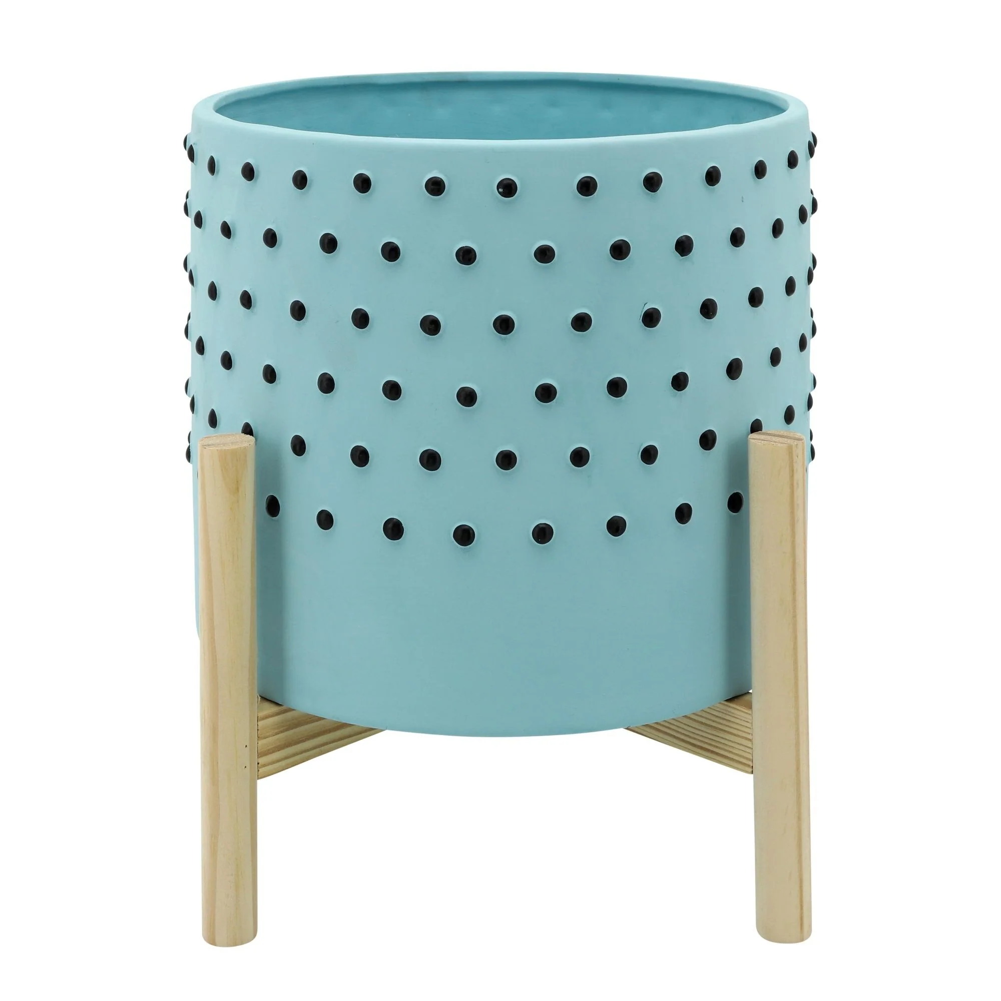 Ceramic Polka Dot Planter with Stand - 10" - Blue