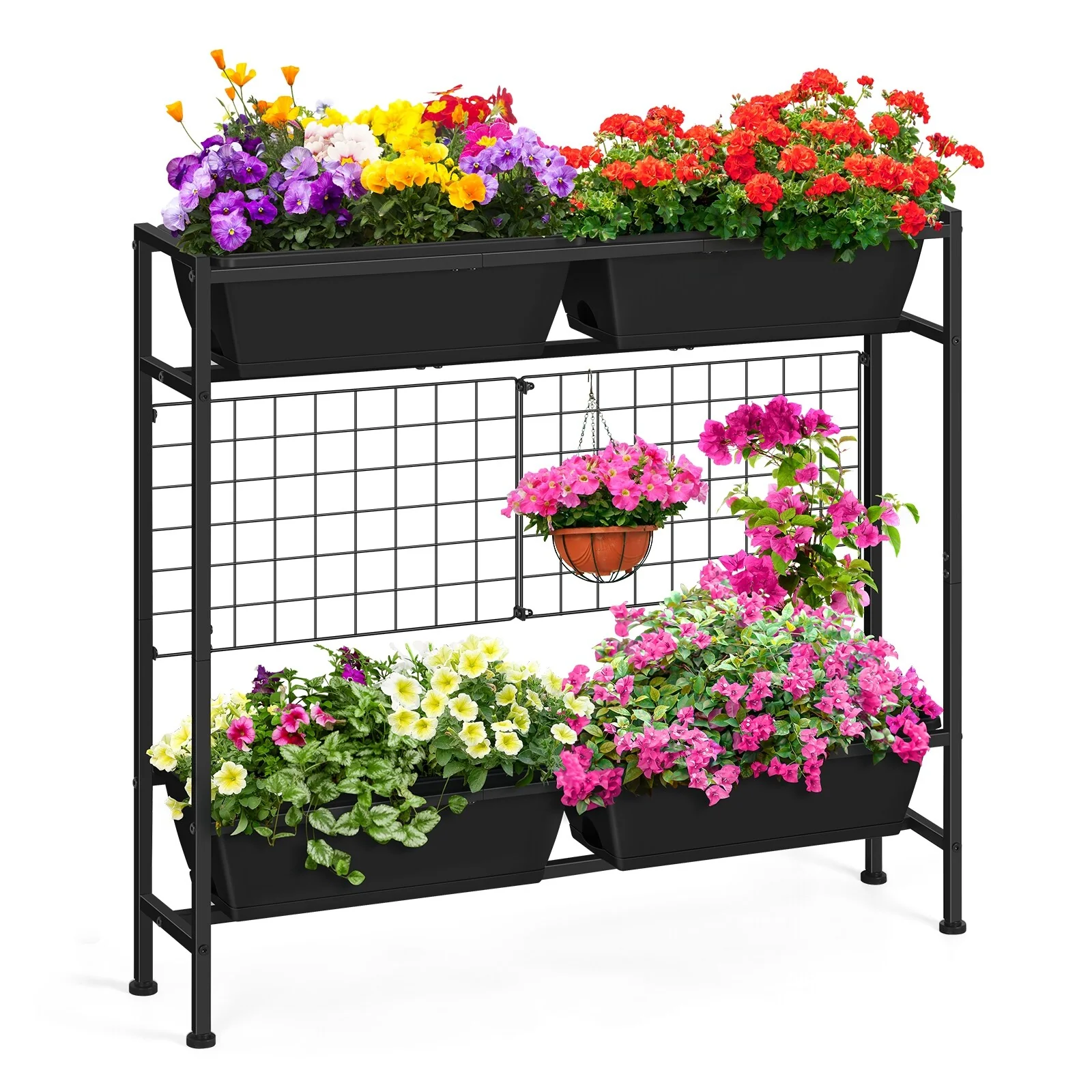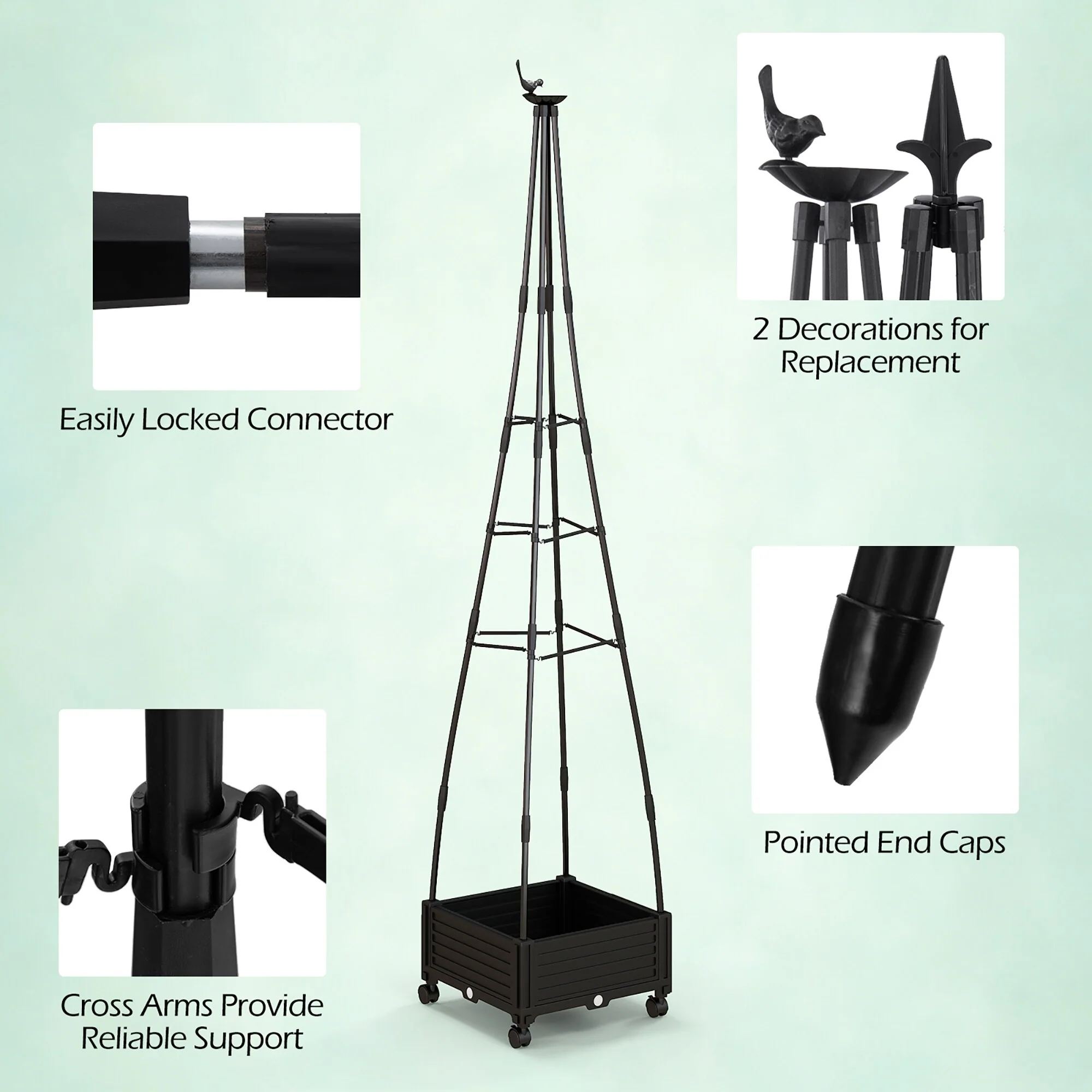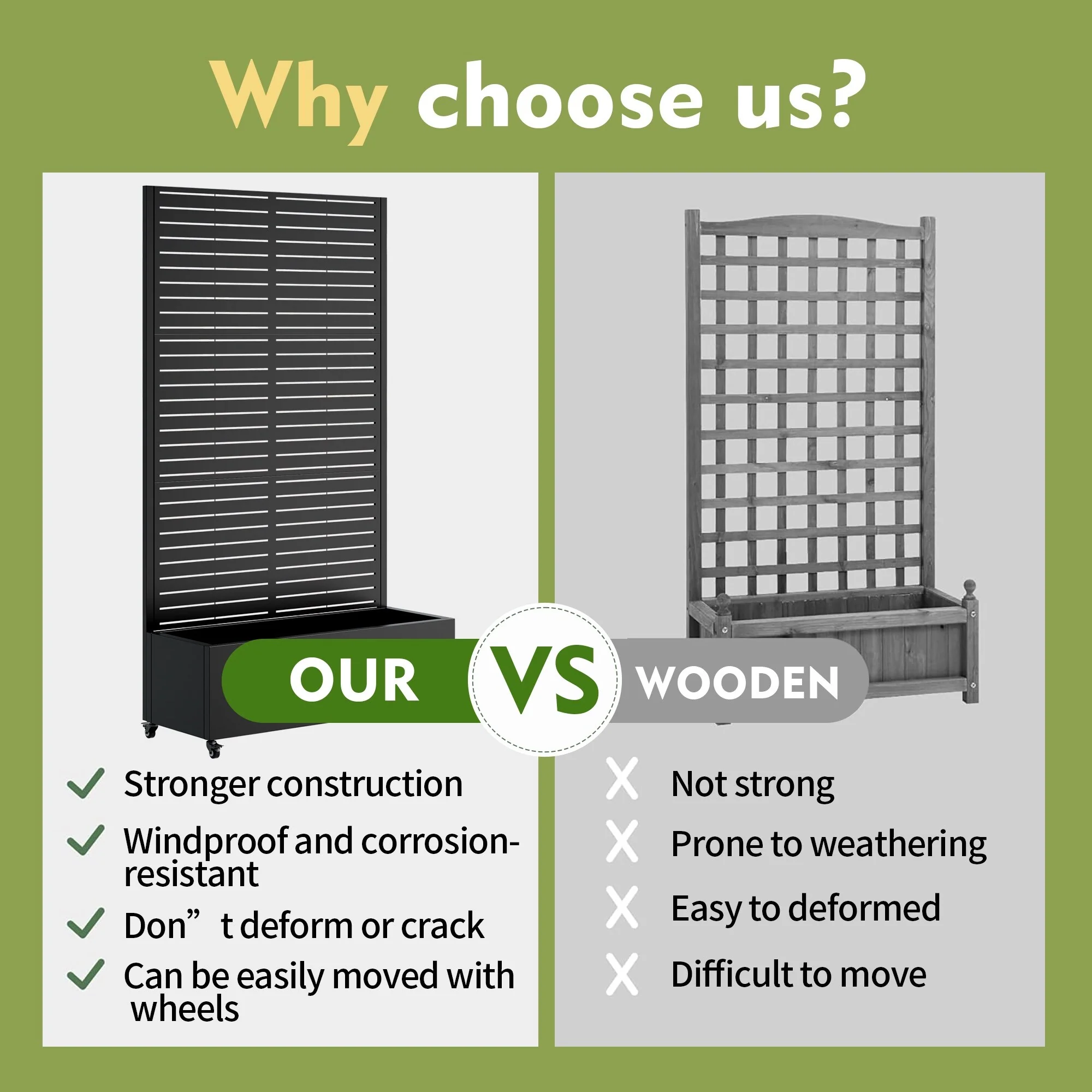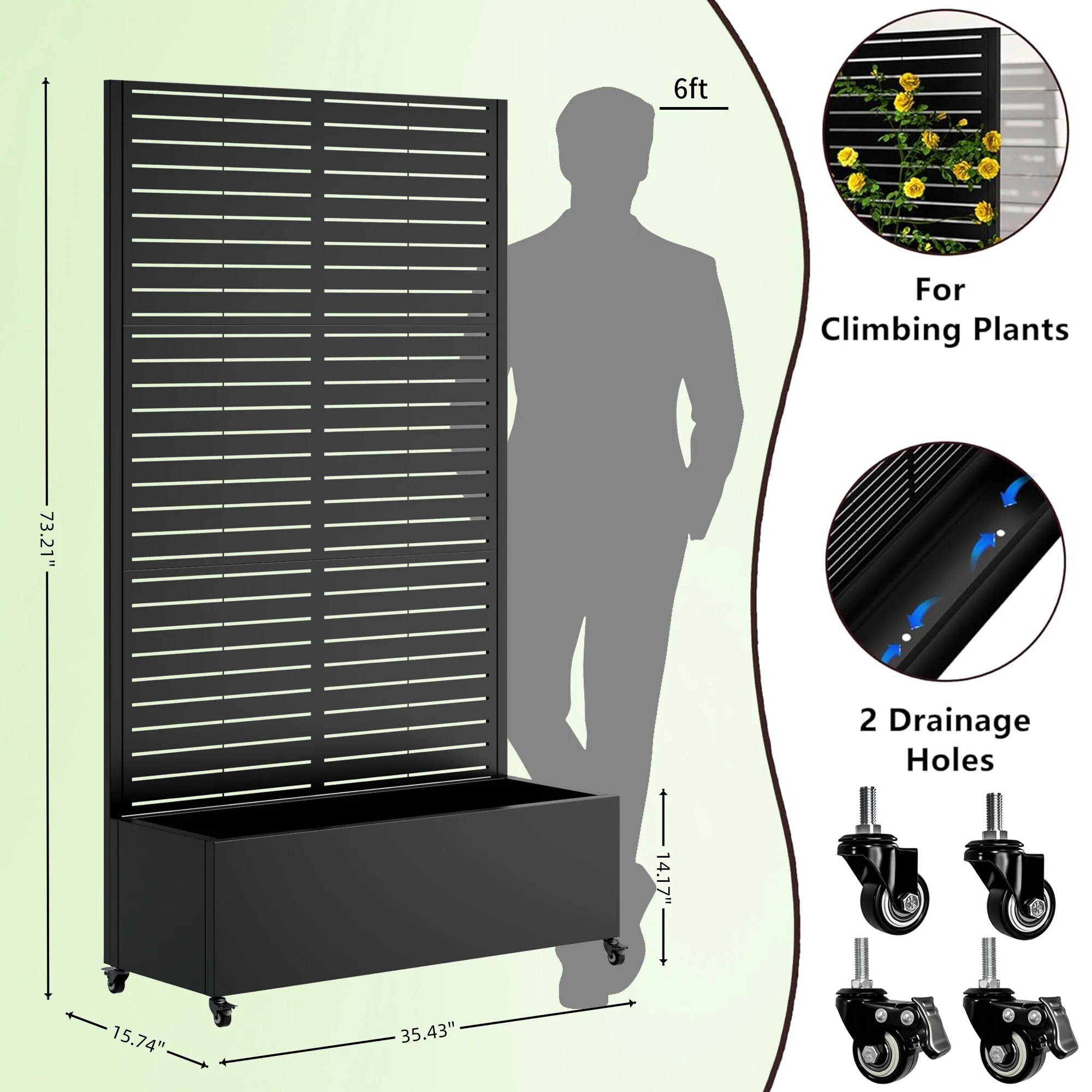 Metal Planter Box with Trellis Raised Garden Bed with 4 wheelsTrellis & Privacy Screen for Climbing Plants, Vegetables, Vines