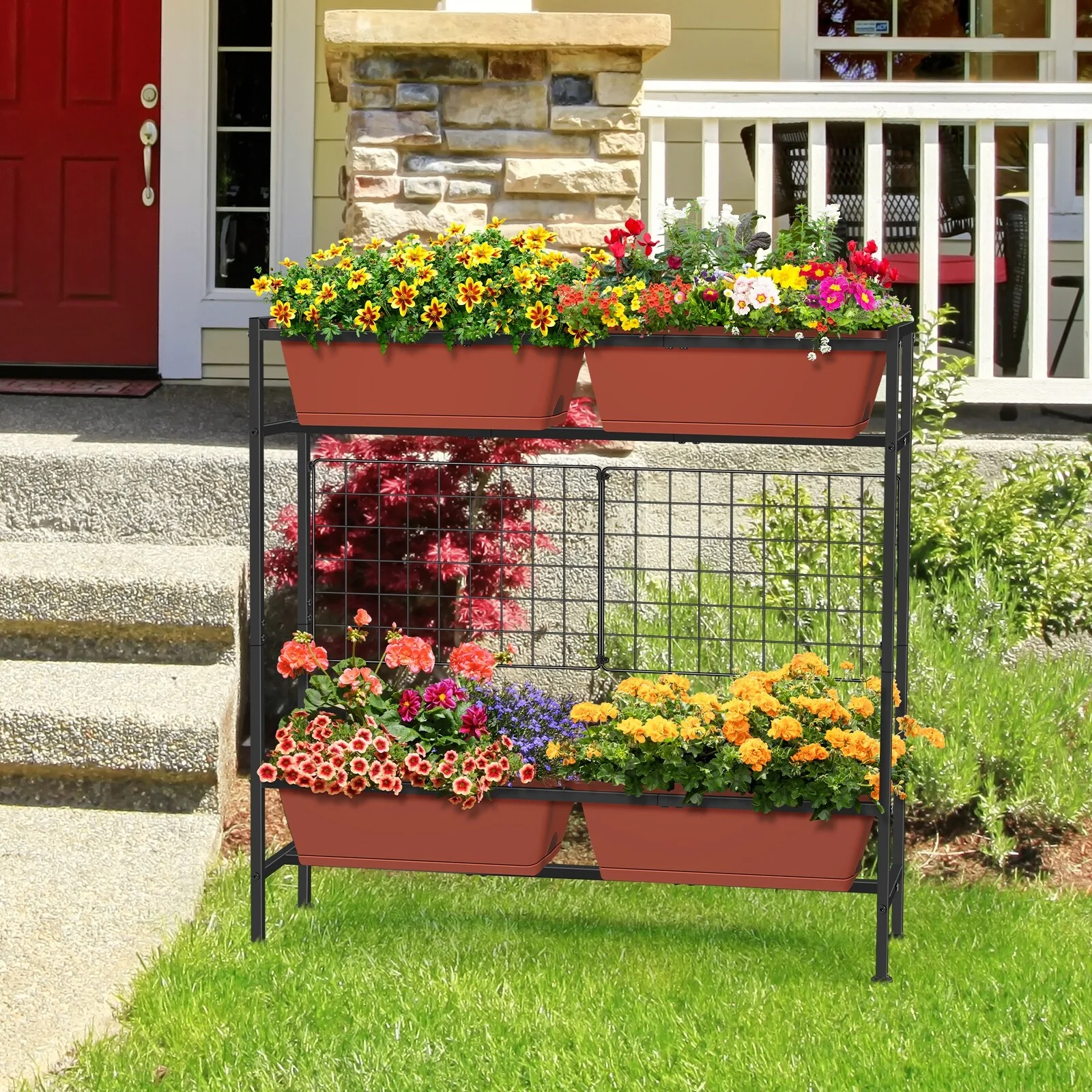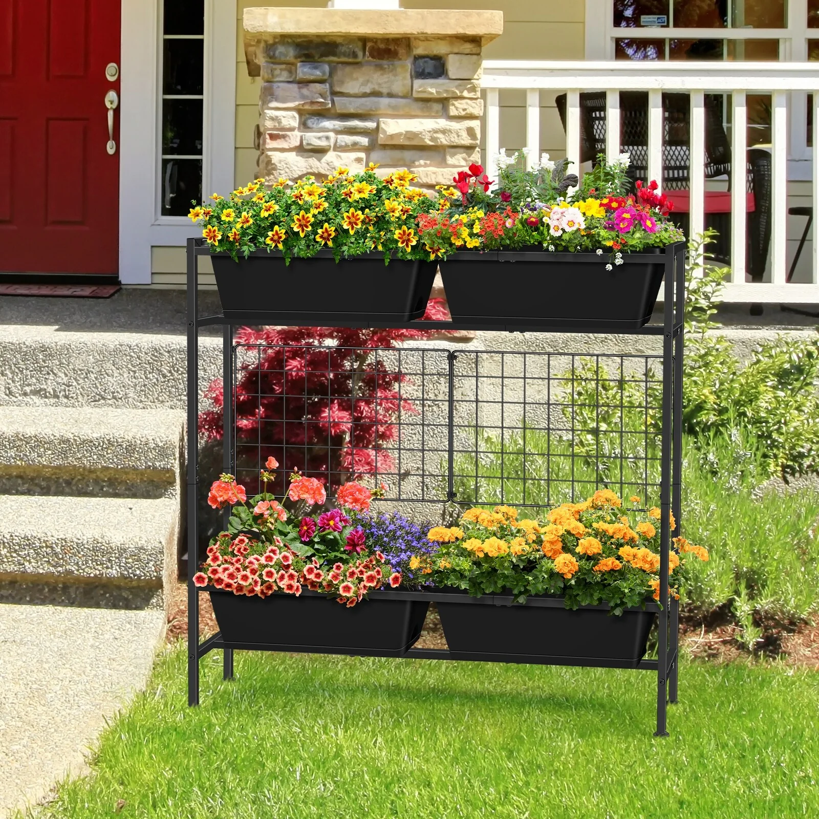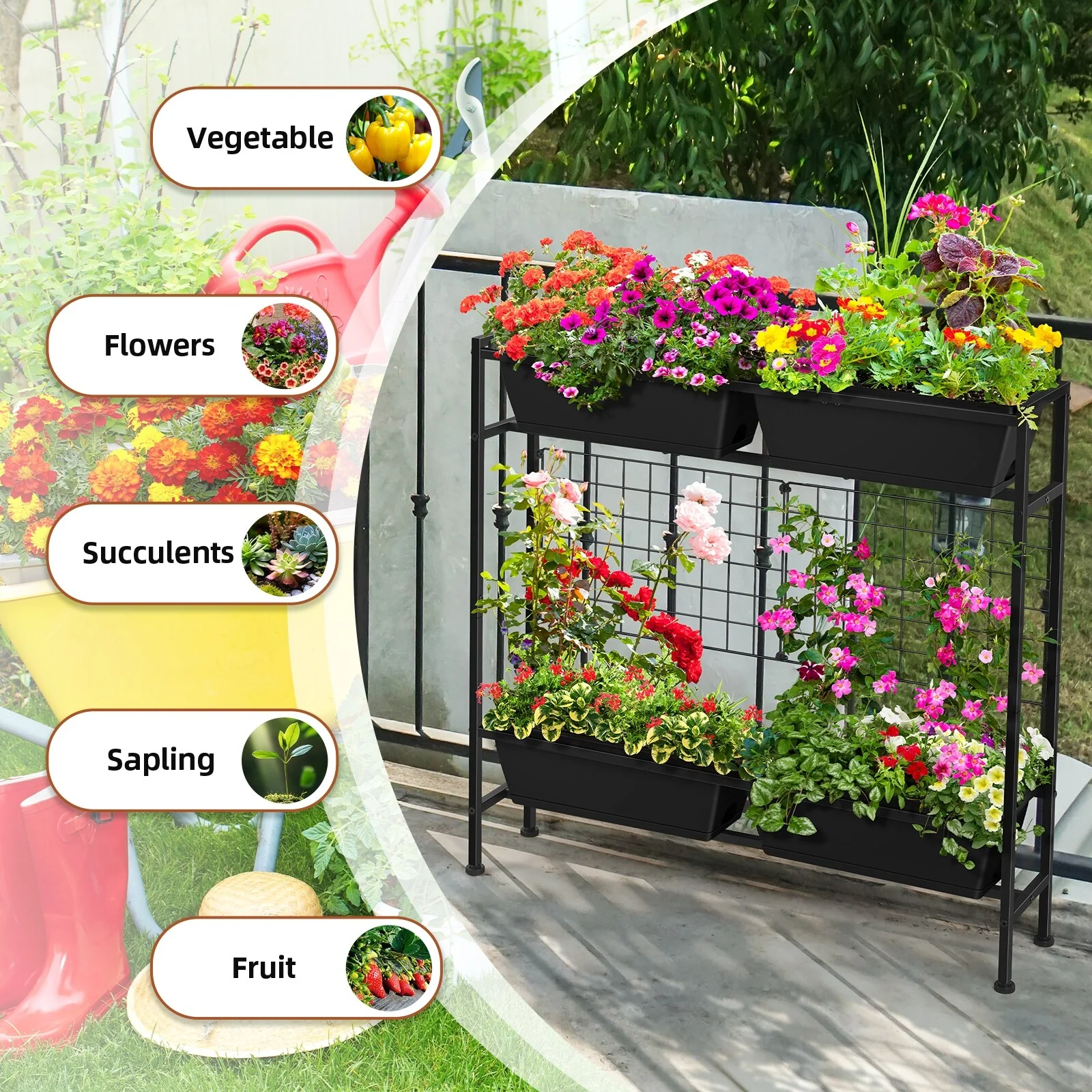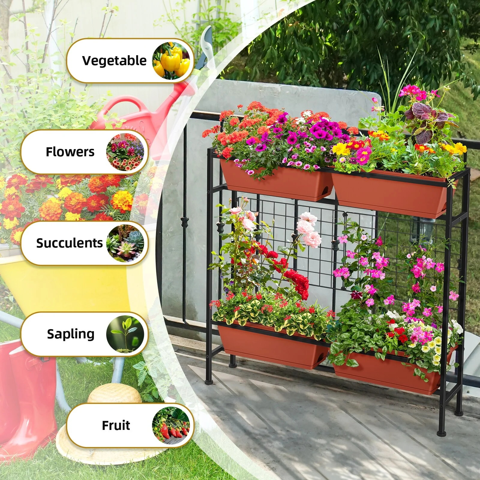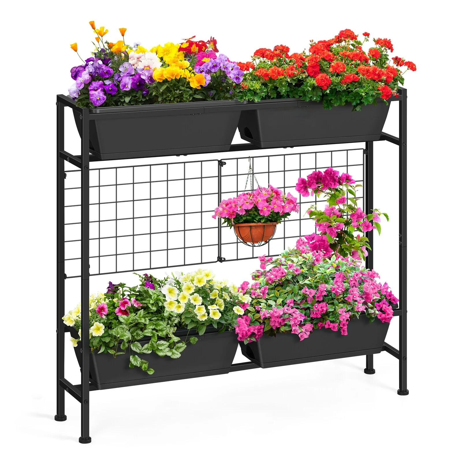 Metal Planter Box with Trellis Raised Garden Bed with 4 wheelsTrellis & Privacy Screen for Climbing Plants, Vegetables, Vines