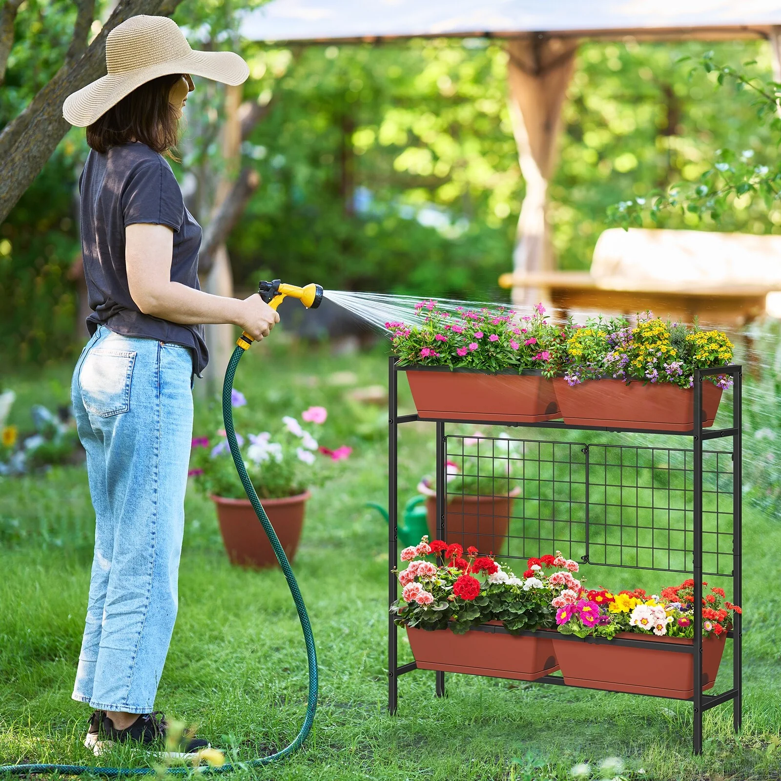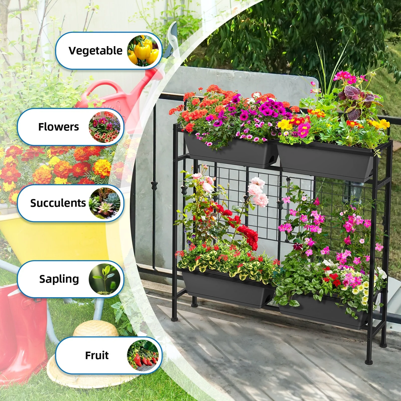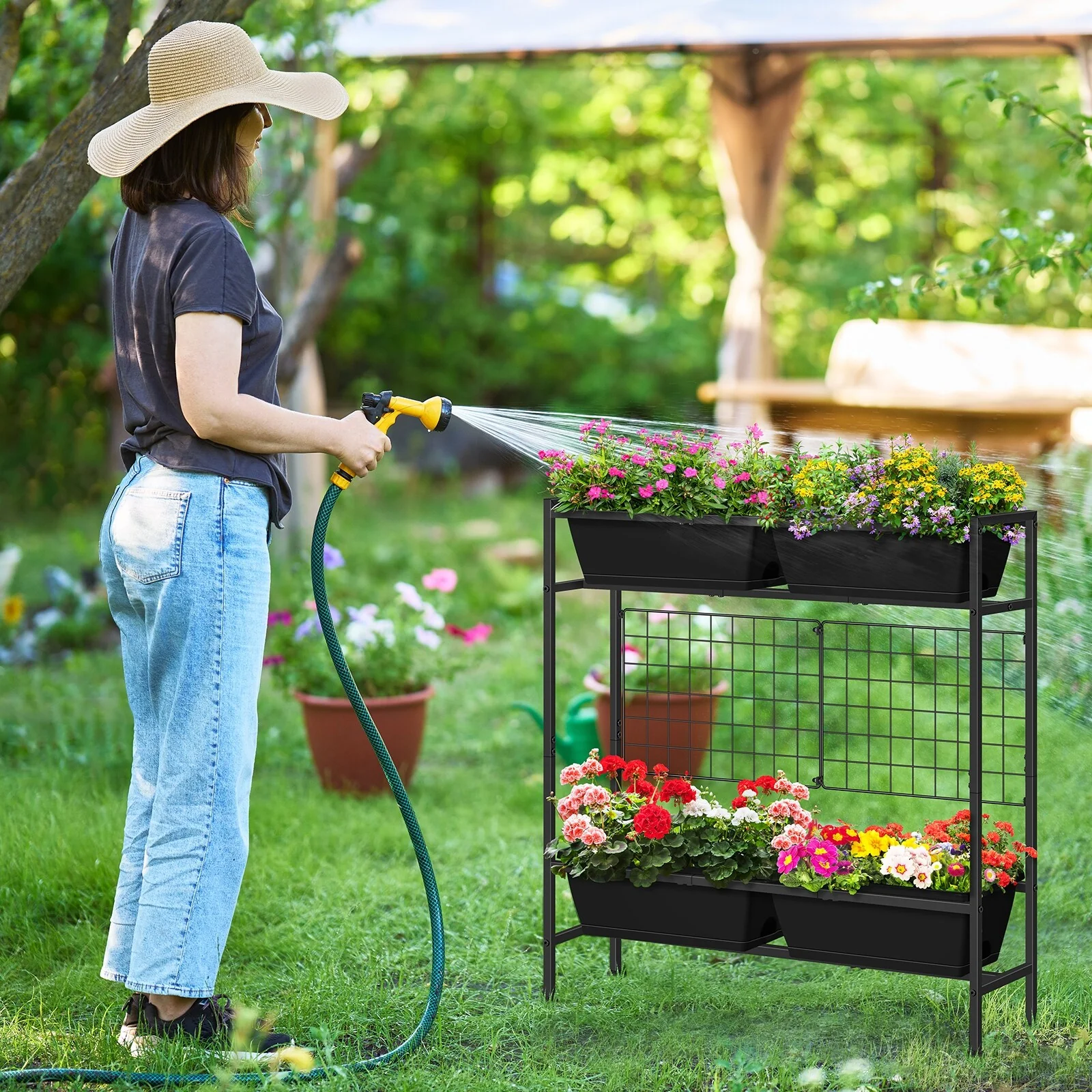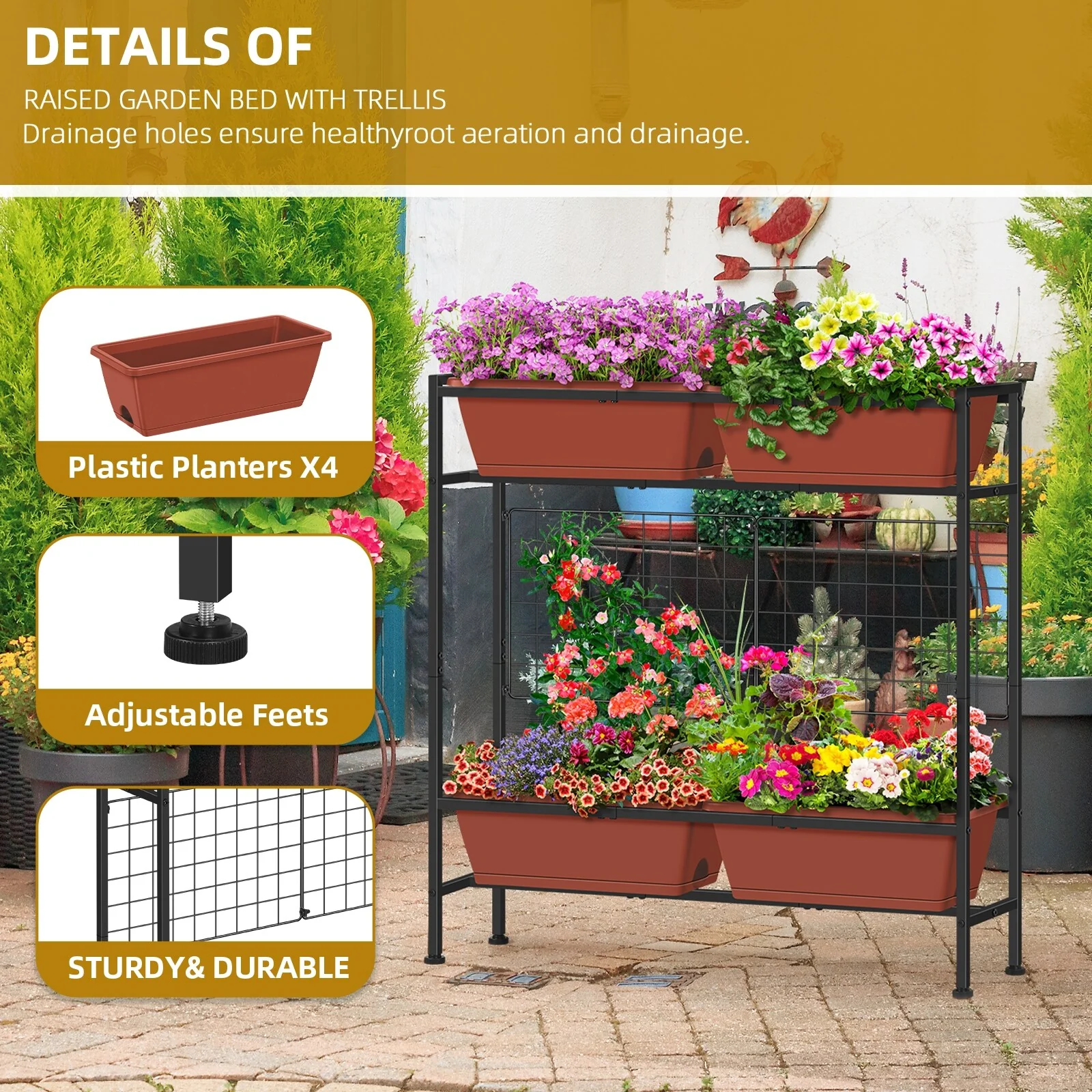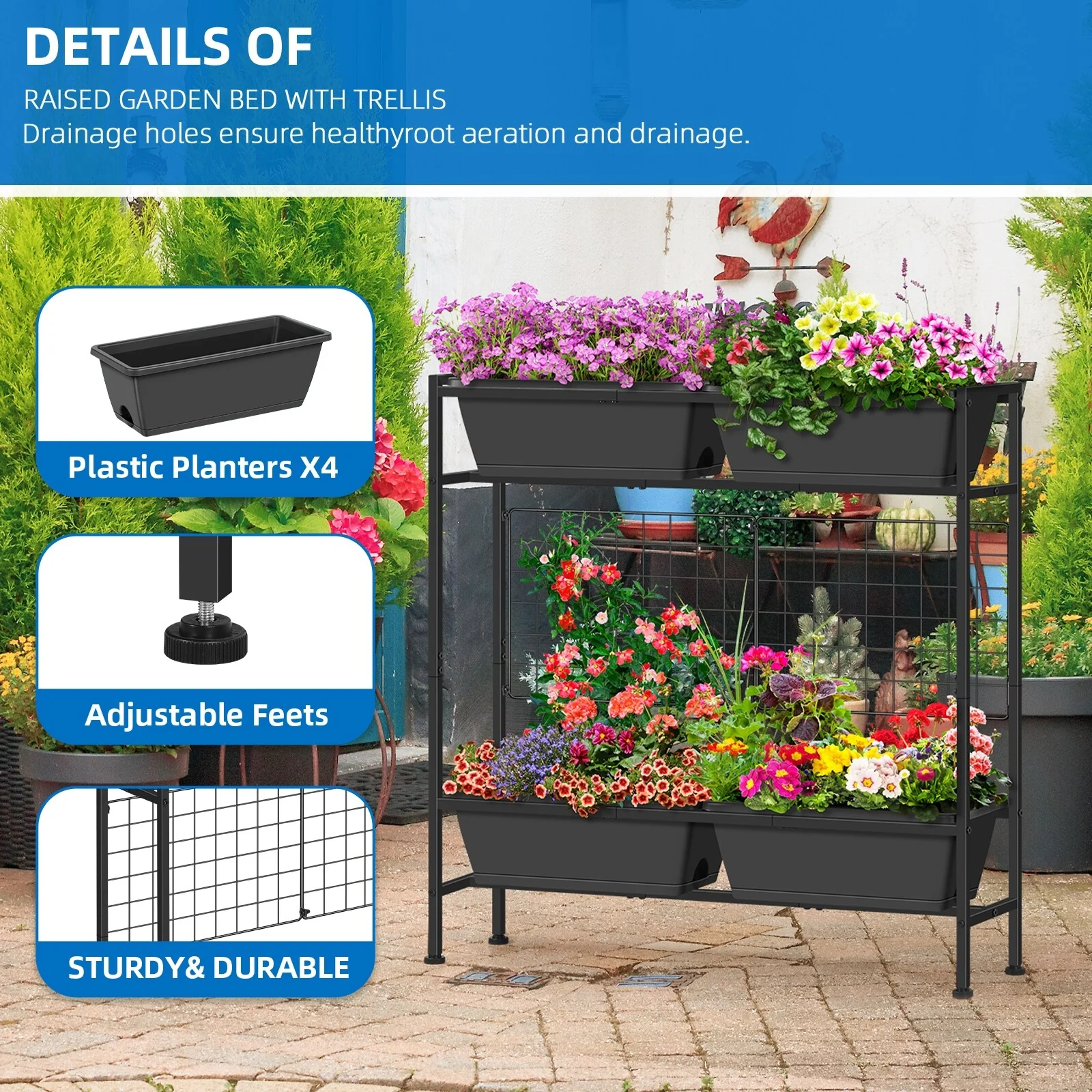 Raised Garden Beds Outdoor Elevated Garden Planter Boxes with Trellis and Legs