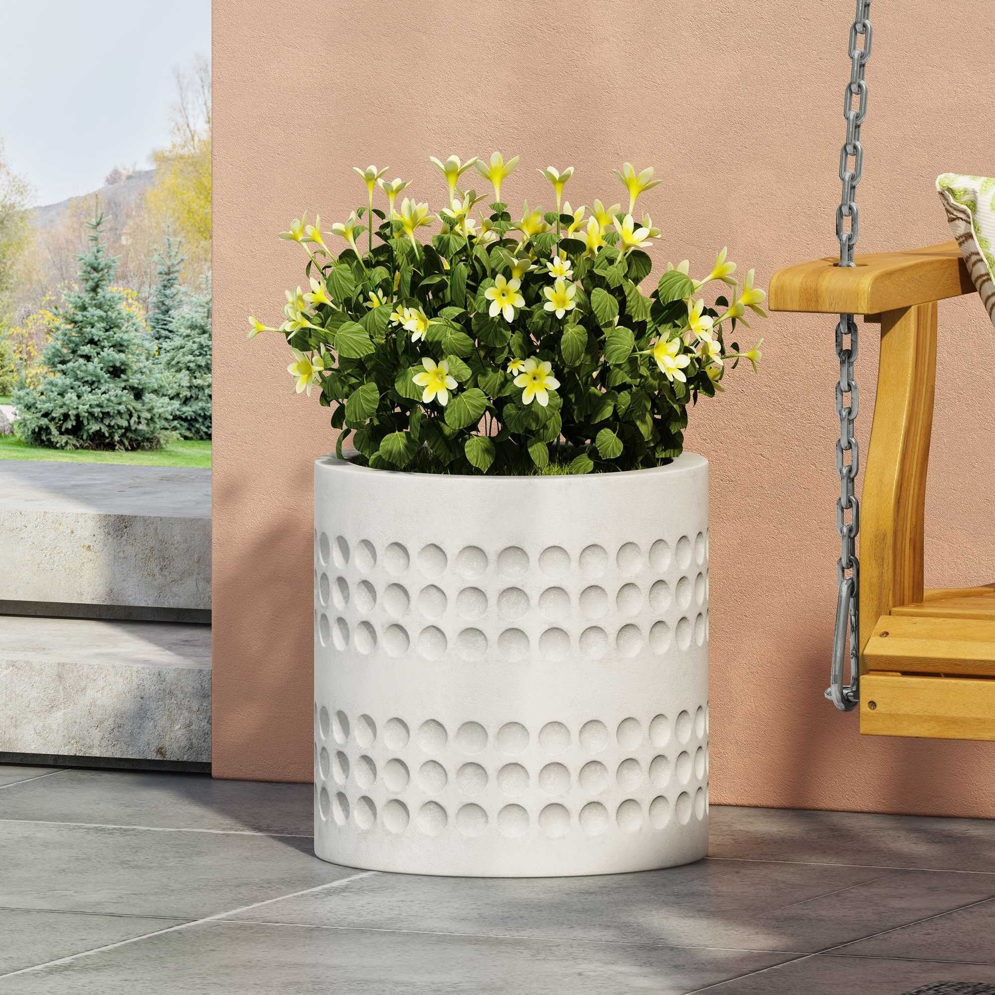 14.75''Modern White Round Flower Pot for Home Garden Decor