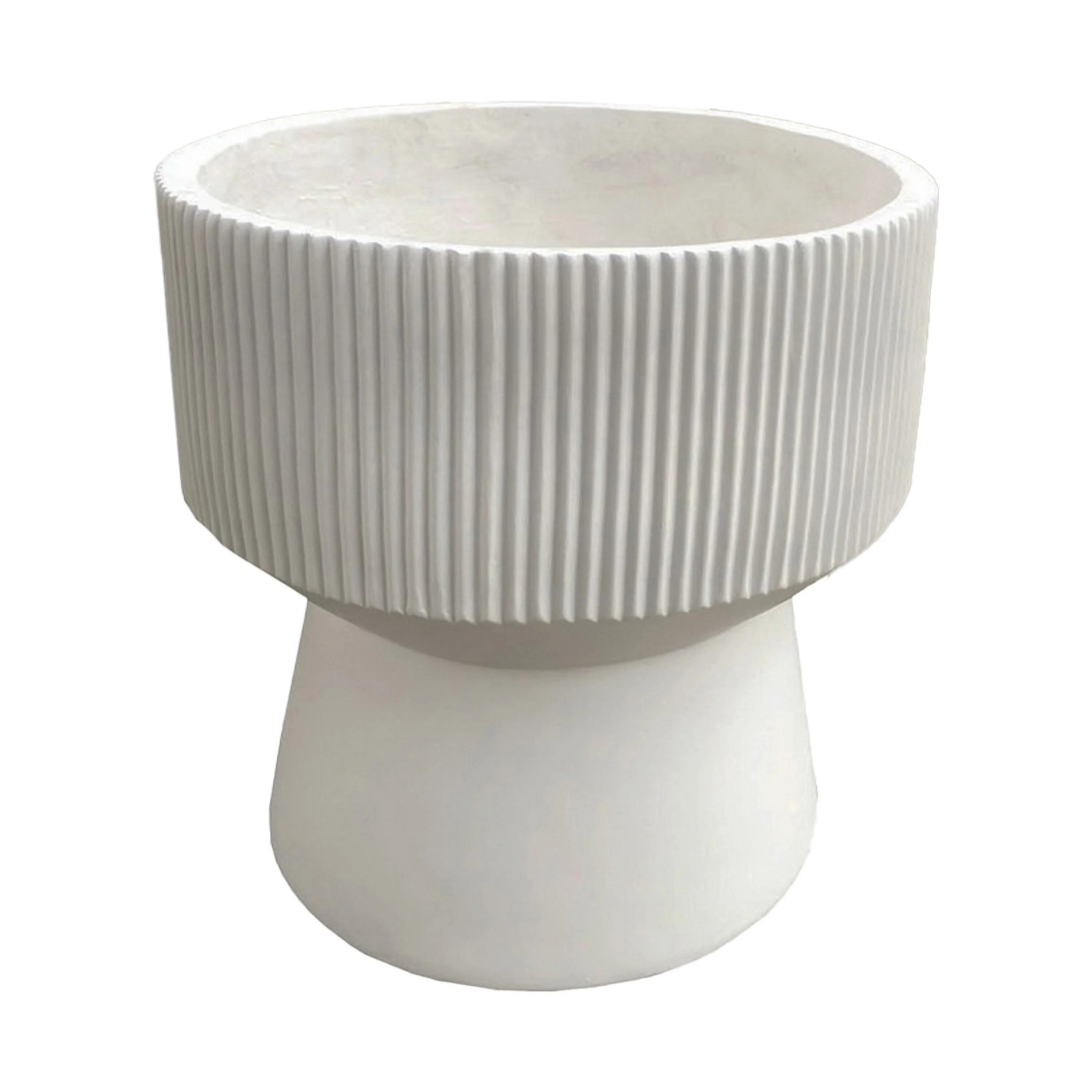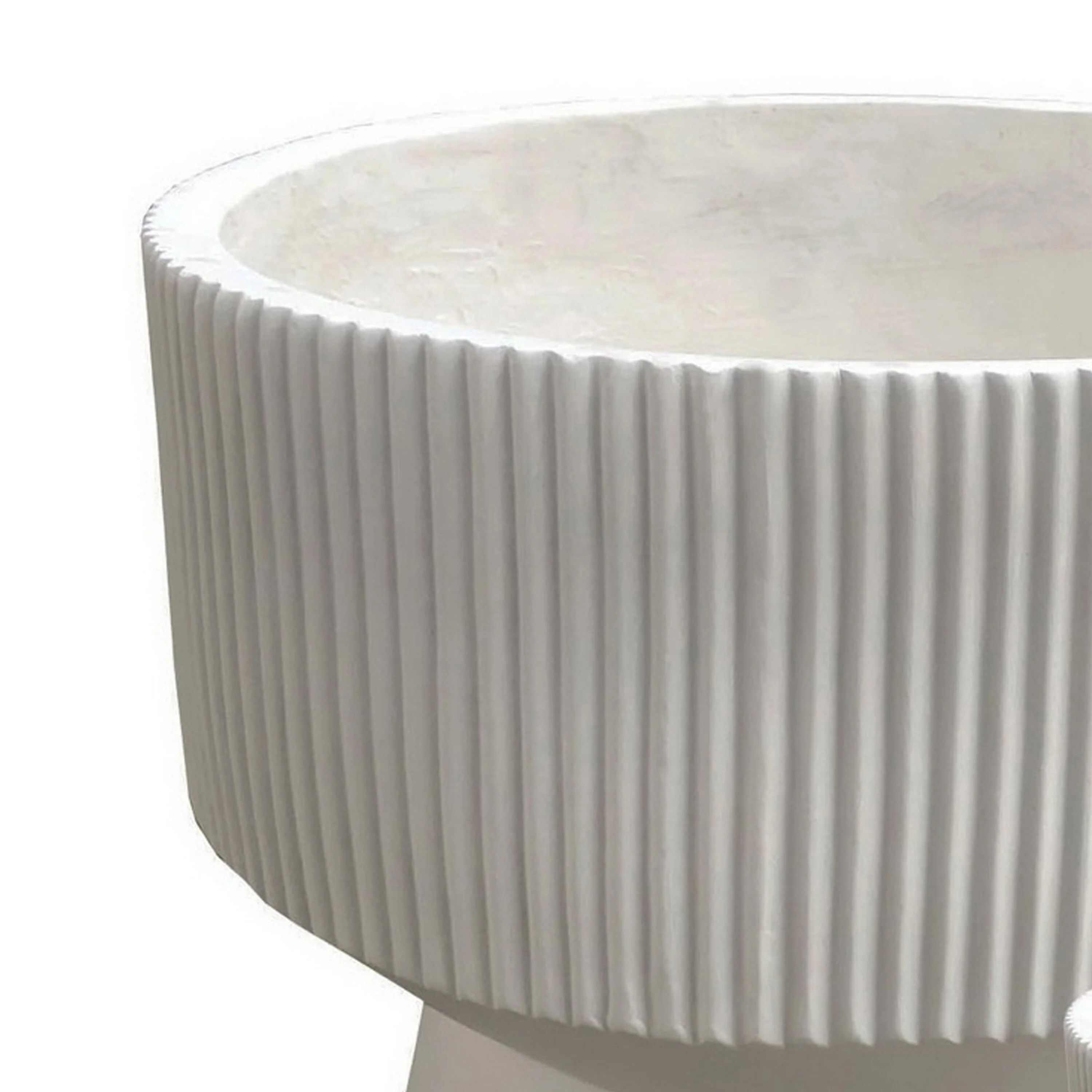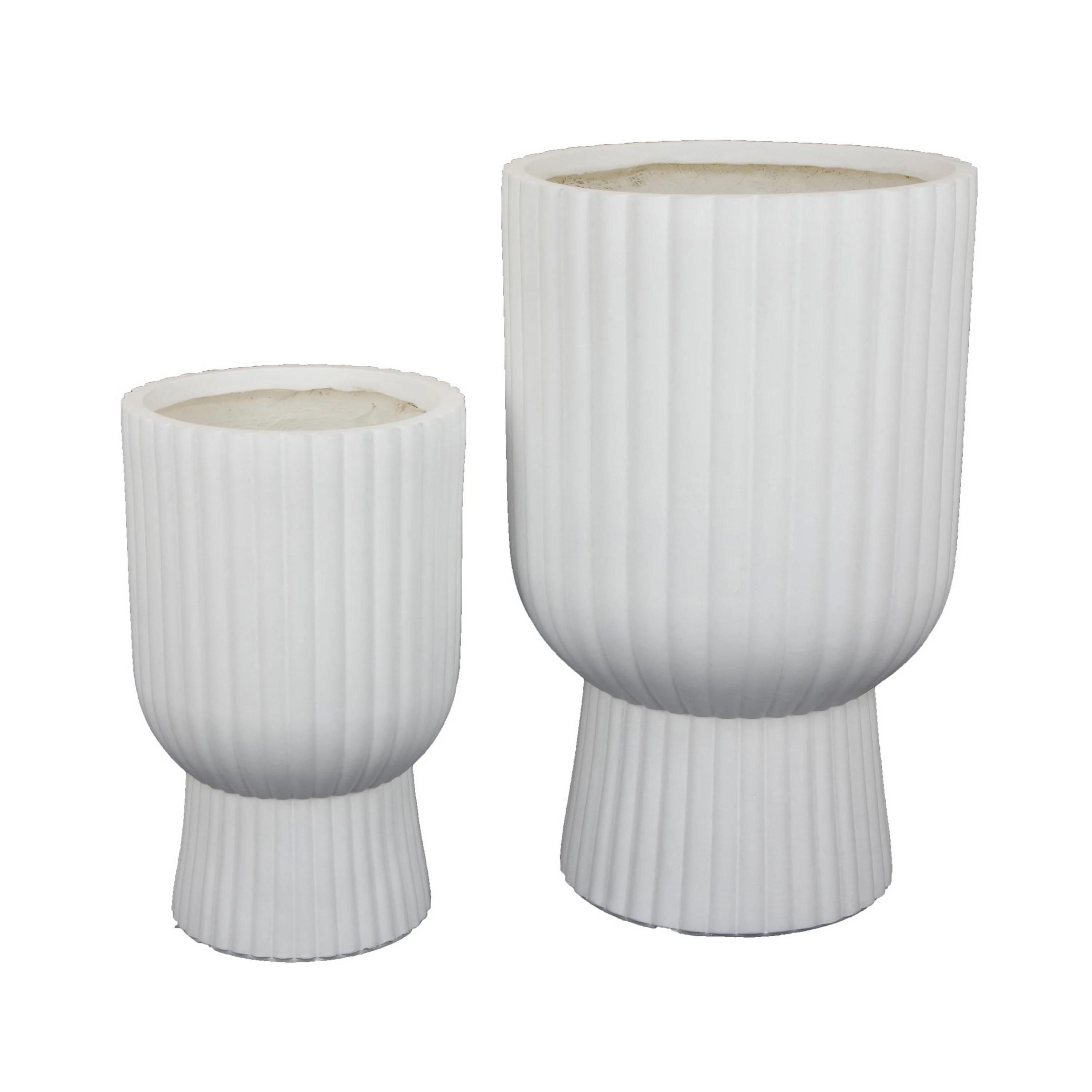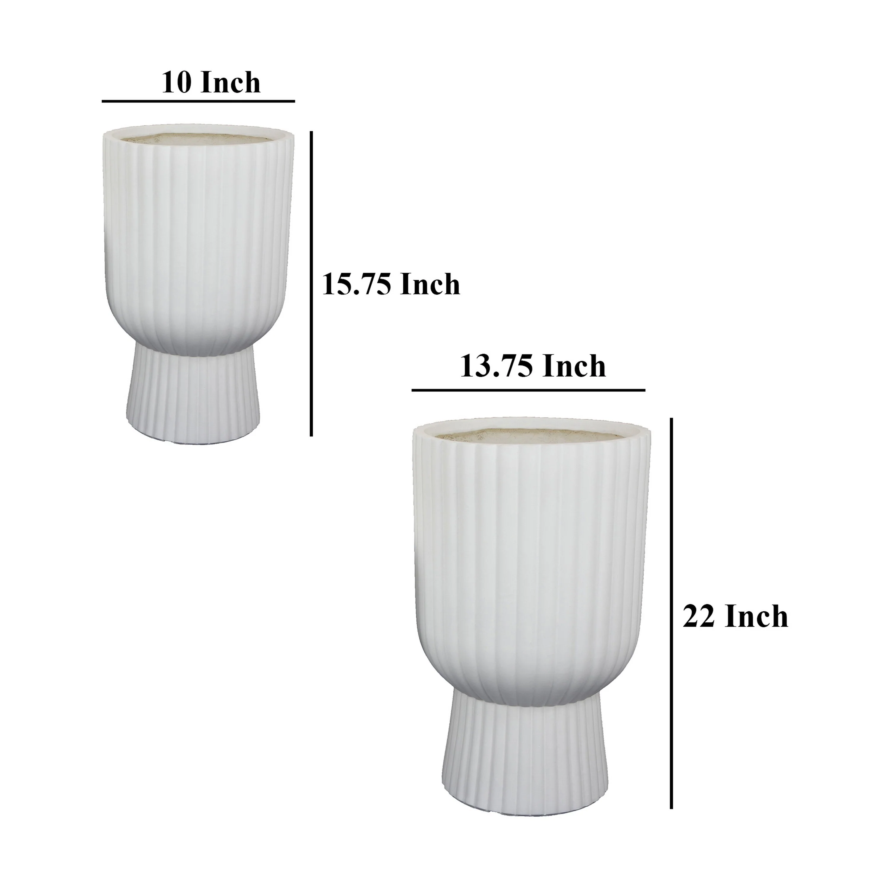 Keyan Accent Planter Set of 2, White Resin, Ribbed Design, Narrow Base