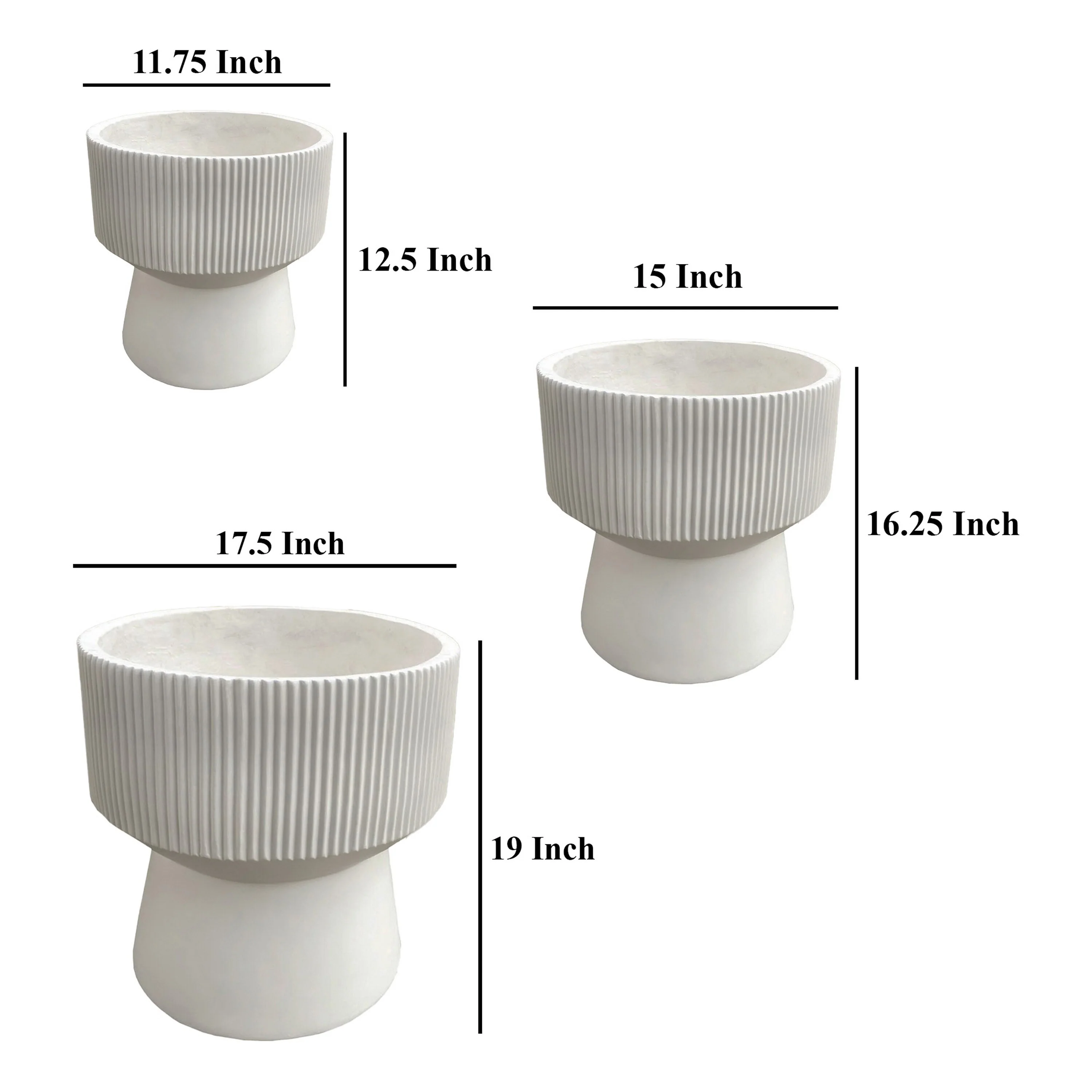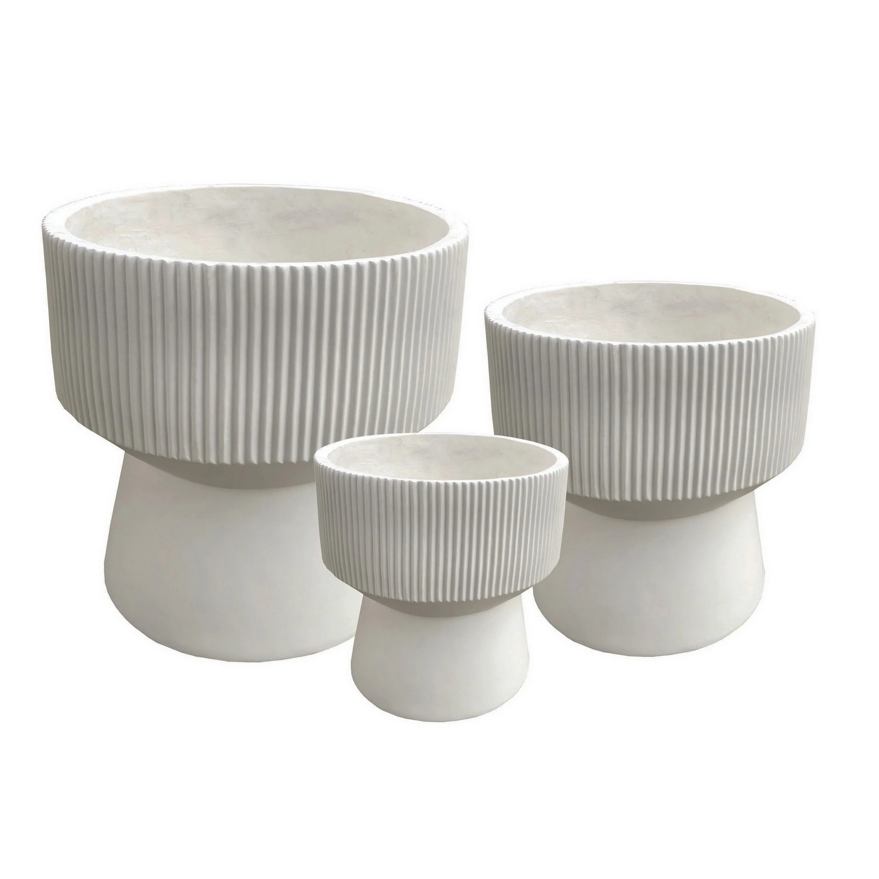 Keyan Accent Planter Set of 3, White Resin Ribbed Design, Tapered Base
