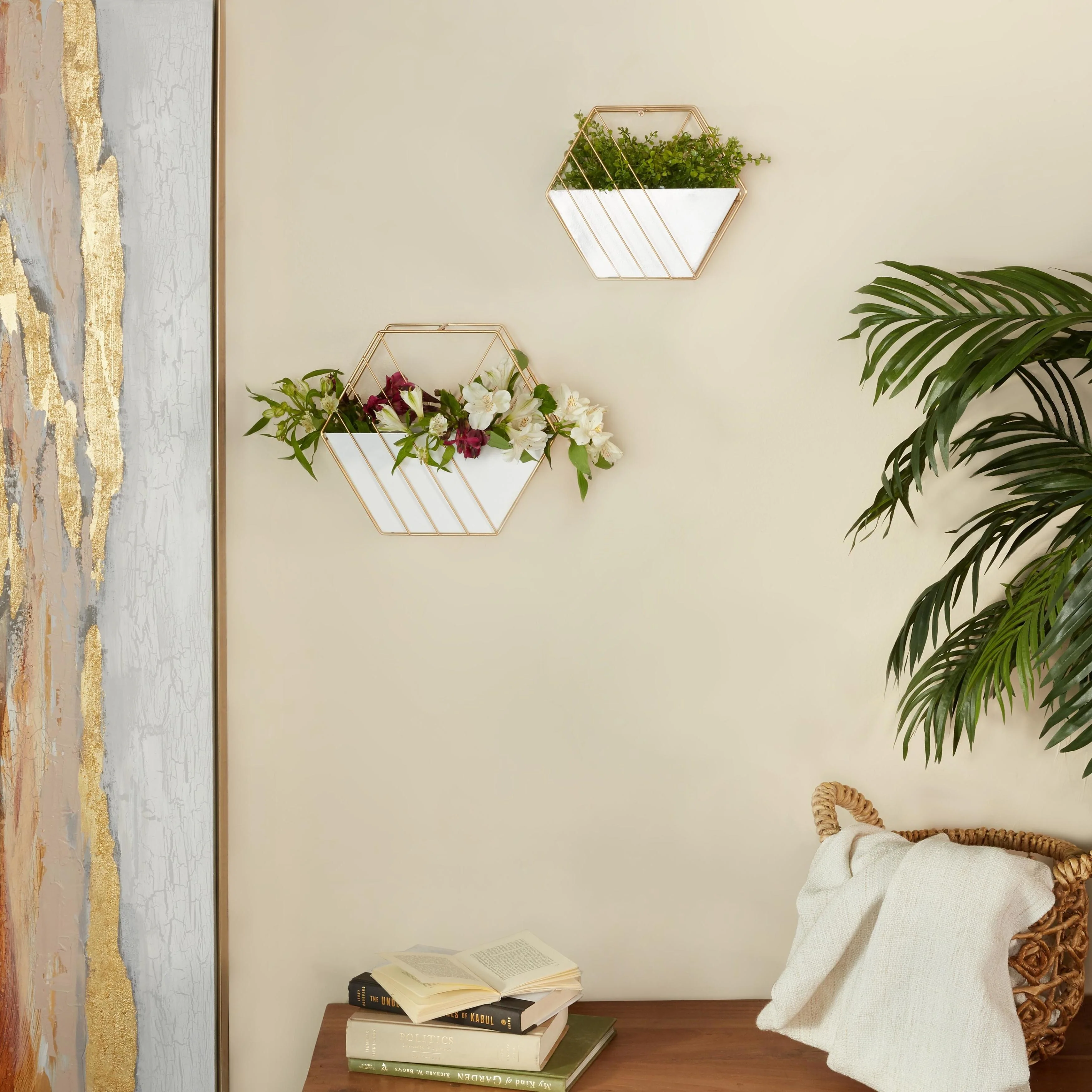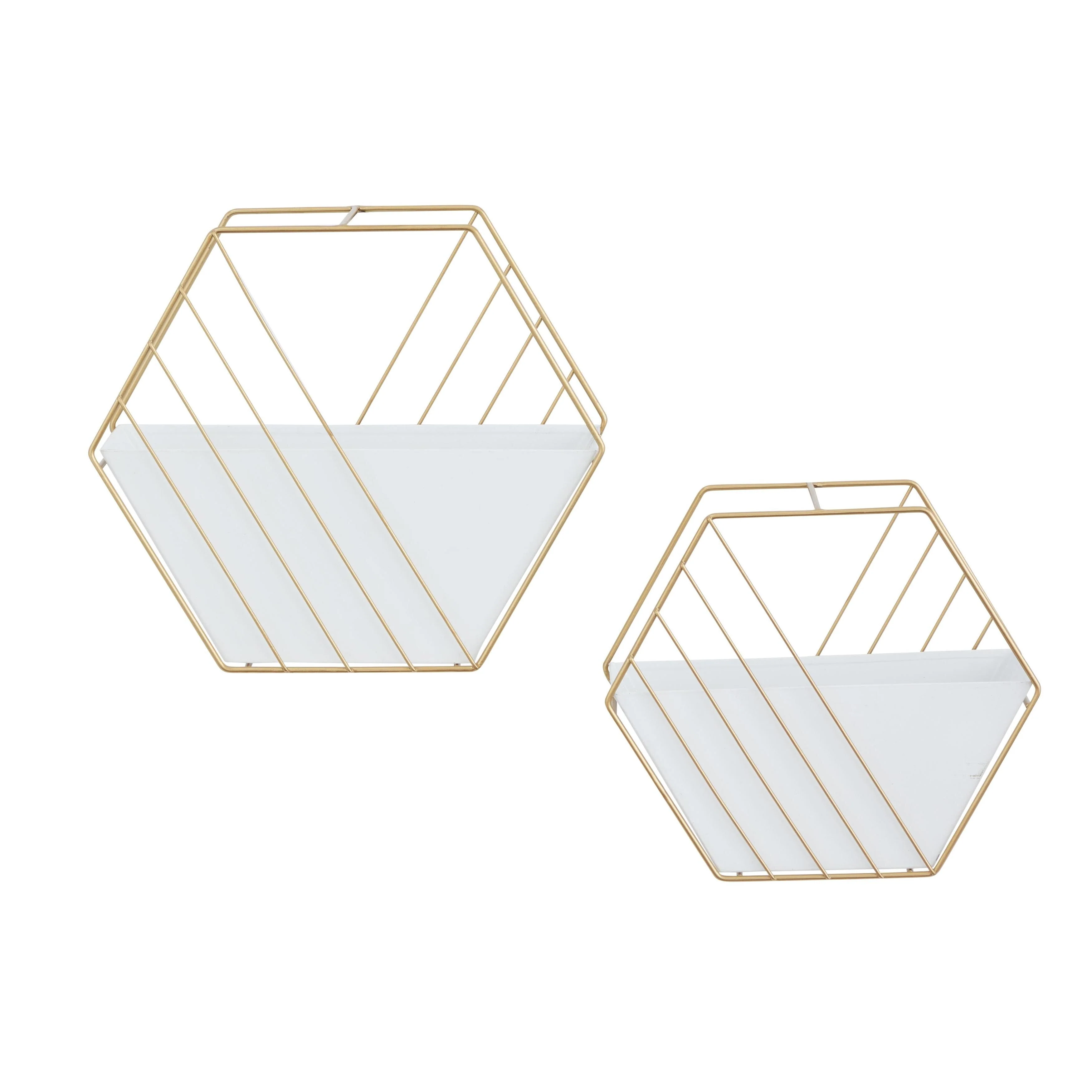 Metal Geometric Hanging Indoor Outdoor Wall Planter - Set of 2 White - Roche River Decor - 5"W x 12"L x 10"H
