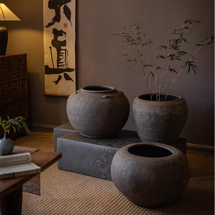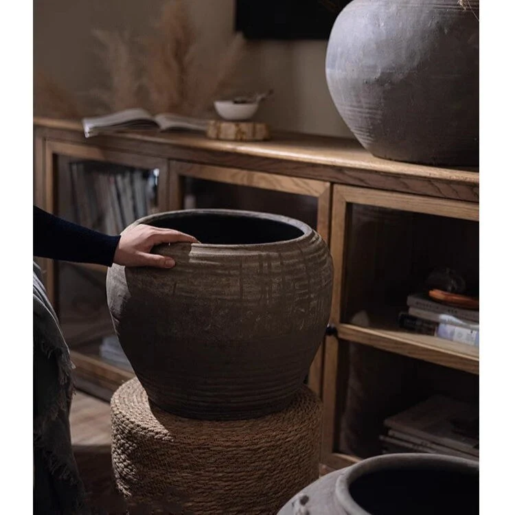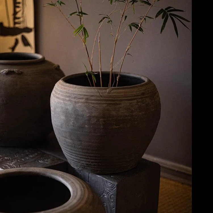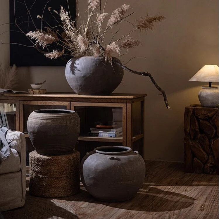 RusticReach Traditional Round Belly Zen Style Ceramic Vase - Gray