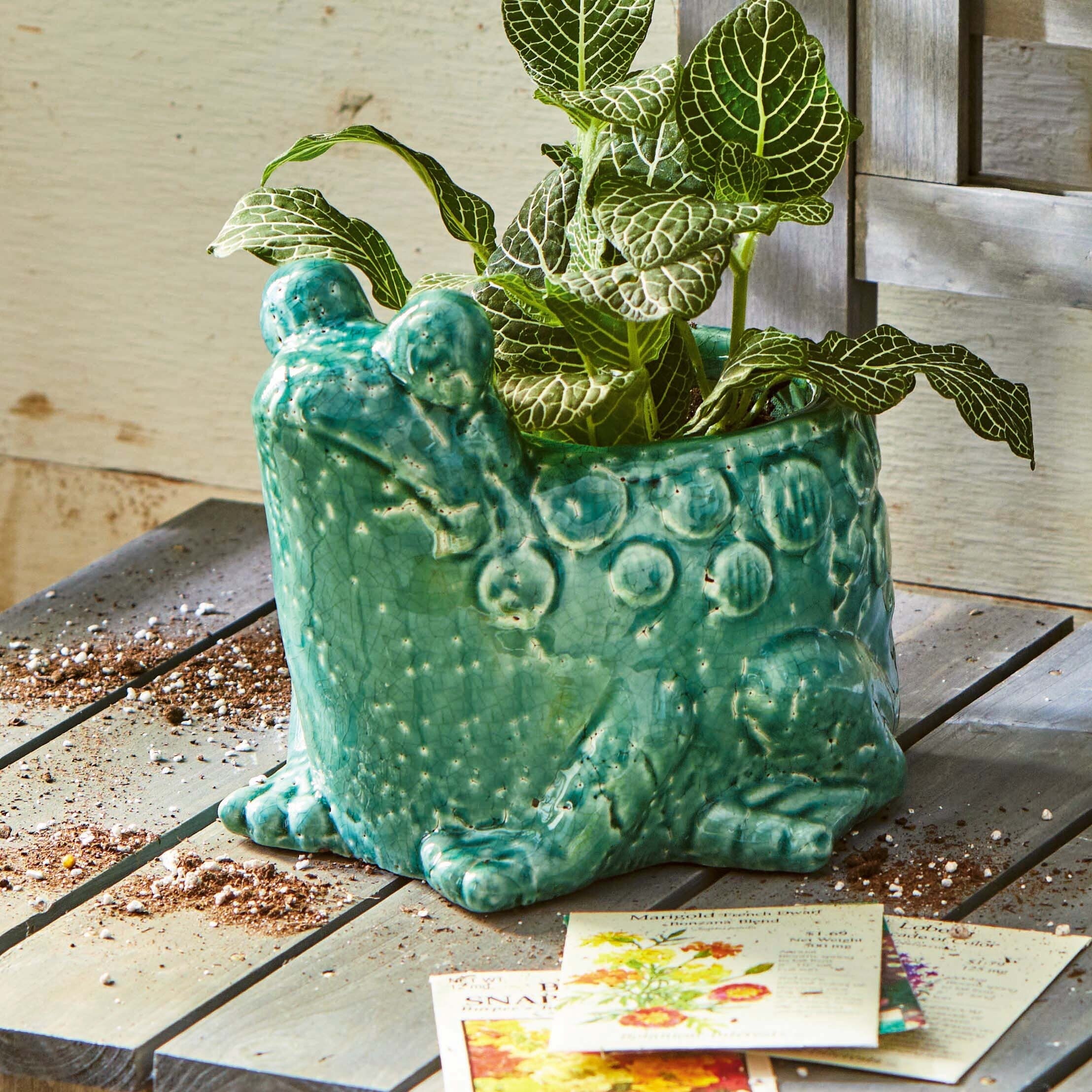 Frog Planter - Teal Blue