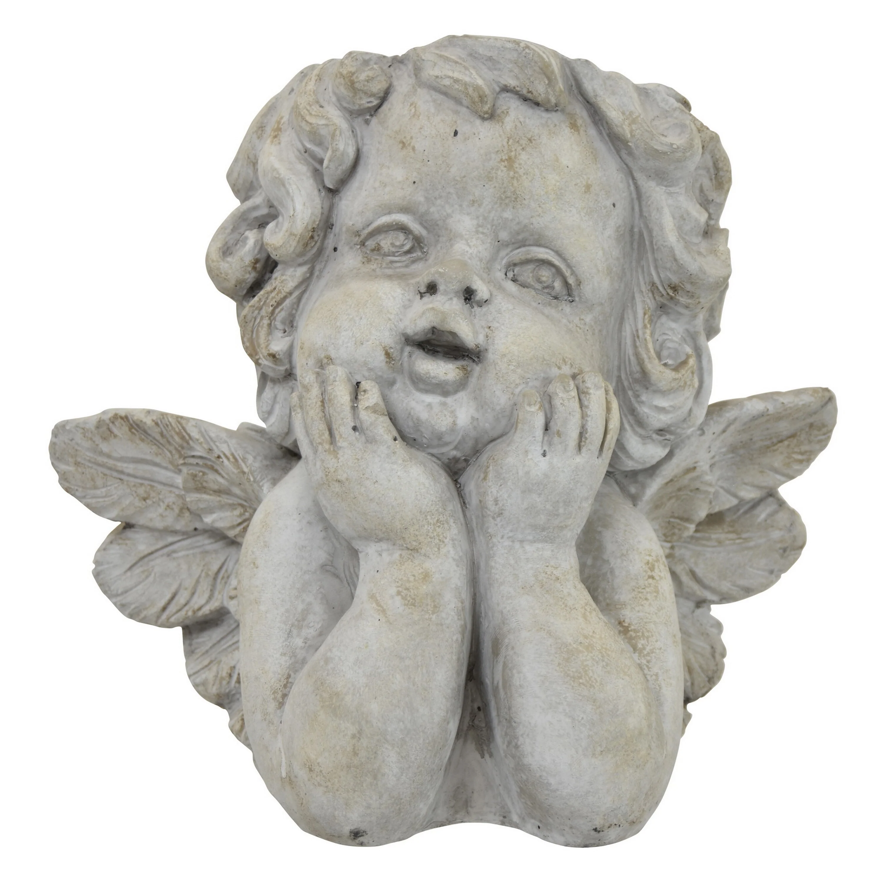 Cherub Bust Planter with Carved Wings and Curls, 10 Inch Gray Resin