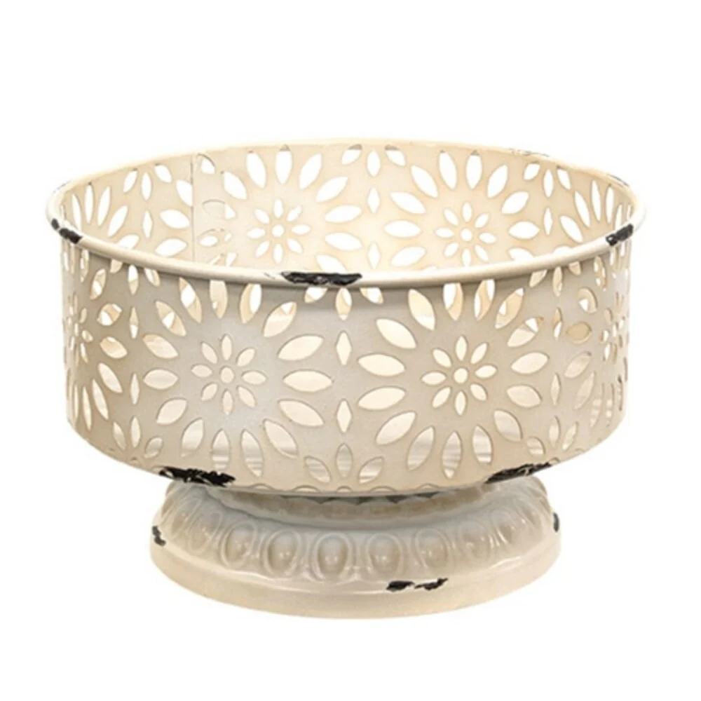 Distressed Antique White Metal Vintage Planter Cup