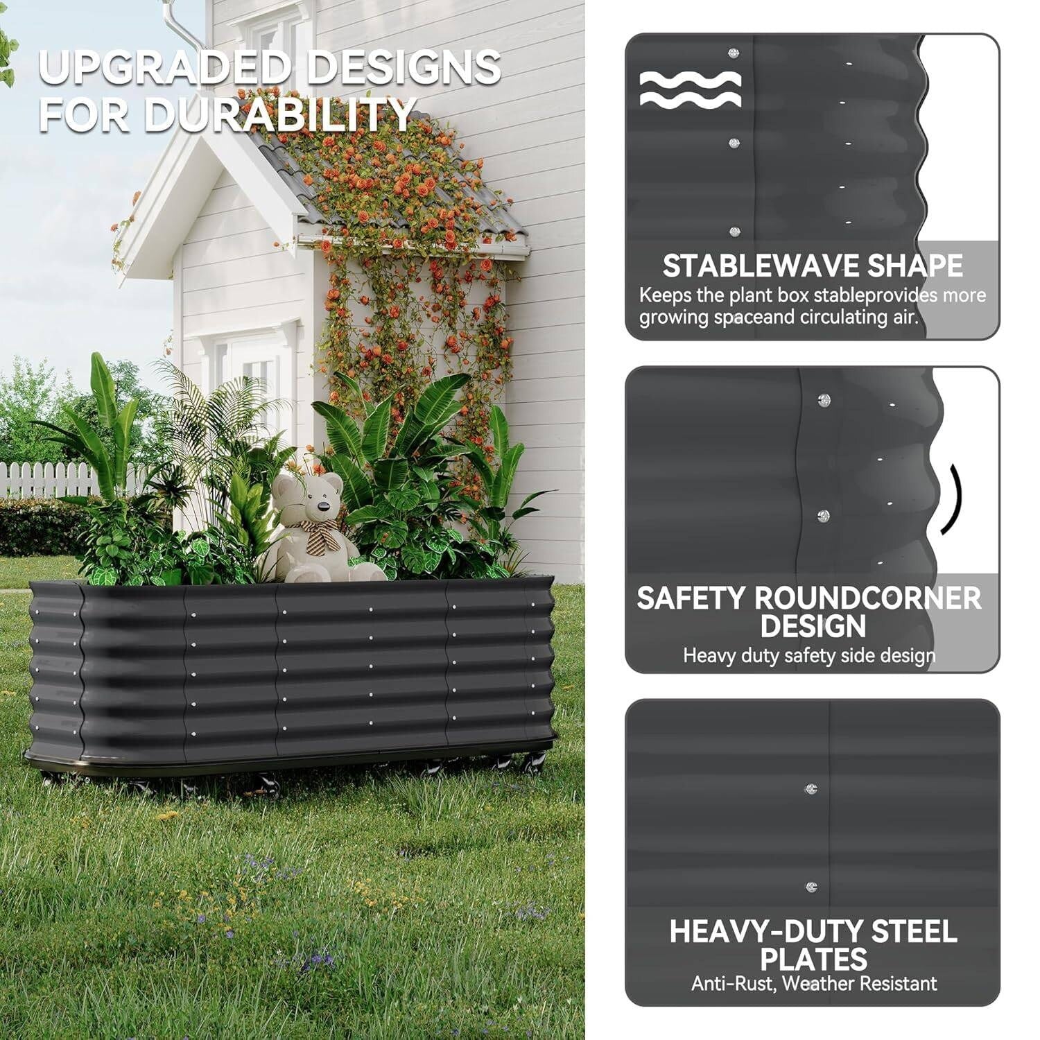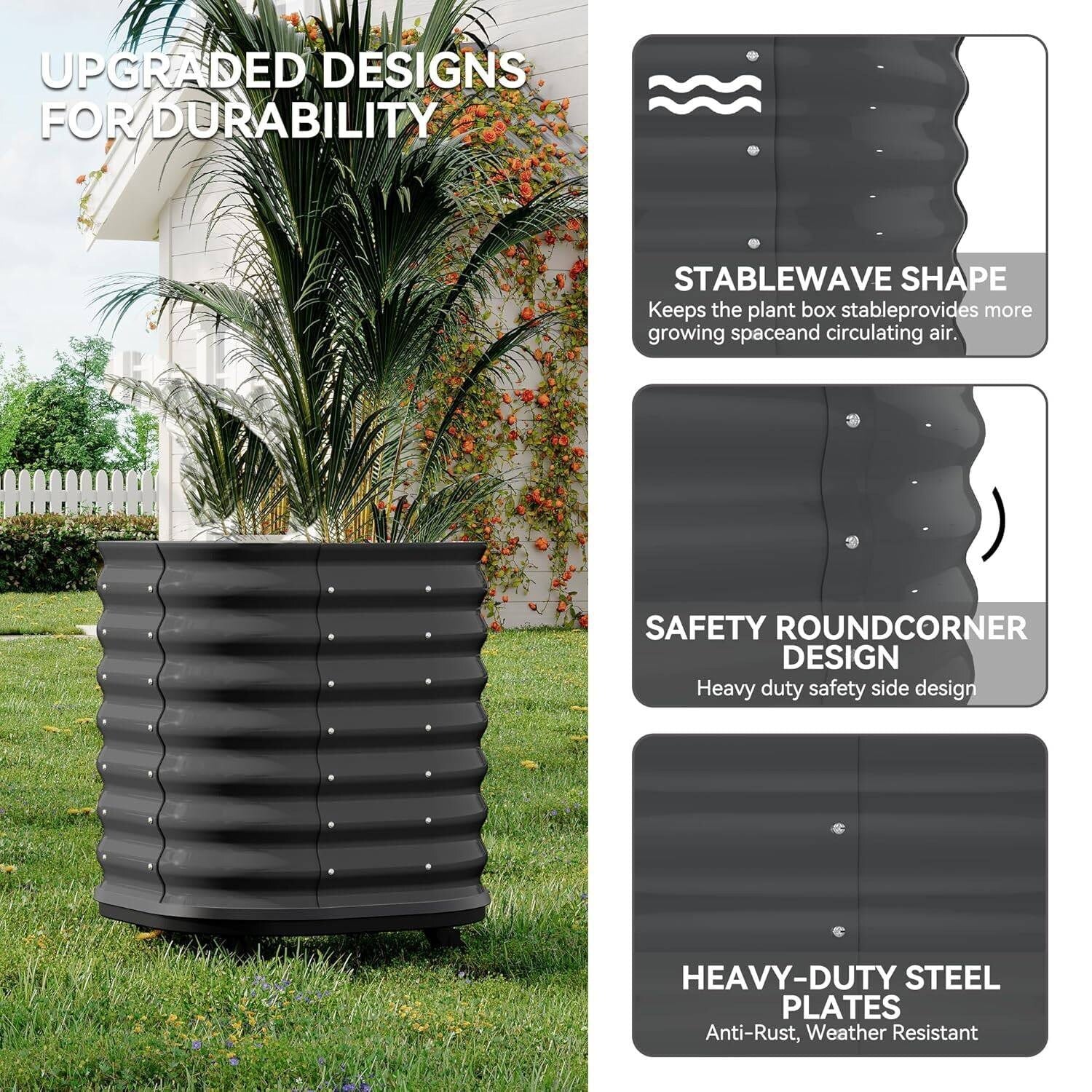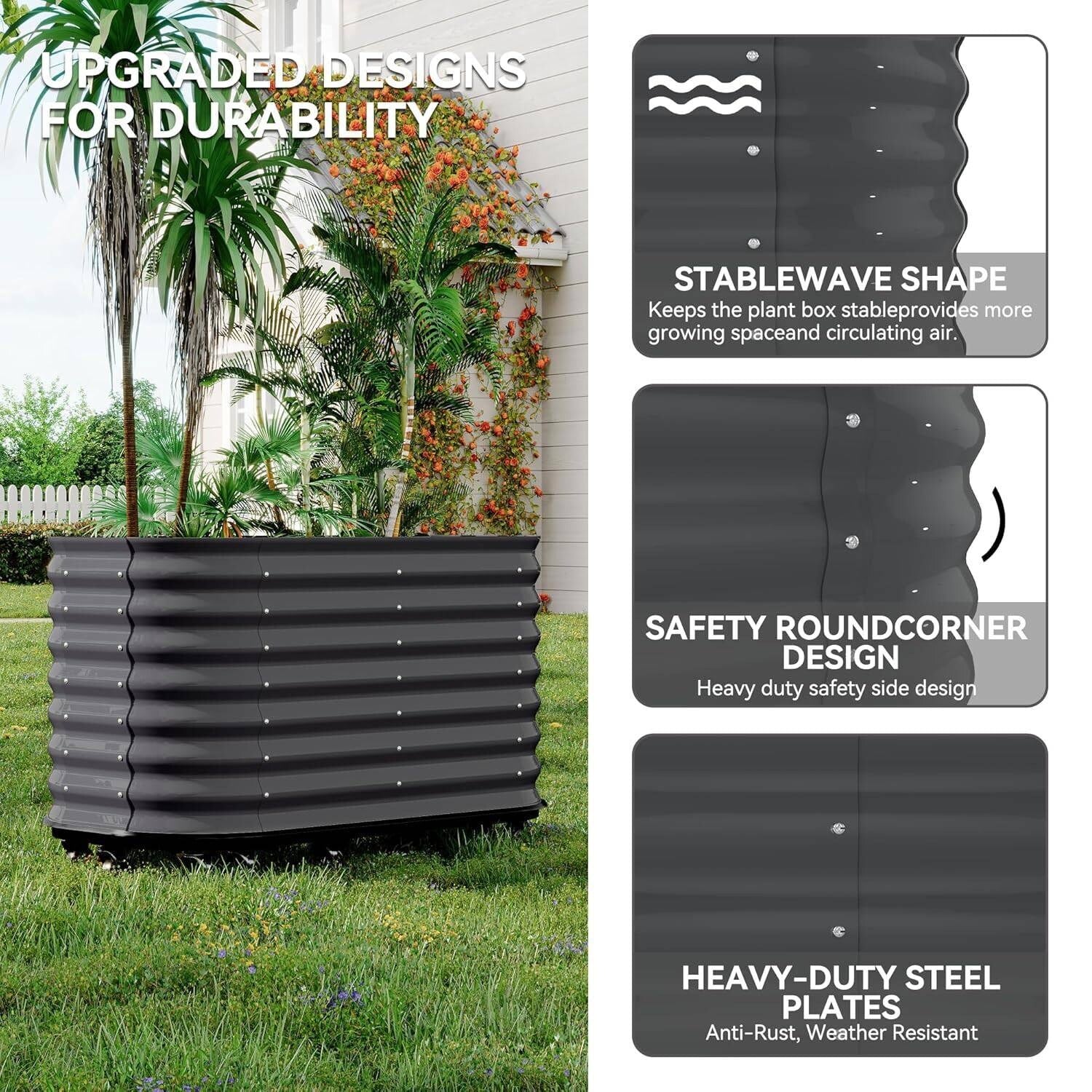 Black Elevated Metal Planter Box Raised Garden Bed with Built-In Drainage and Safety Corners for Easy Gardening