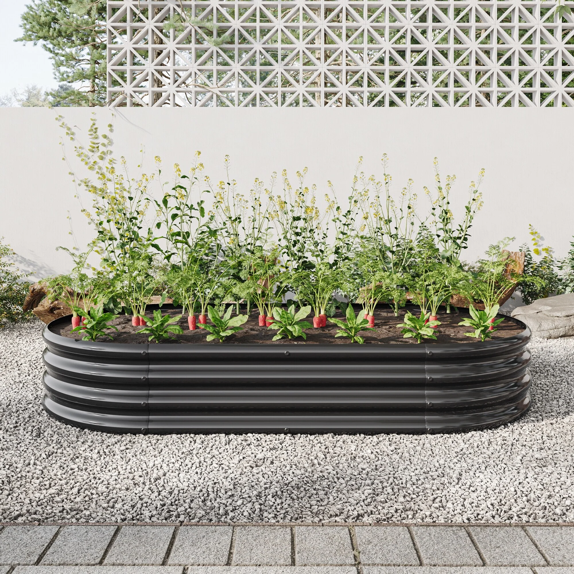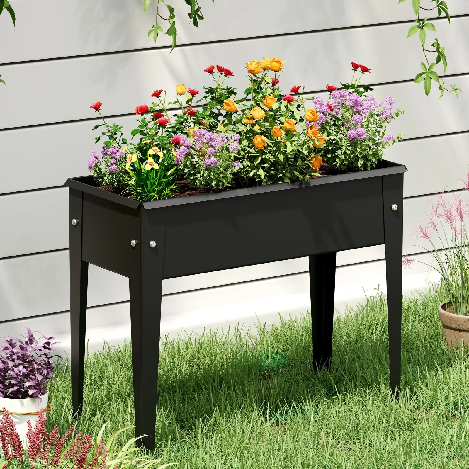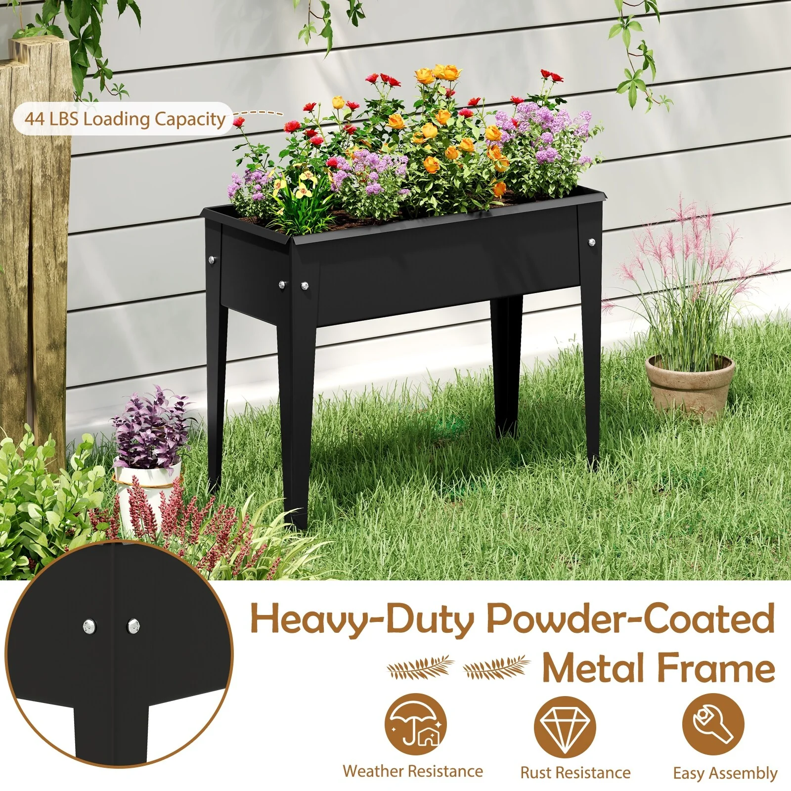 Black Elevated Metal Planter Box Raised Garden Bed with Built-In Drainage and Safety Corners for Easy Gardening