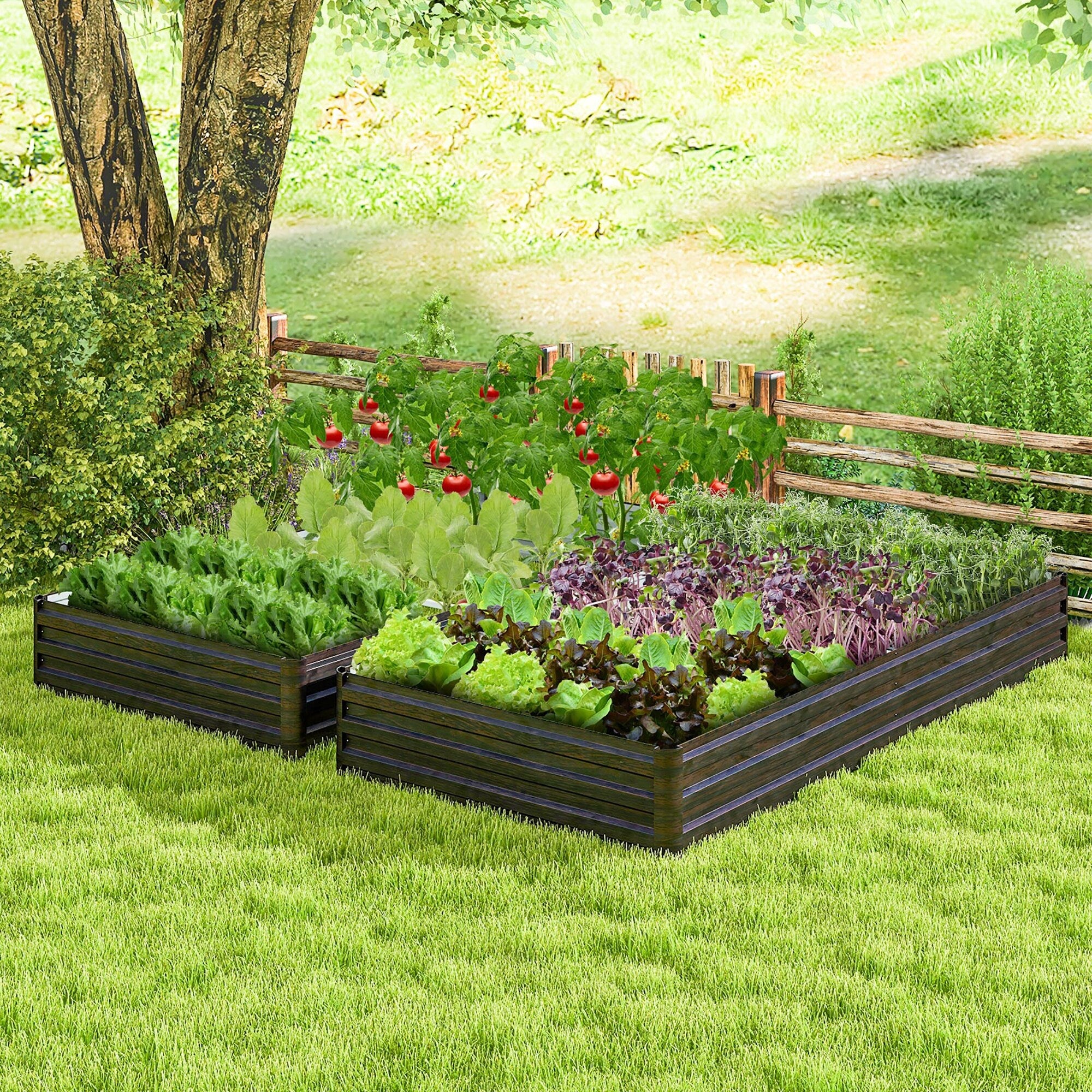 Gymax 2 PCS Raised Garden Bed Large Metal Planter Box Kit for