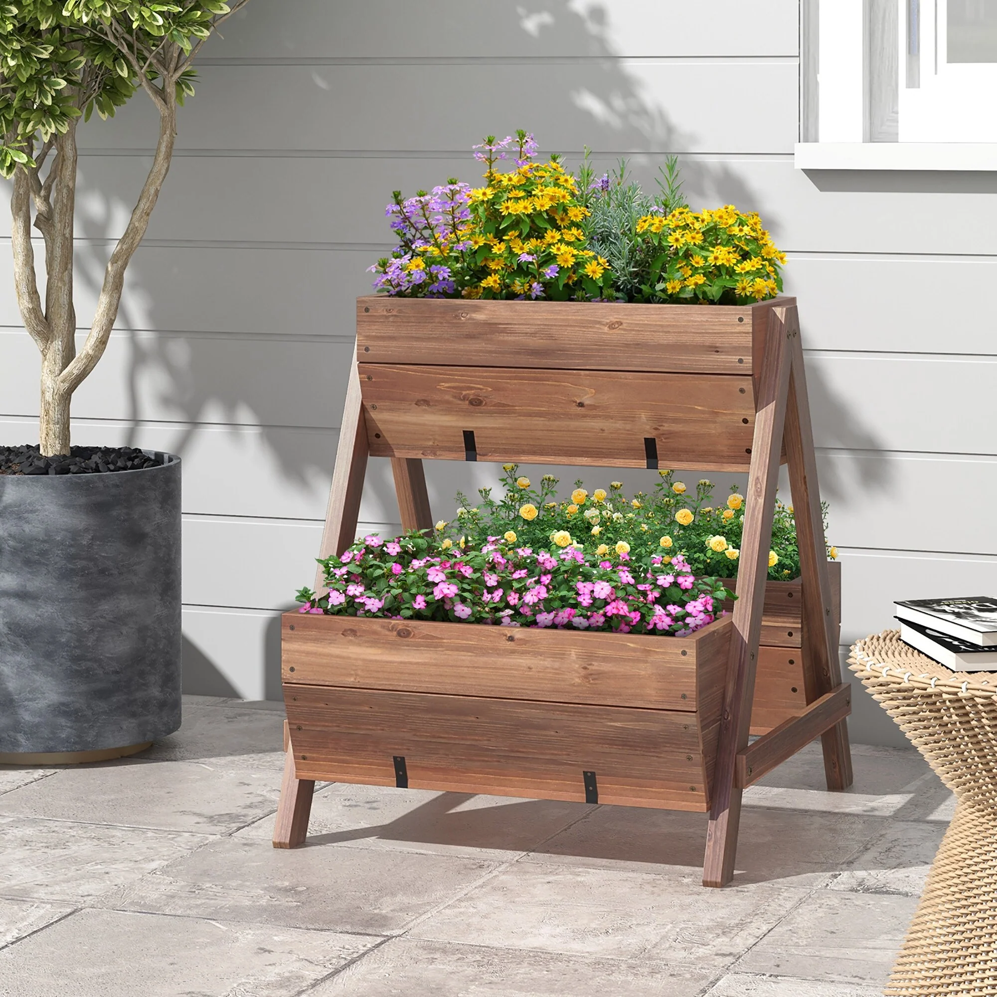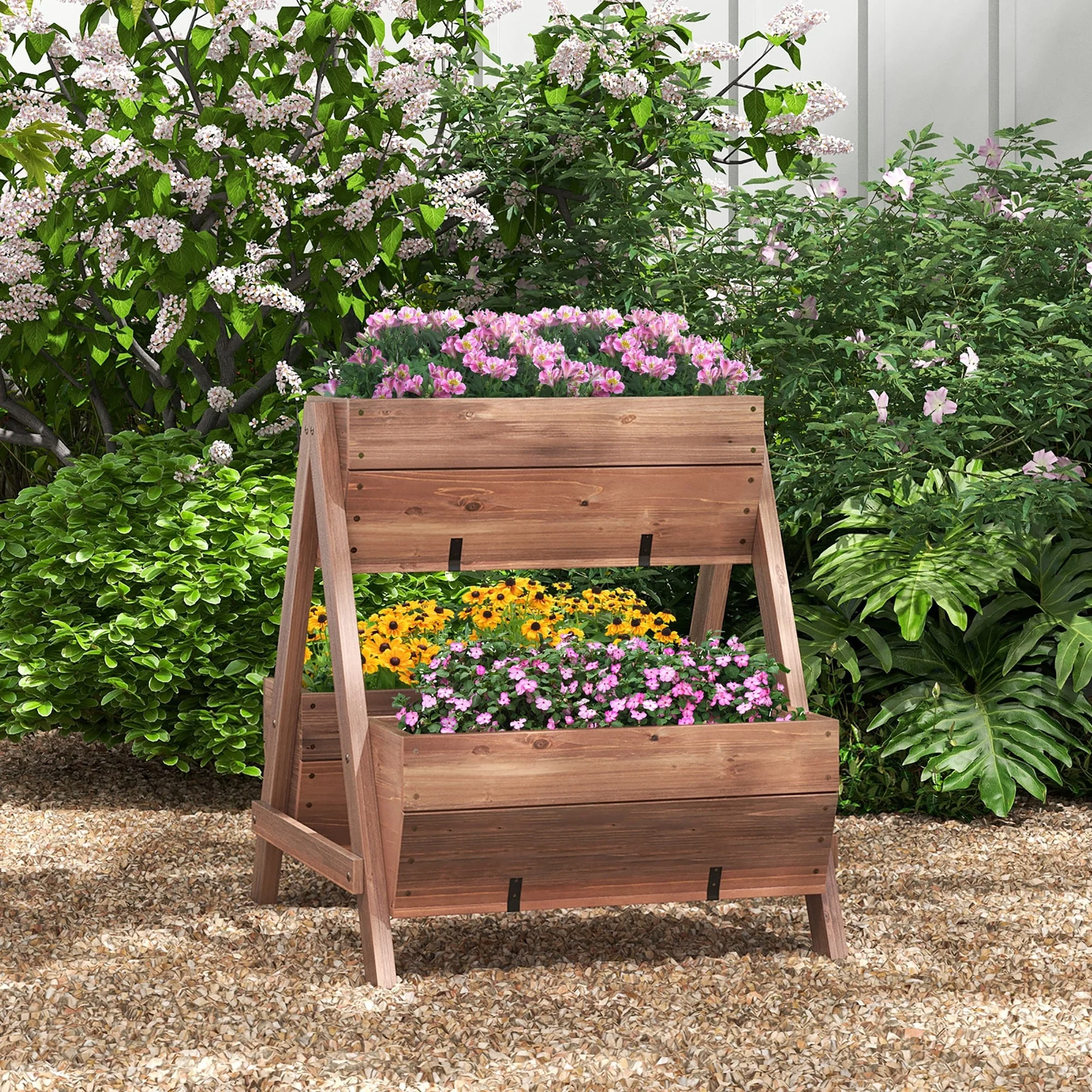 Gymax 3-Tier Wooden Garden Bed Elevated Planter w/ 3 Planter Boxes,