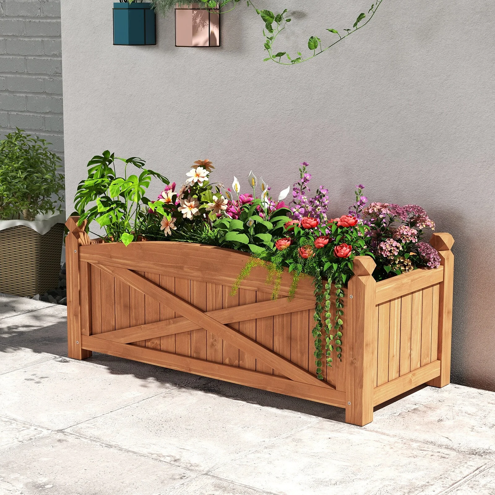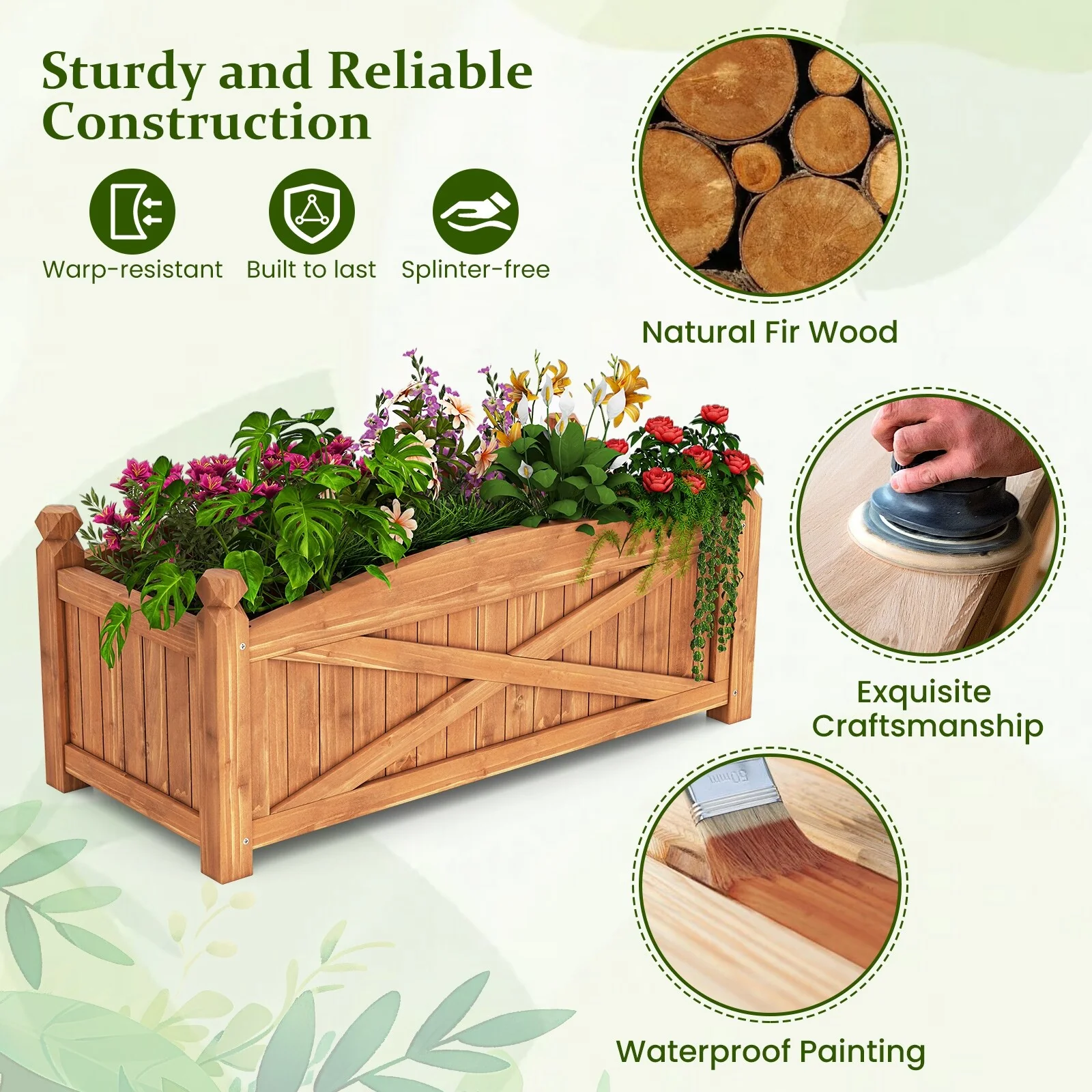 Gymax Raised Garden Bed Elevated Fir Wood Planter Box w/ Drain Hole