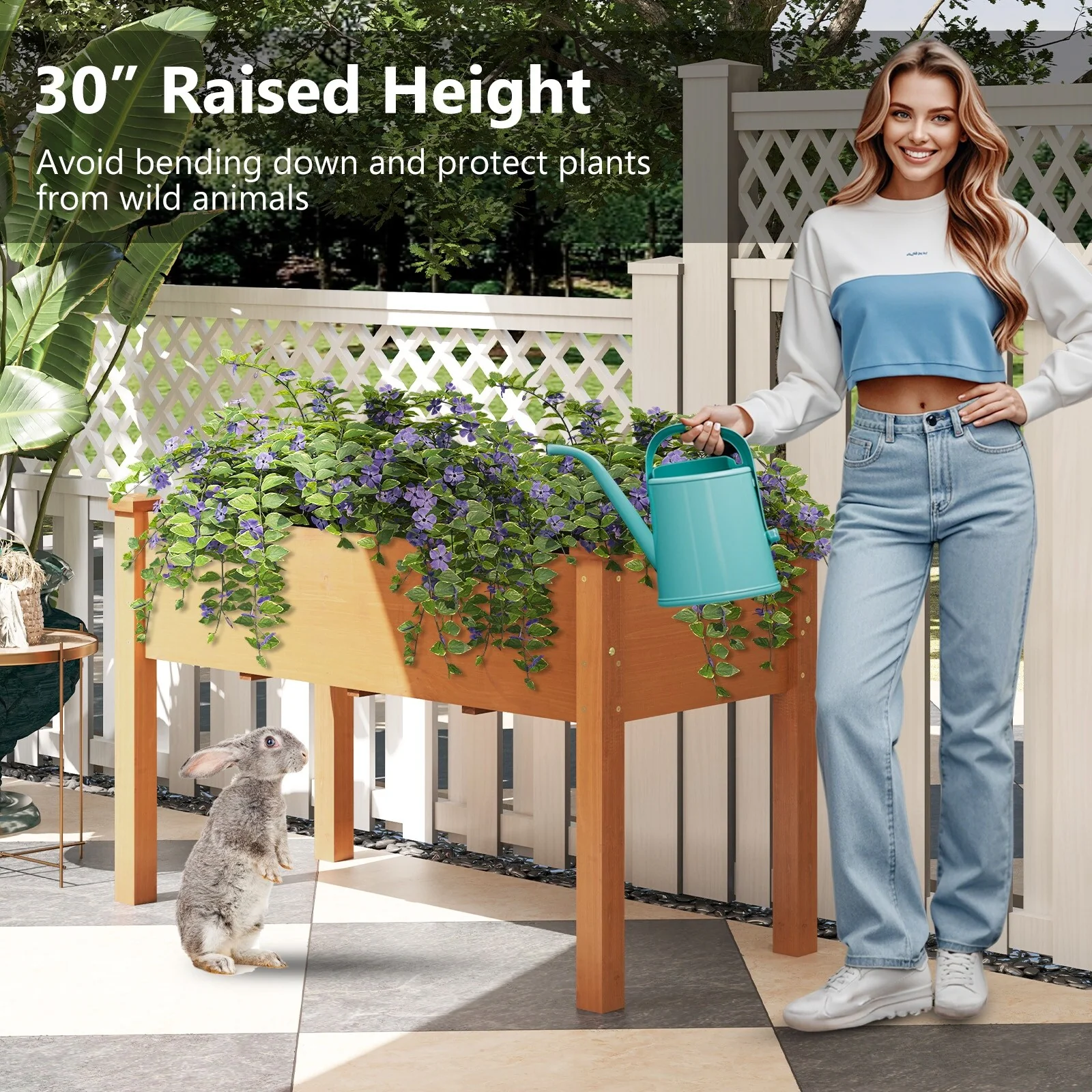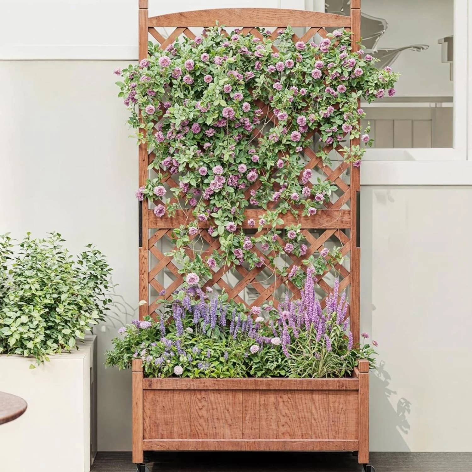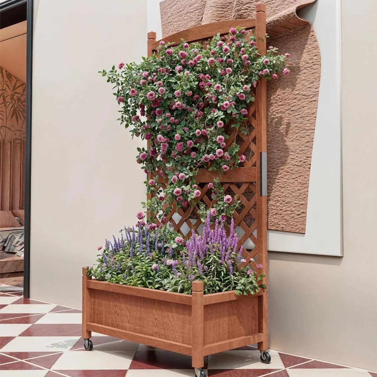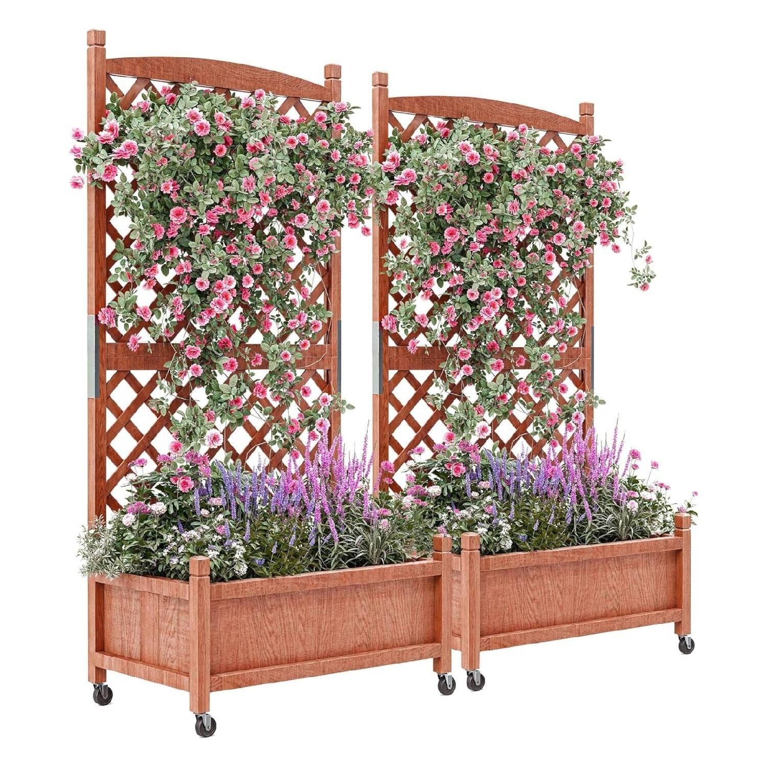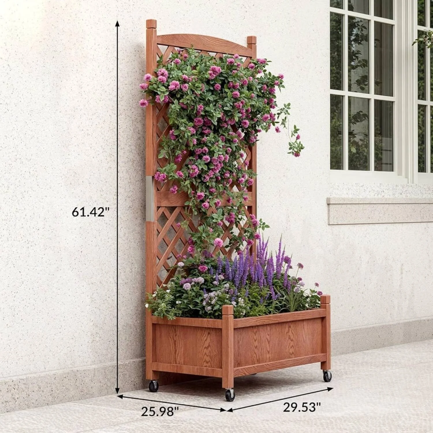 Elevated Raised Garden Bed with Trellis Drainage Holes & Wheels